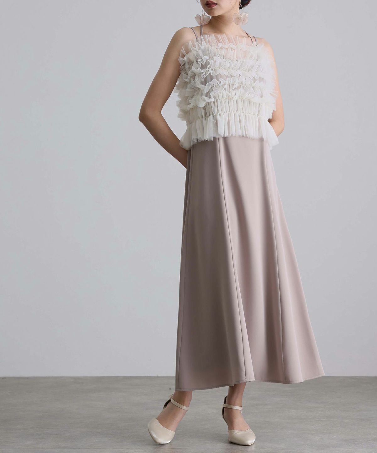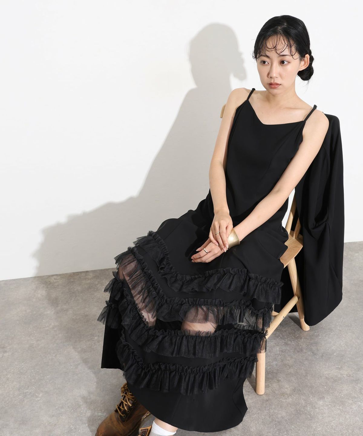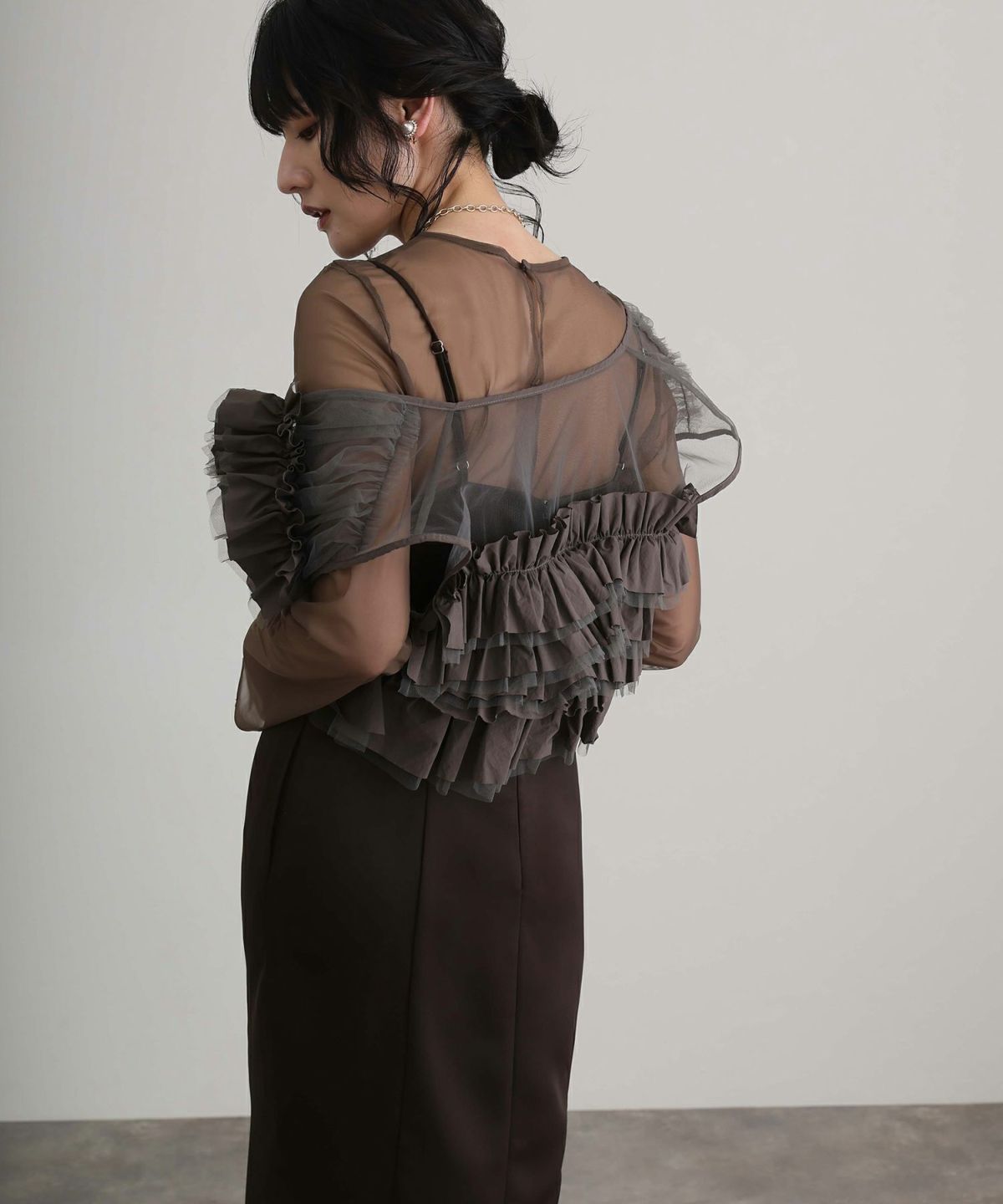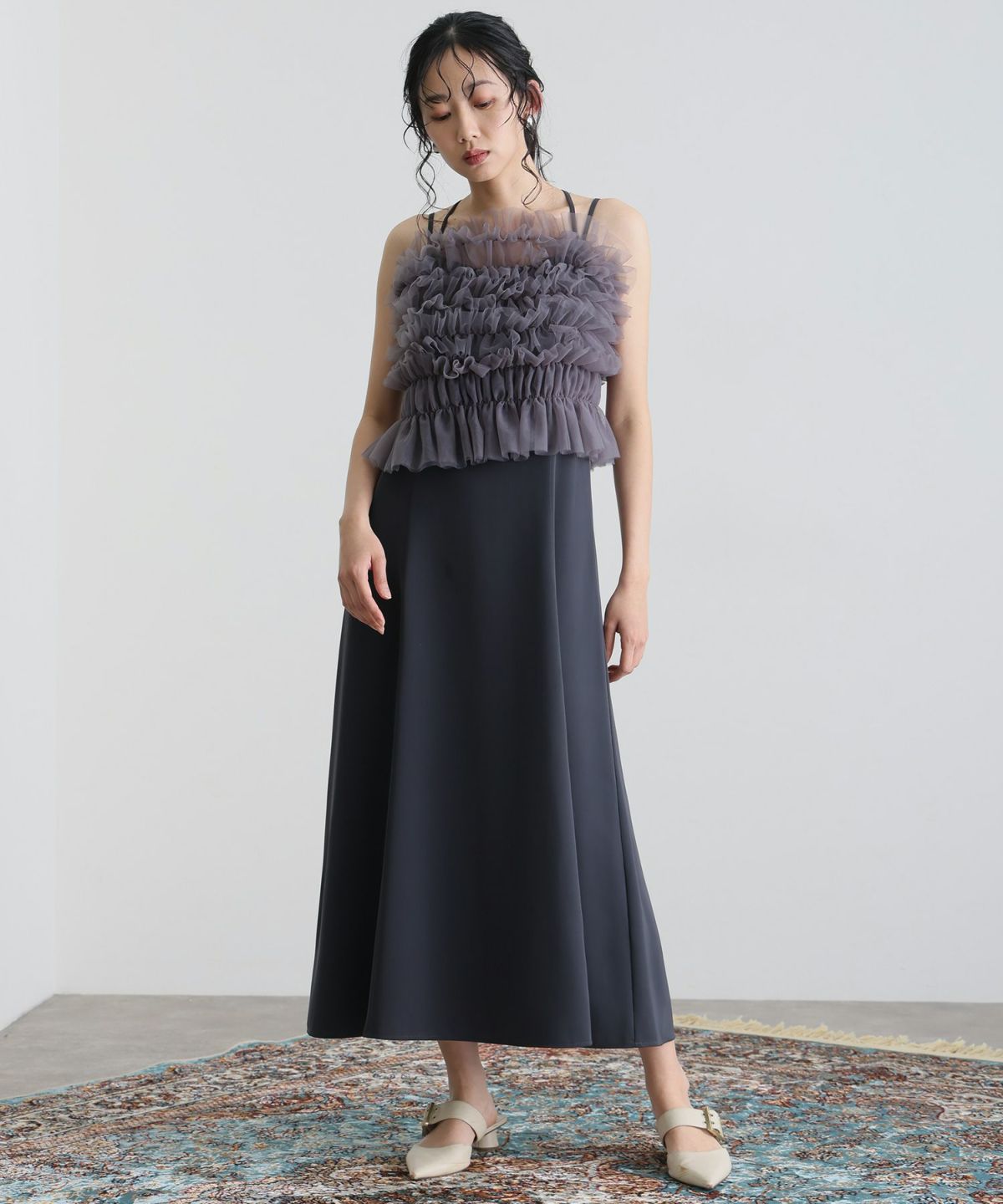 視線を惹きつけるチュールフリル トランスペアレントヘムセットアップドレス 2点セッ