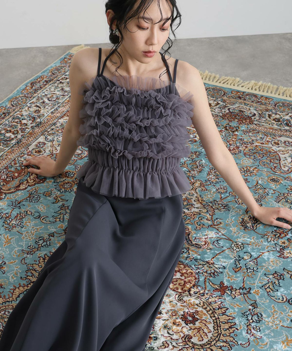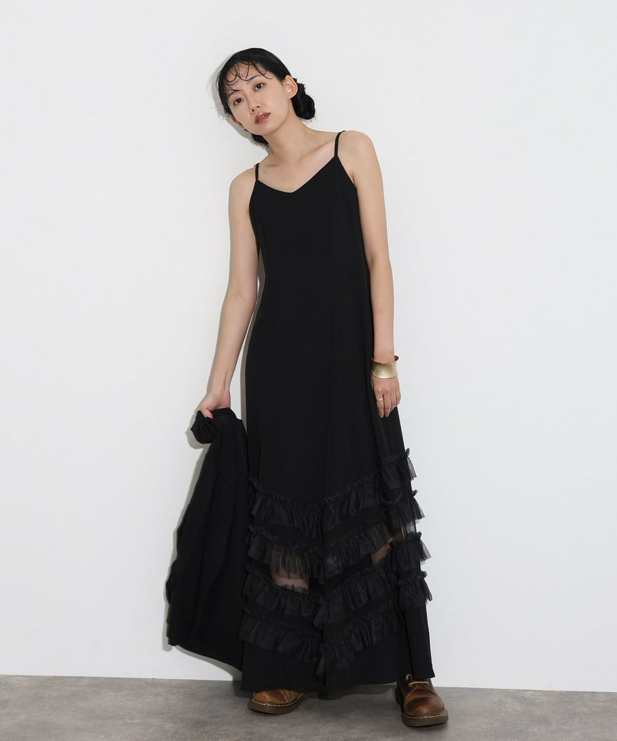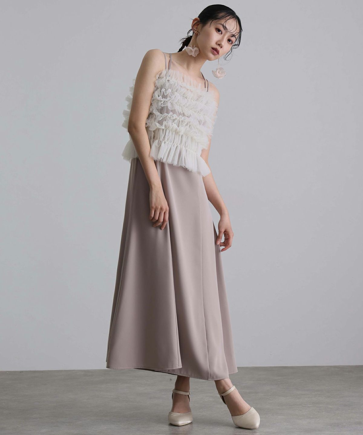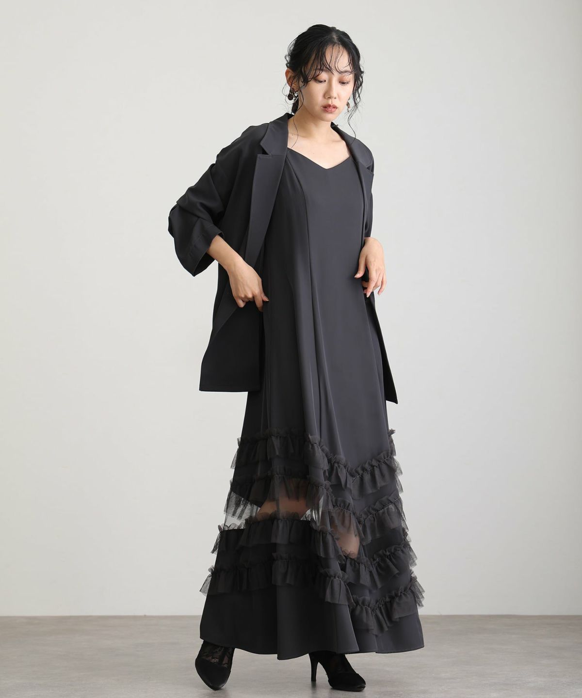 視線を惹きつけるチュールフリル トランスペアレントヘムセットアップドレス 2点セッ
