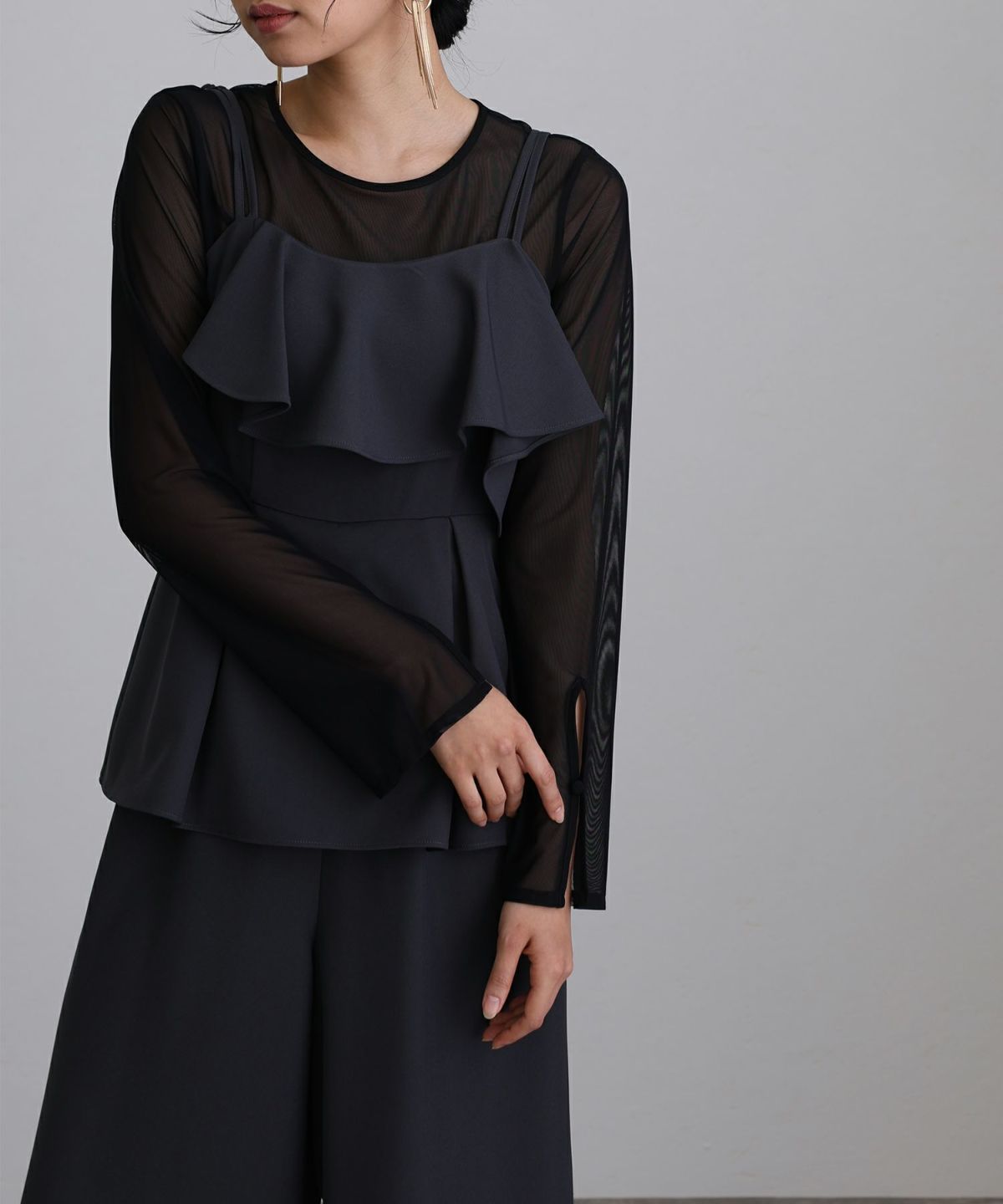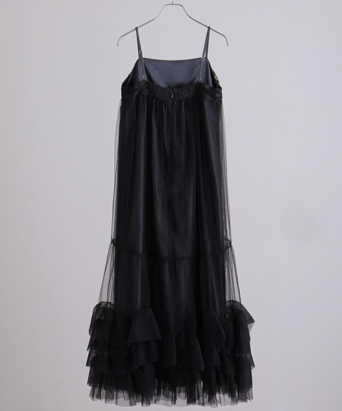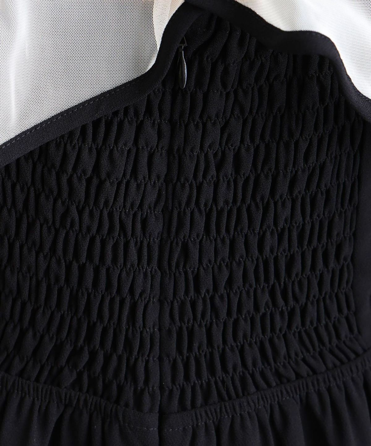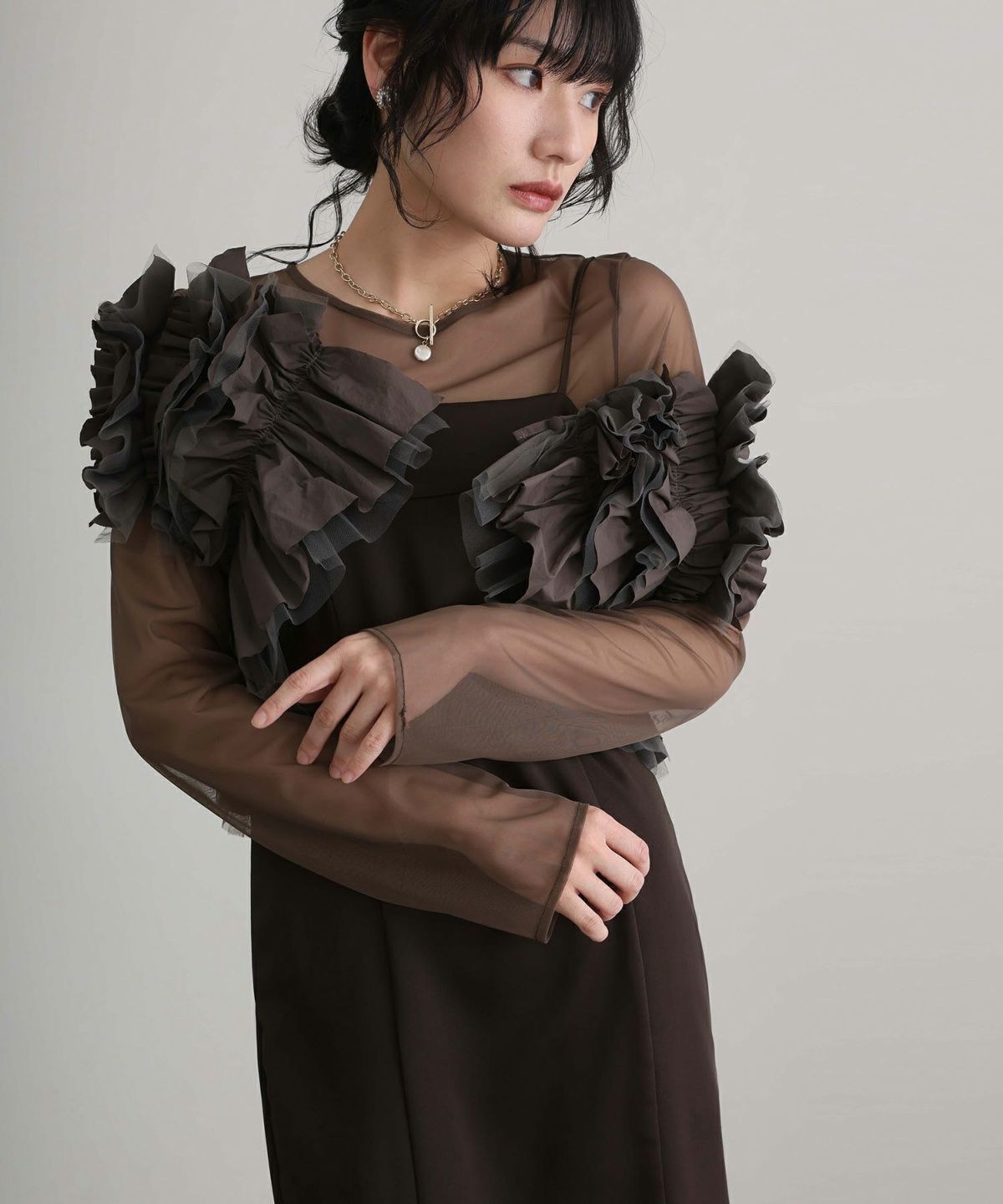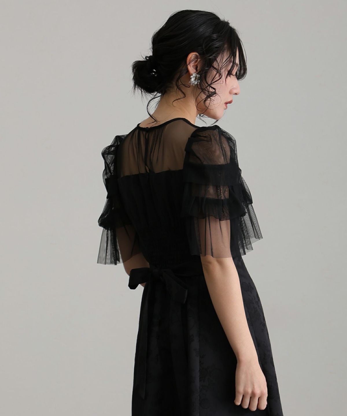 視線を惹きつけるチュールフリル トランスペアレントヘムセットアップドレス 2点セッ