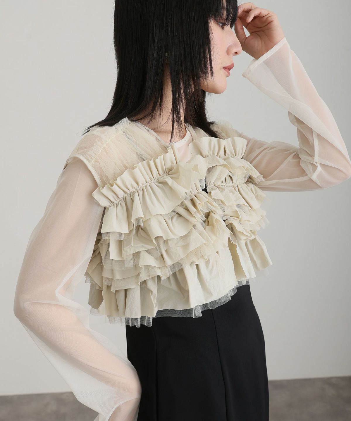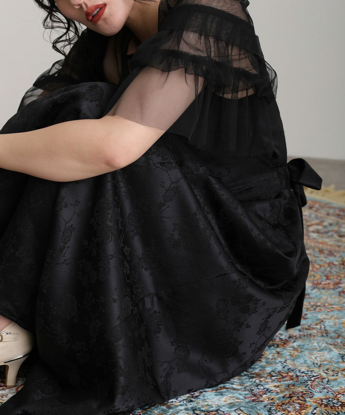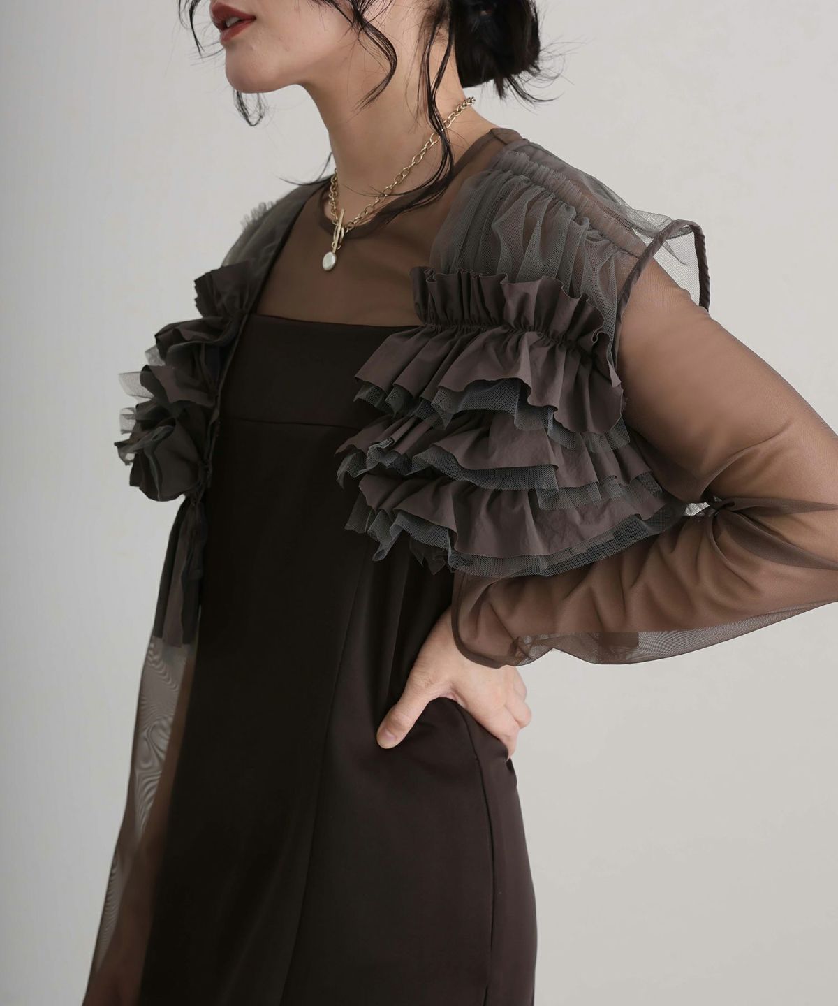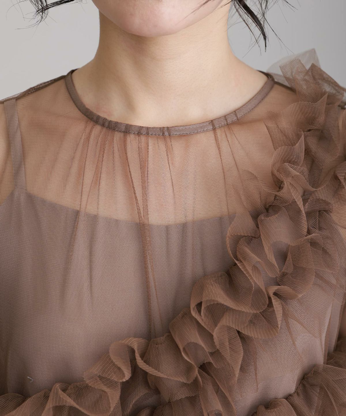 視線を惹きつけるチュールフリル トランスペアレントヘムセットアップドレス 2点セッ