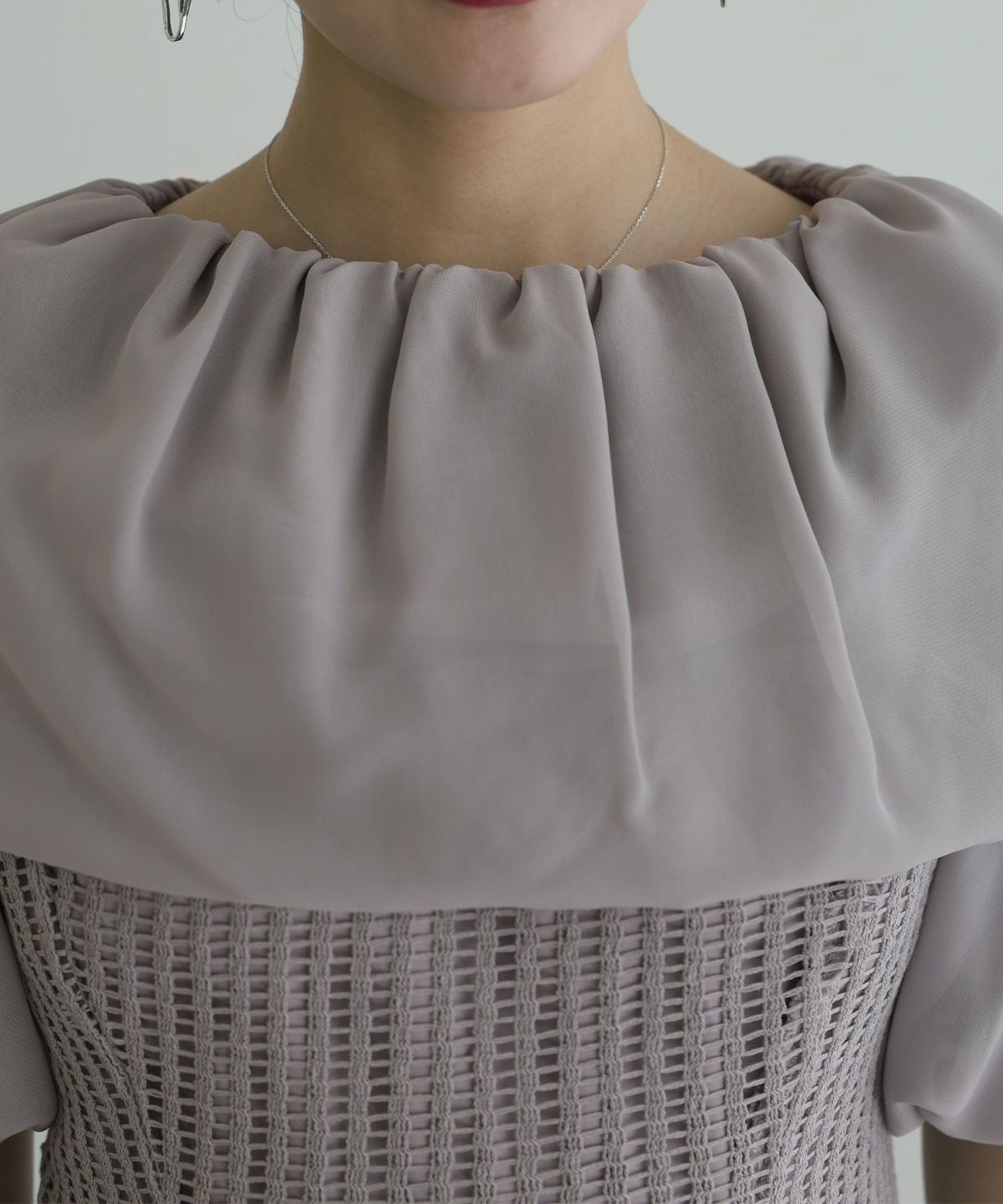 ラメチュール×フリルが華やか 胸元フリルラメチュールワンピース