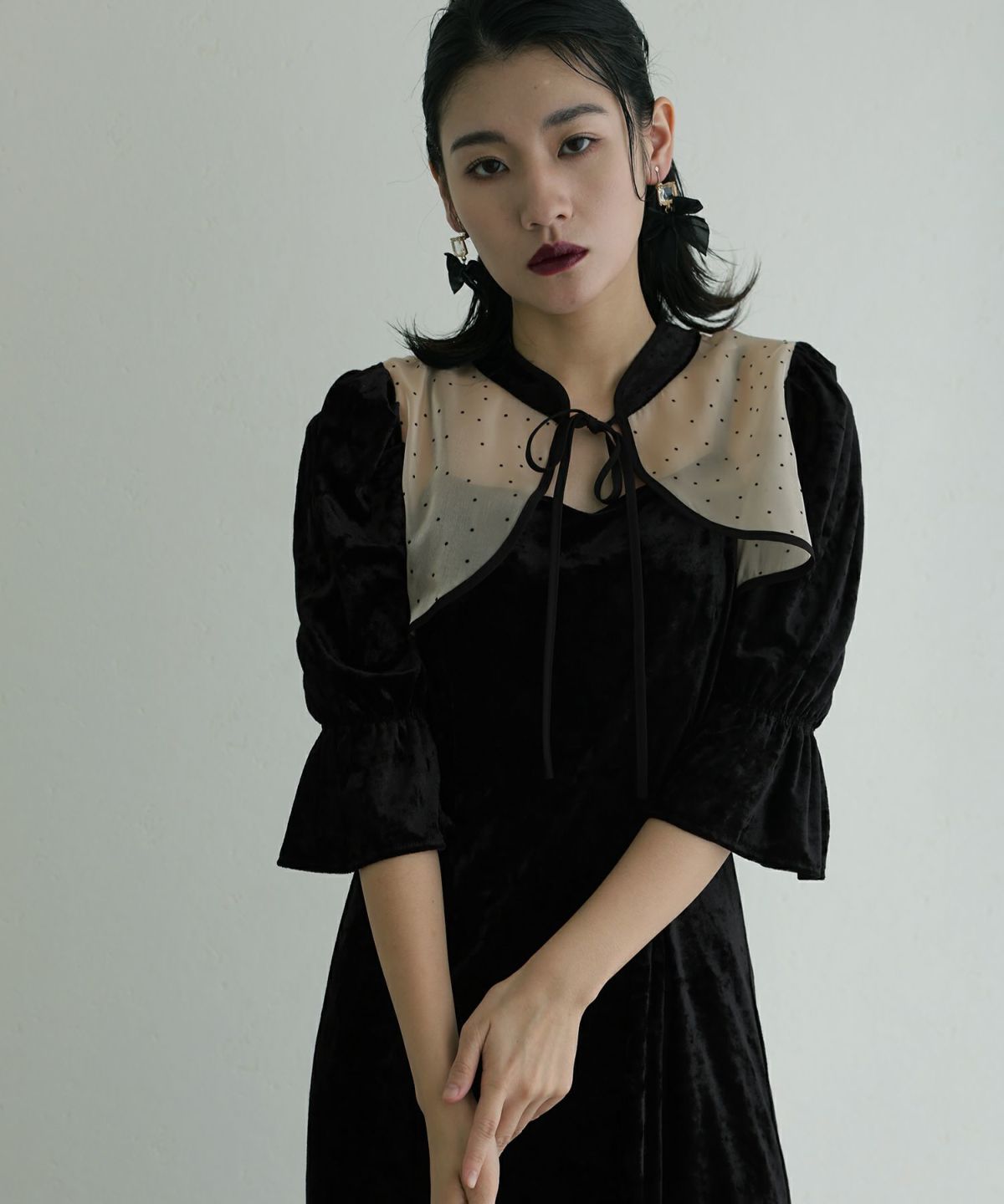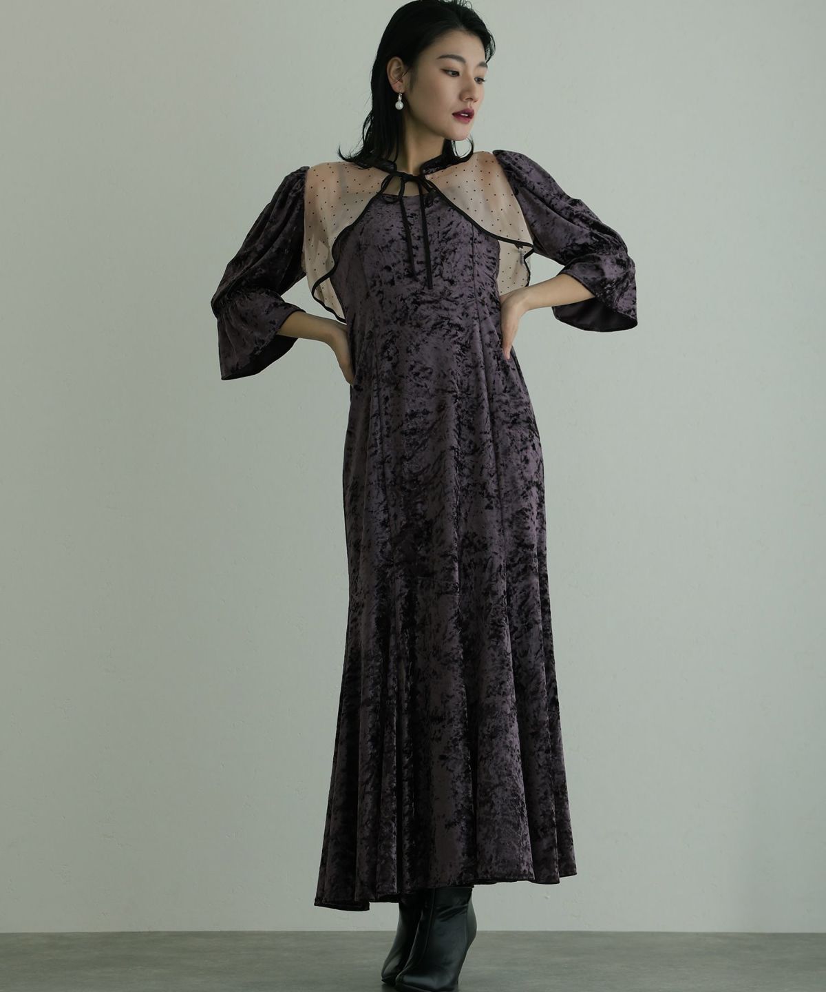 ベロア特融の風合いがラグジュアリーな雰囲気を演出 ドット×ベロアドレス