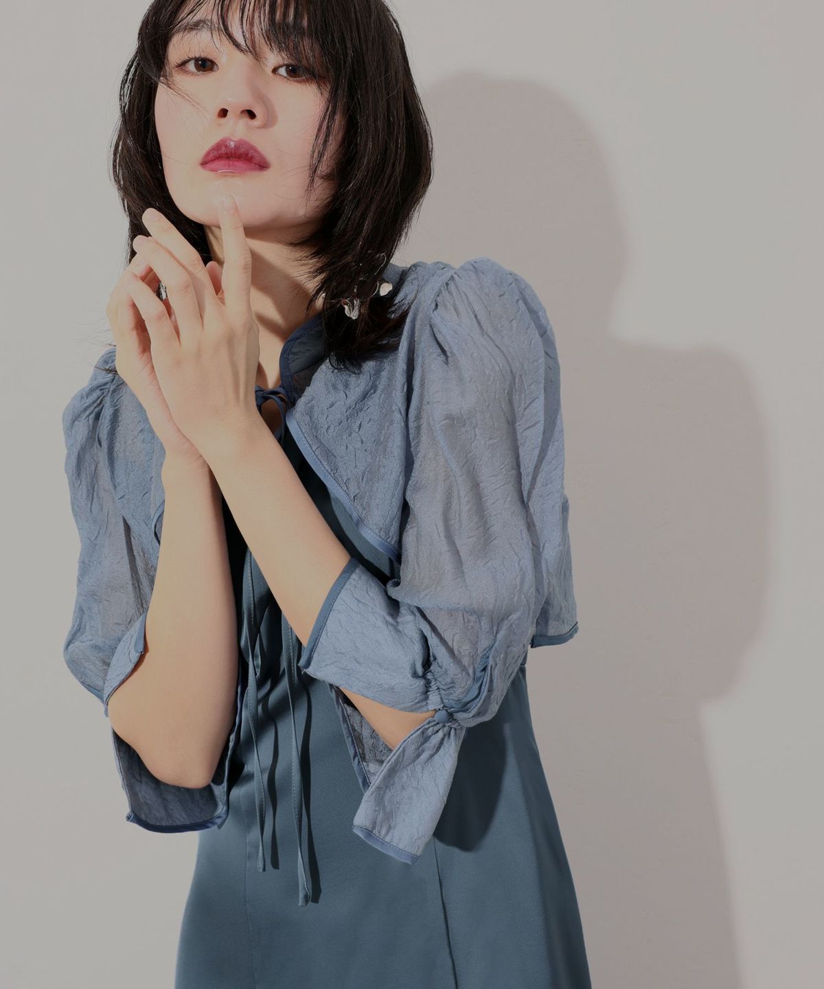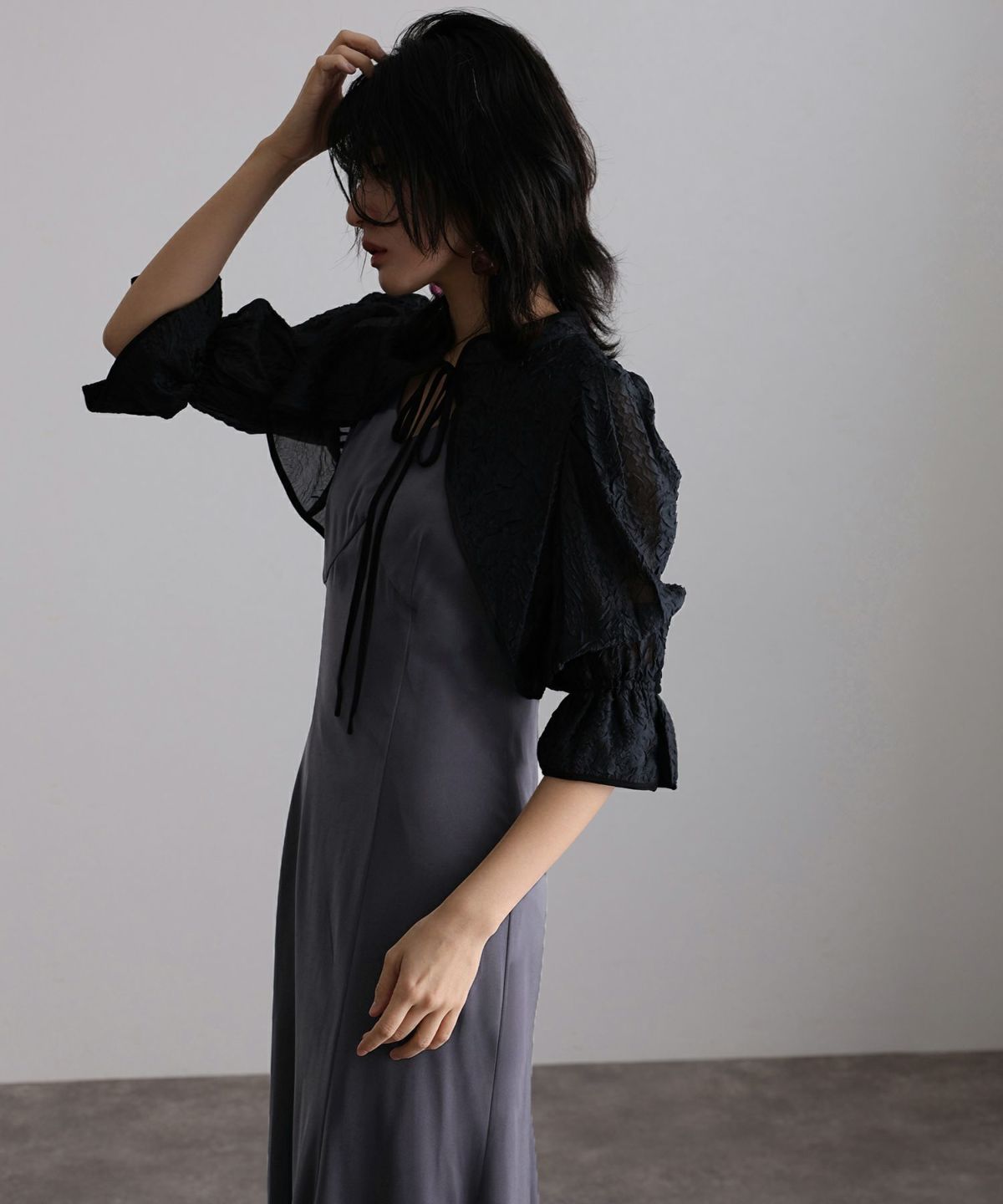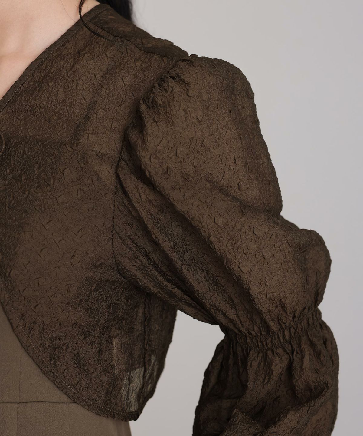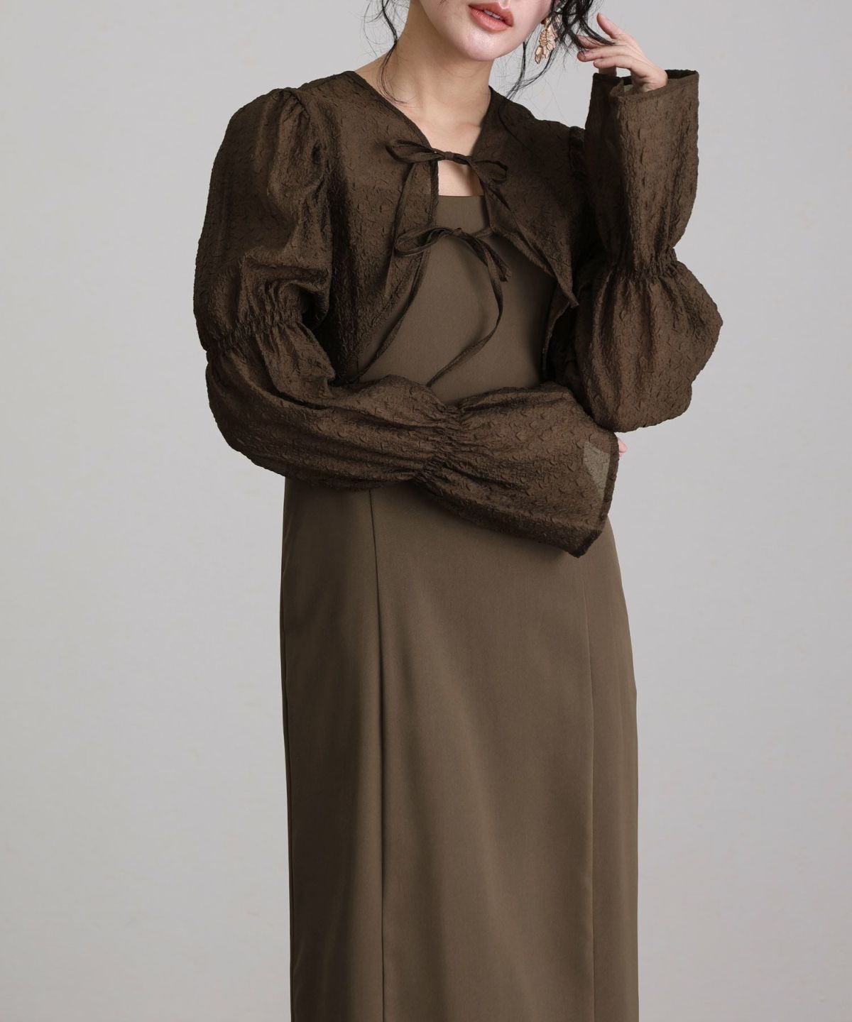 袖のシャーリングがポイント シワ加工ボレロセットワンピース