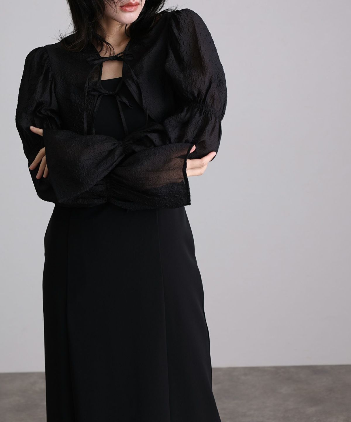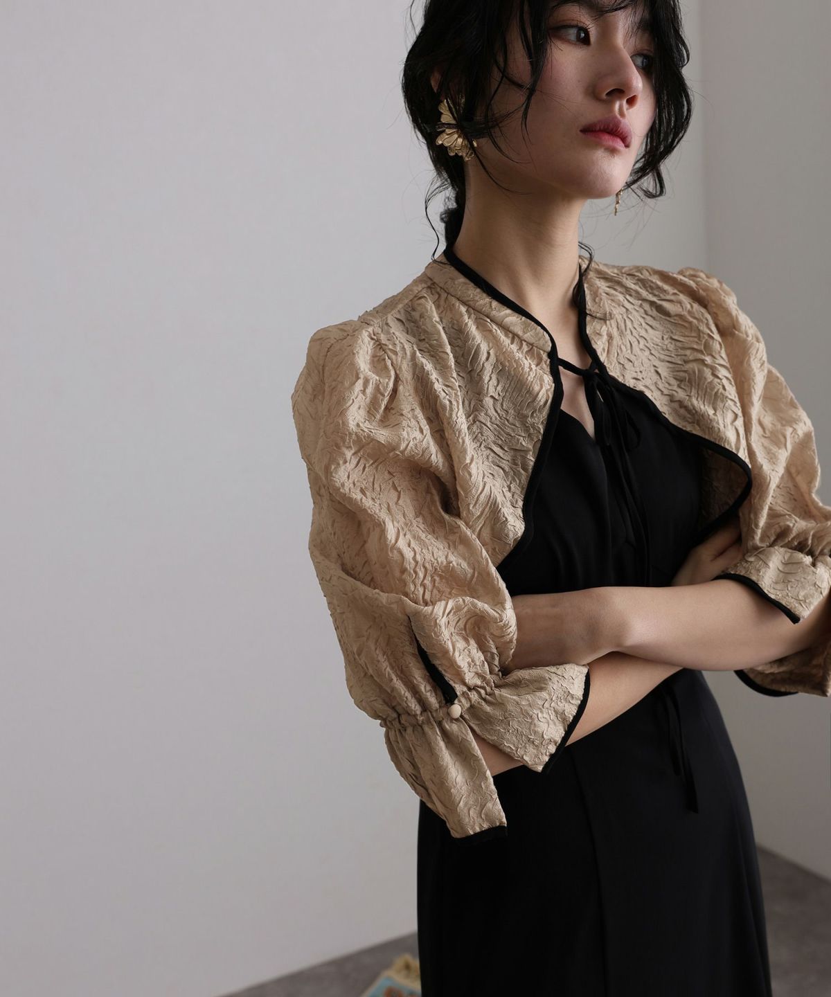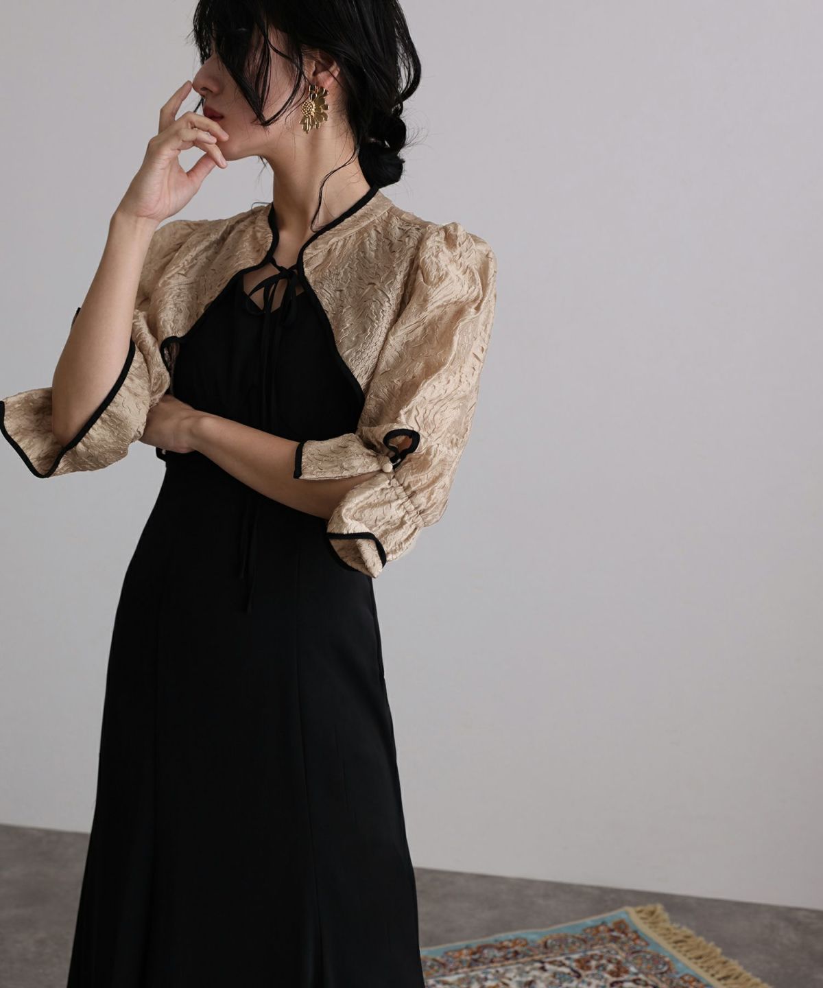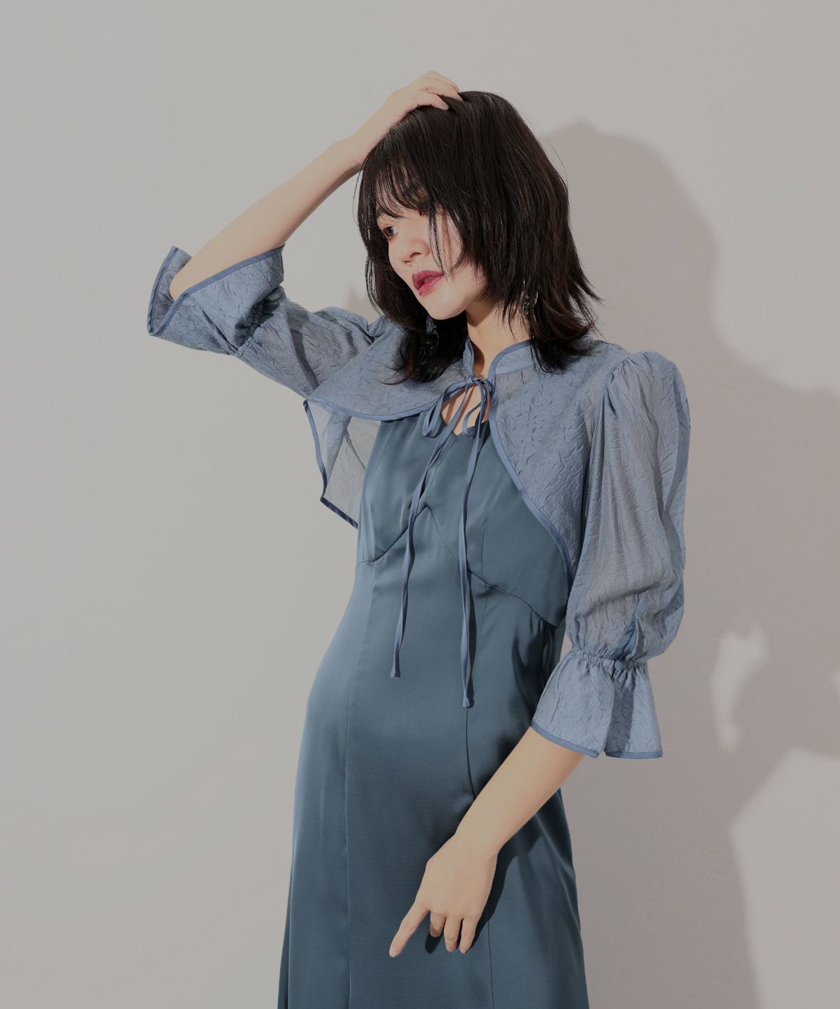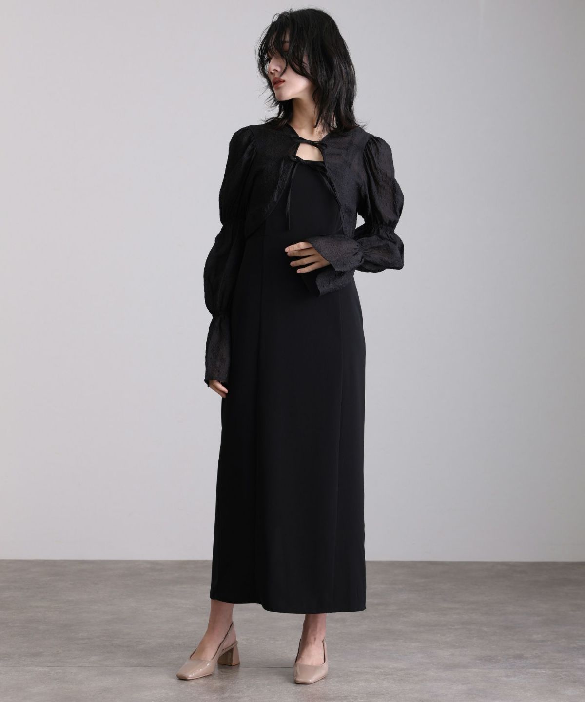 袖のシャーリングがポイント シワ加工ボレロセットワンピース
