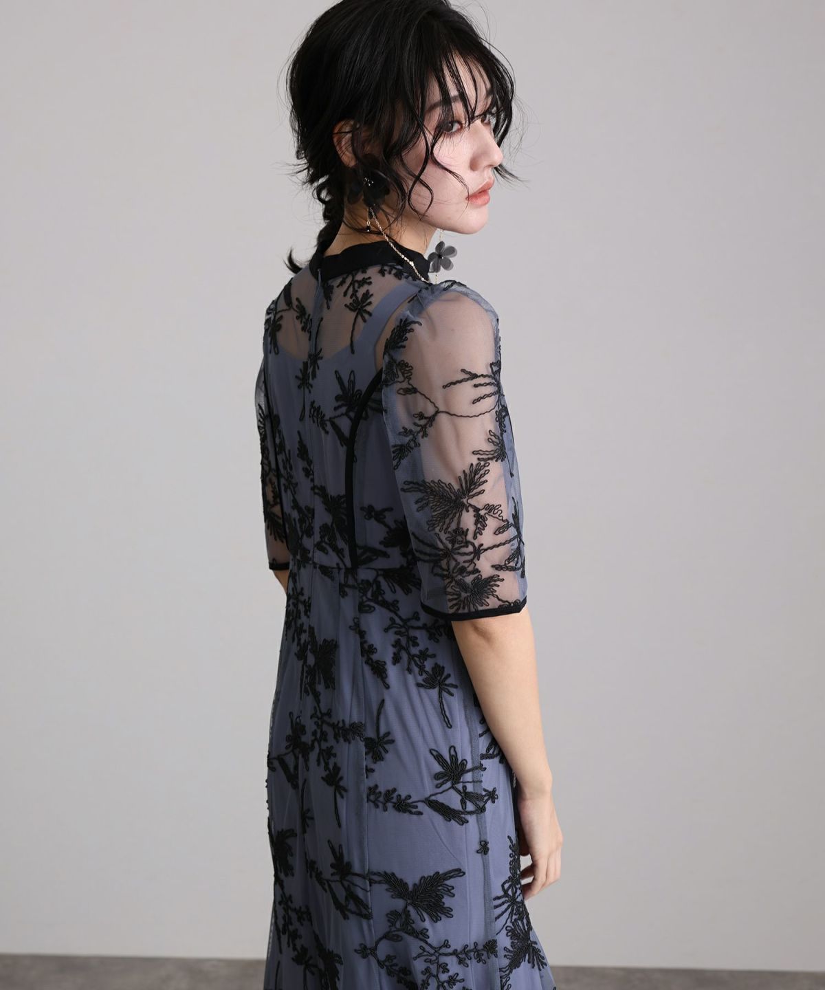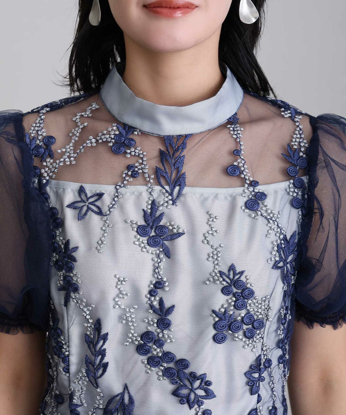 存在感のある刺繍で他と被らない バイカラーエンブロイダリードレス