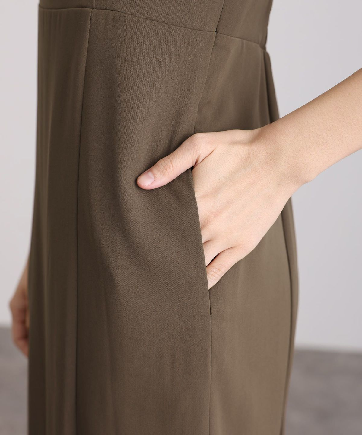 ダブルクロス生地でさらりとした肌あたりに ダブルクロスオールインワンドレス