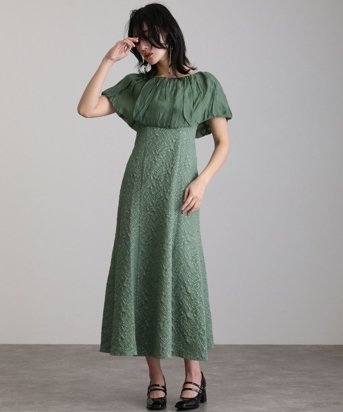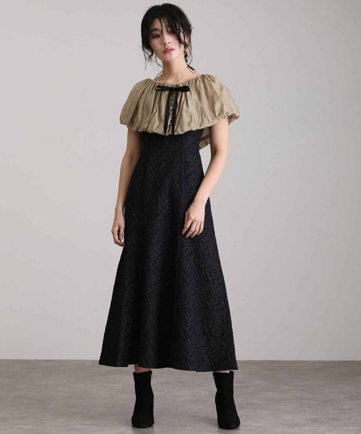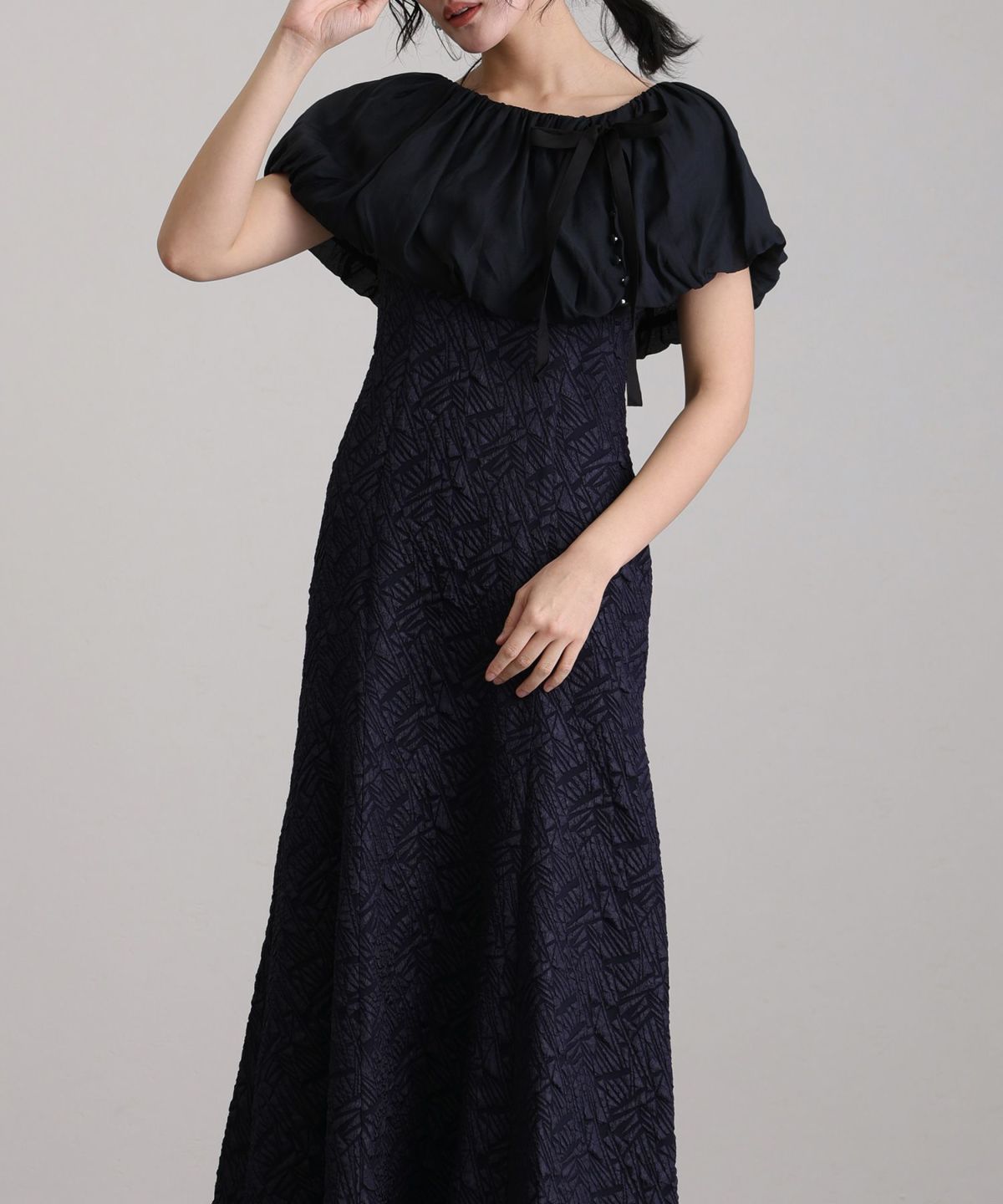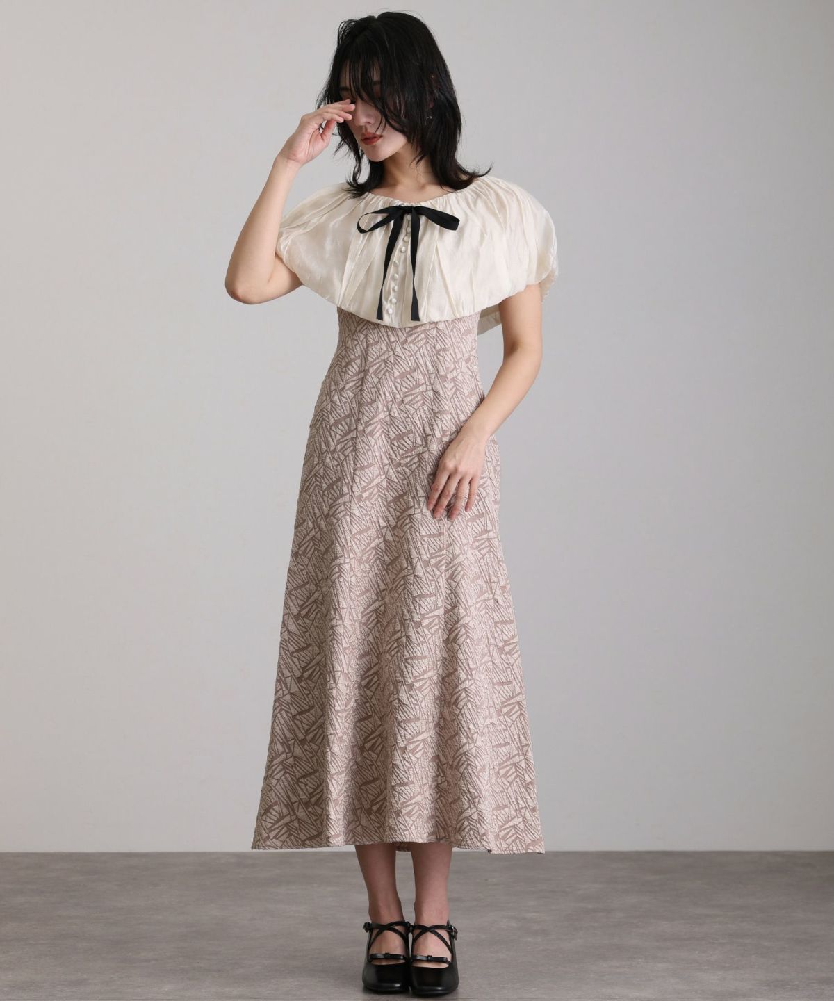 今季旬のジャガード生地 マルチケープジャガードドレス