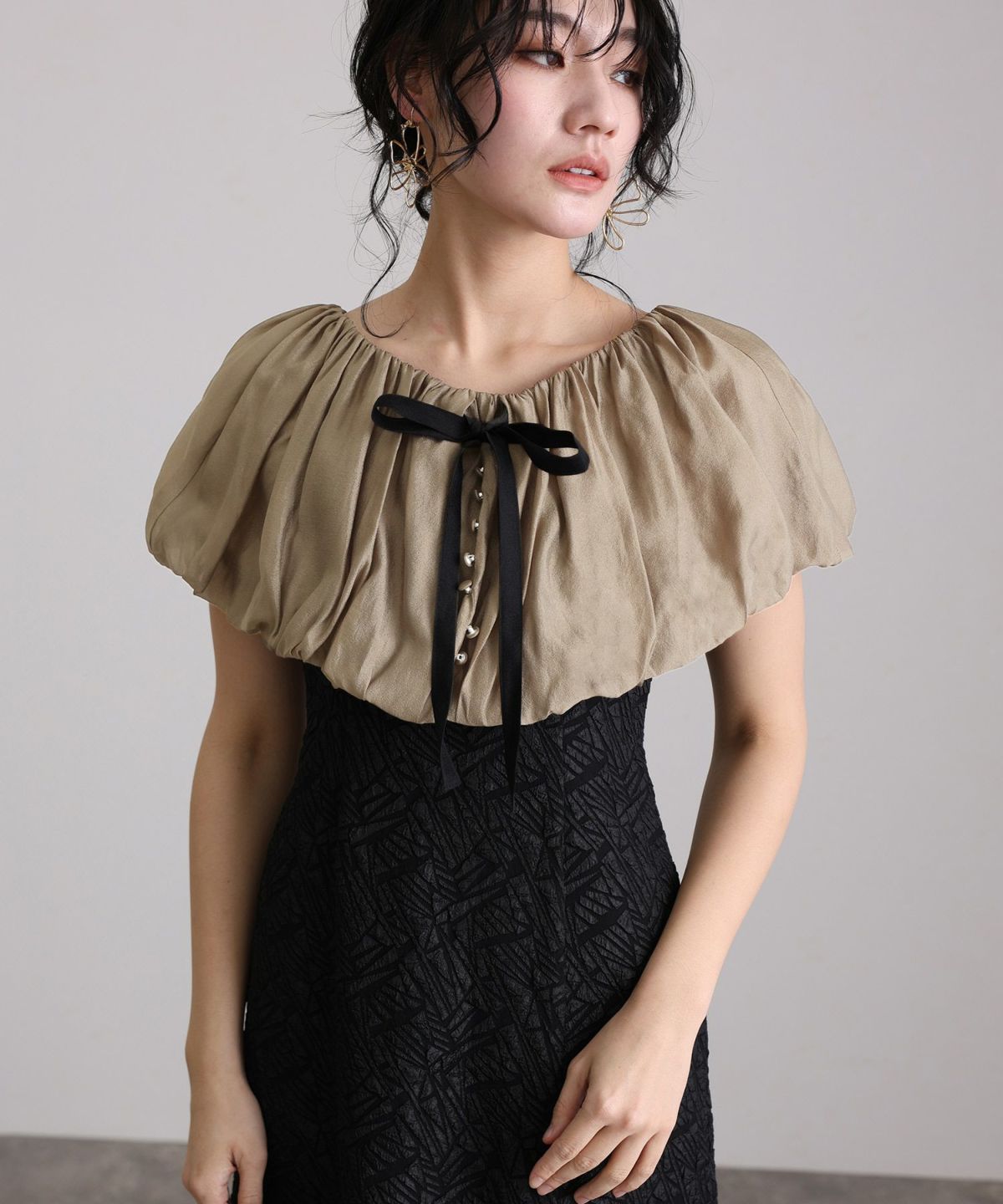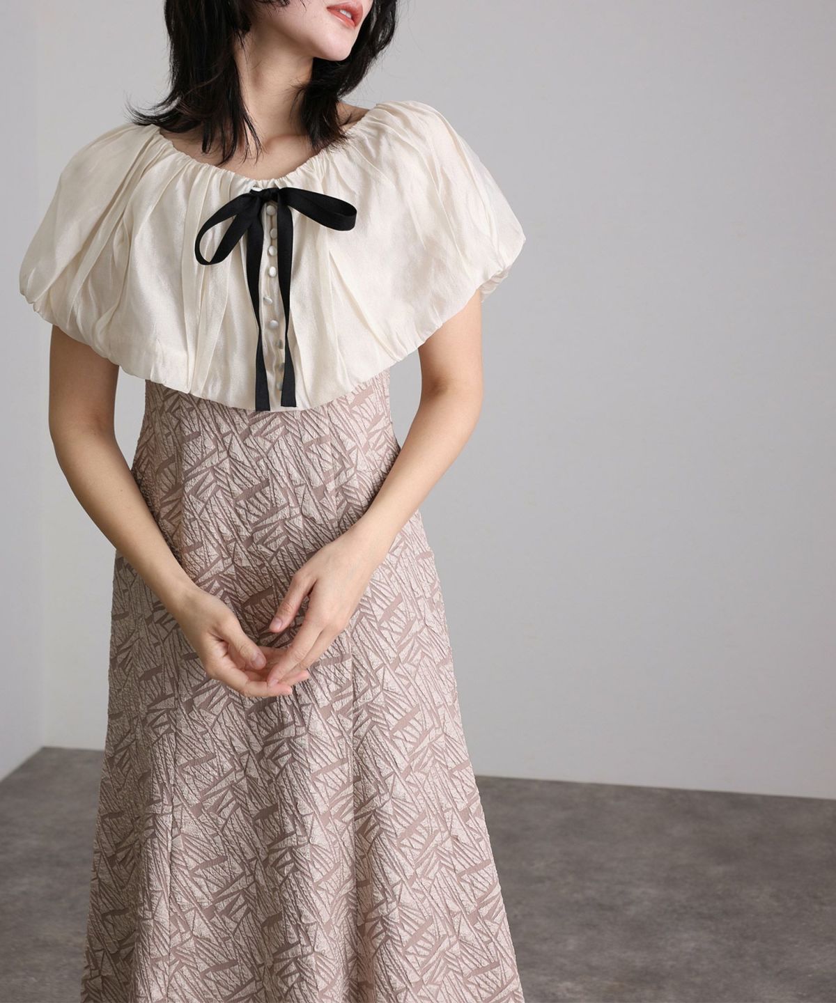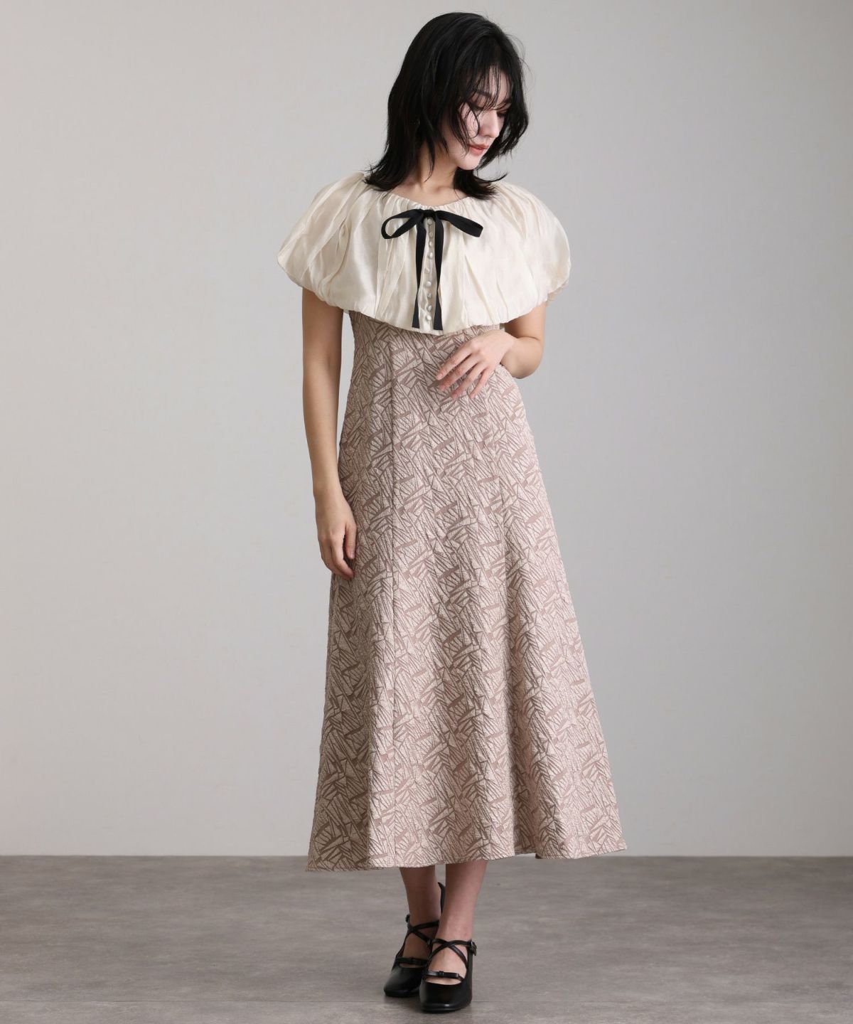 今季旬のジャガード生地 マルチケープジャガードドレス