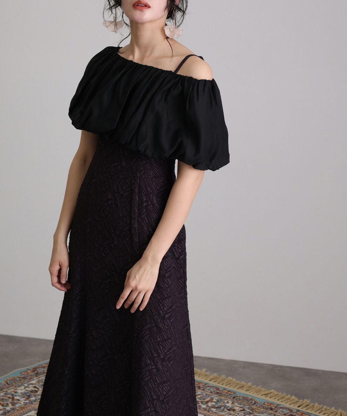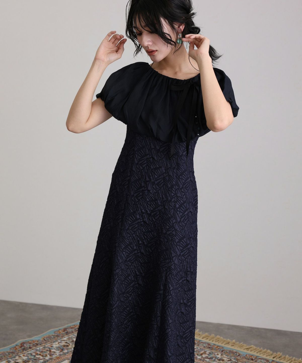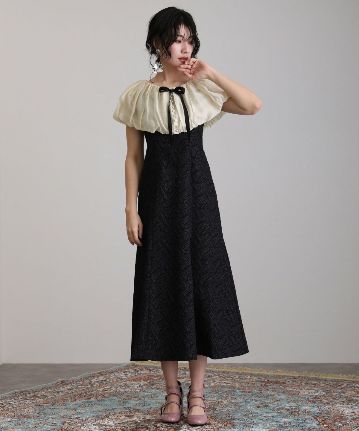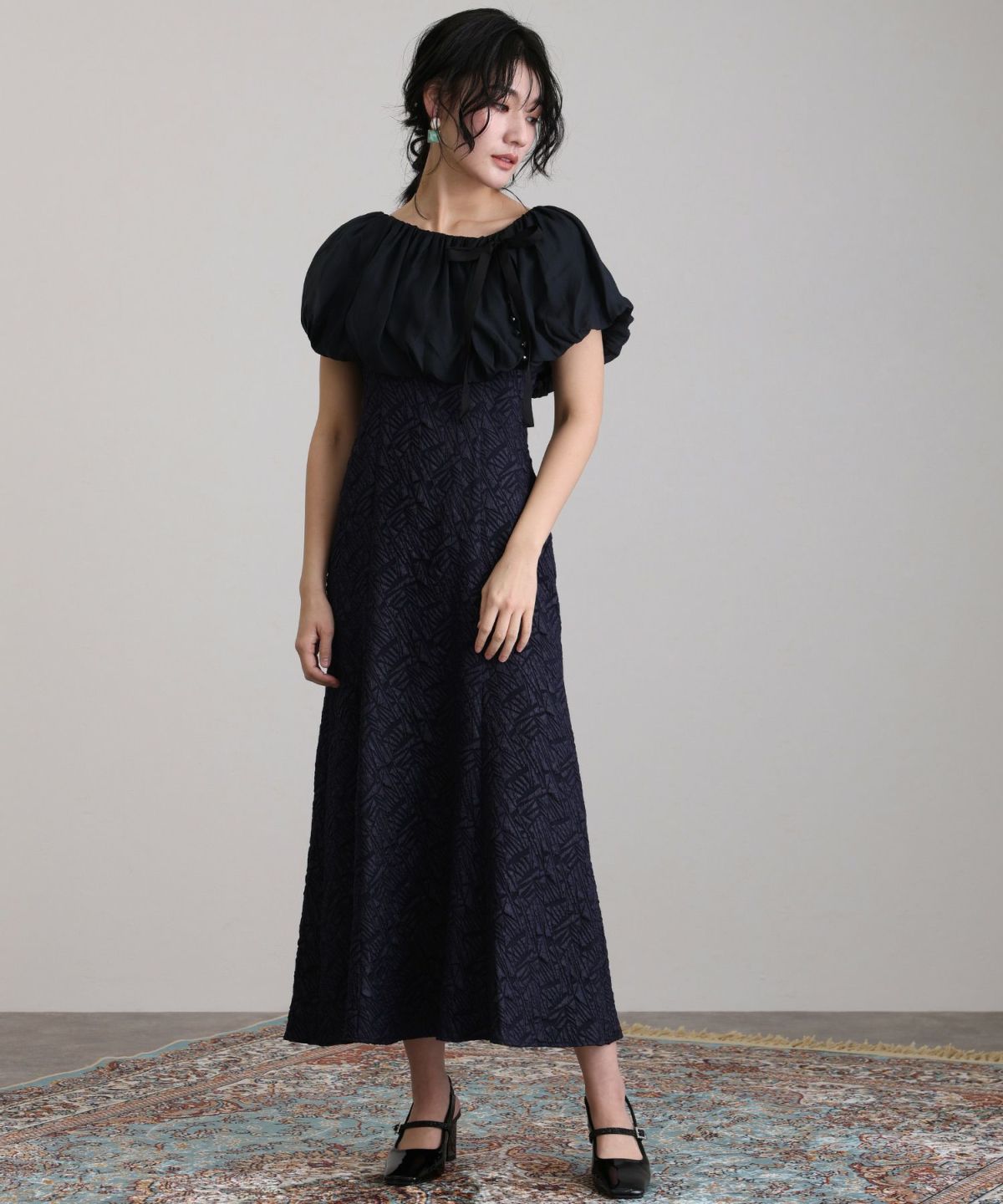 今季旬のジャガード生地 マルチケープジャガードドレス