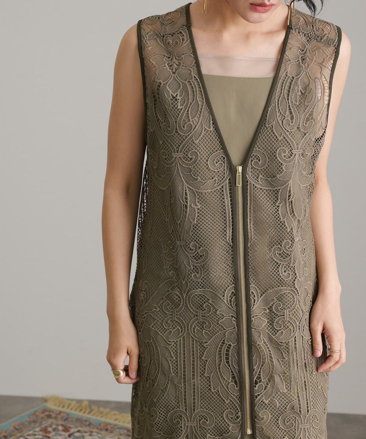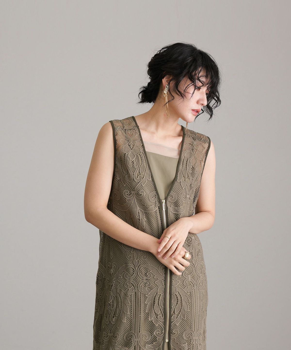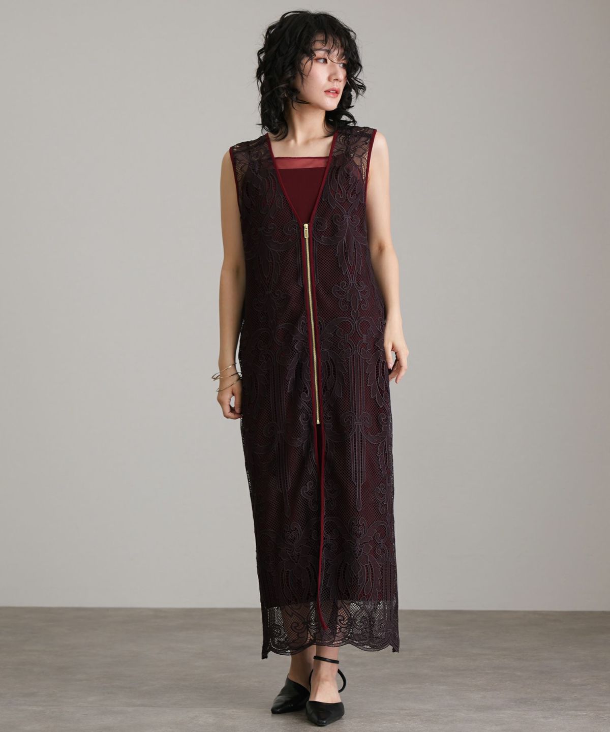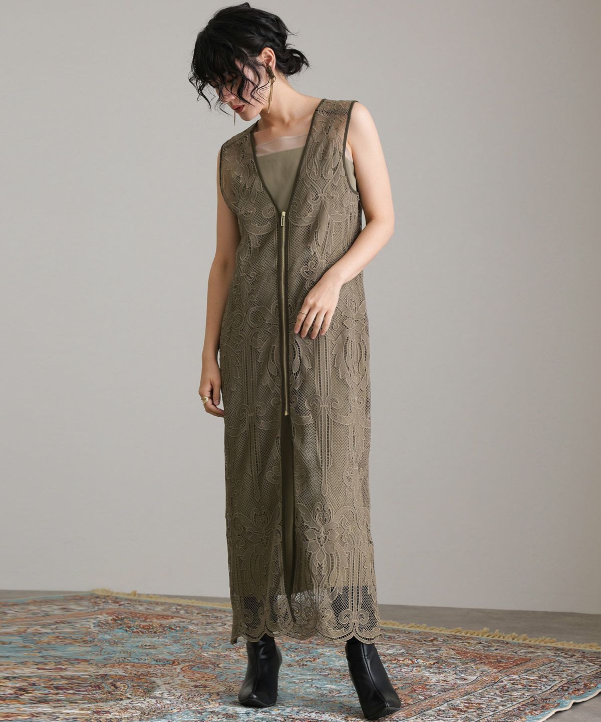 他にはない大胆なデザインが魅力 ケミカルレースジッパードレス