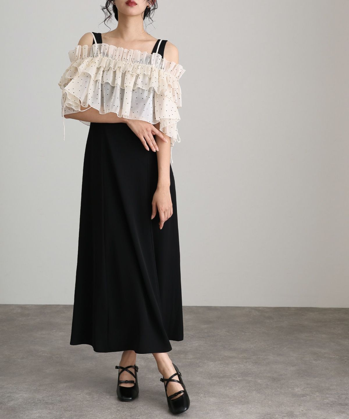 華やかで多様な着こなしを叶えるトップス ドットティアードトップス付きドレス