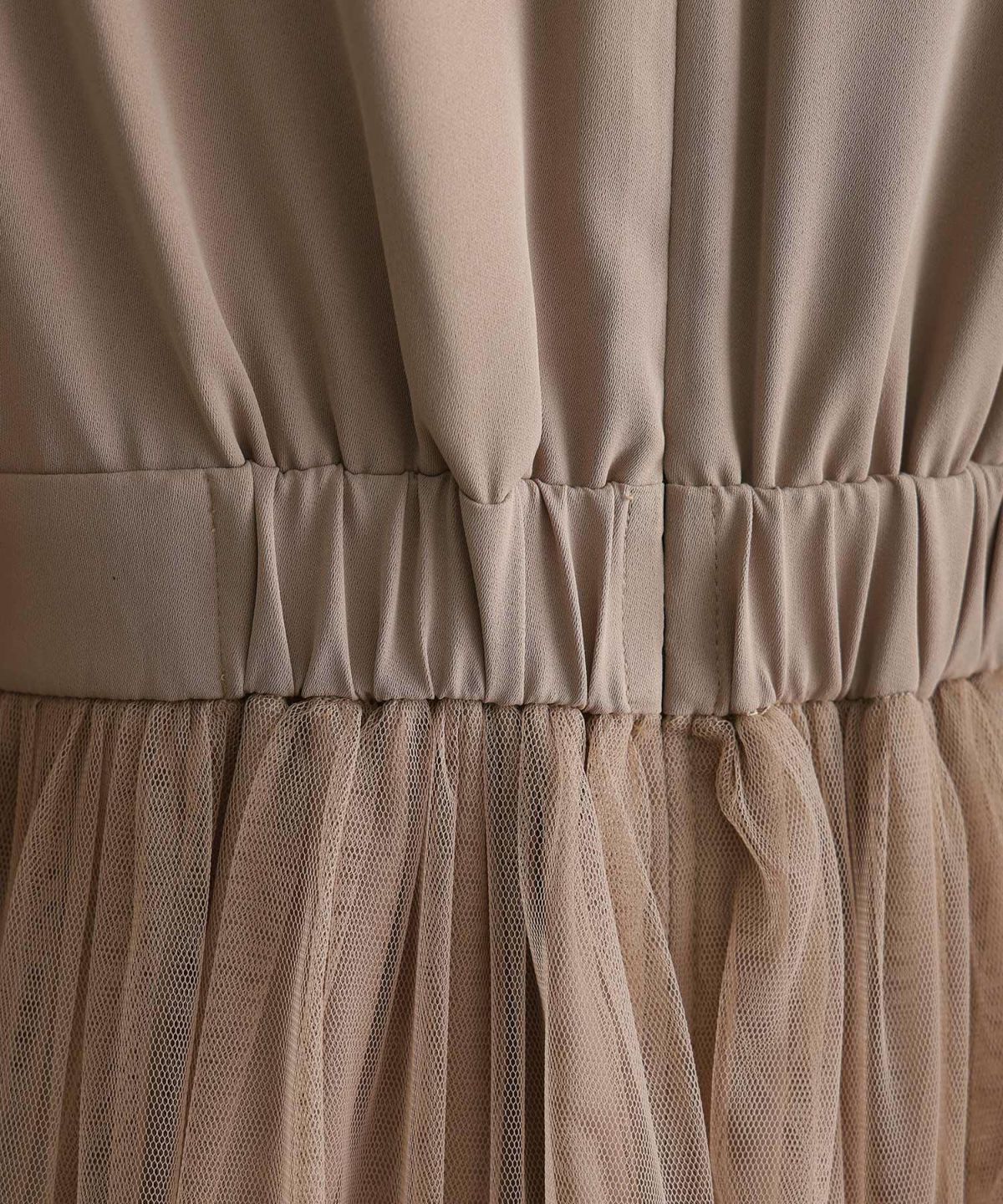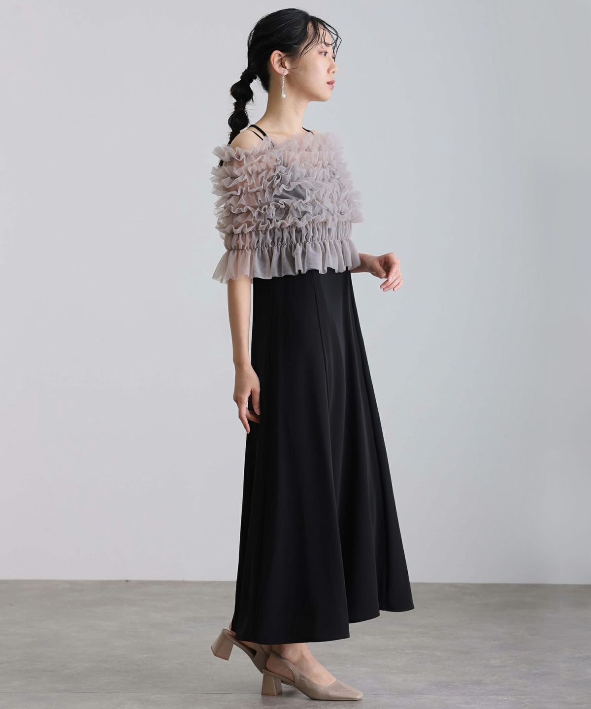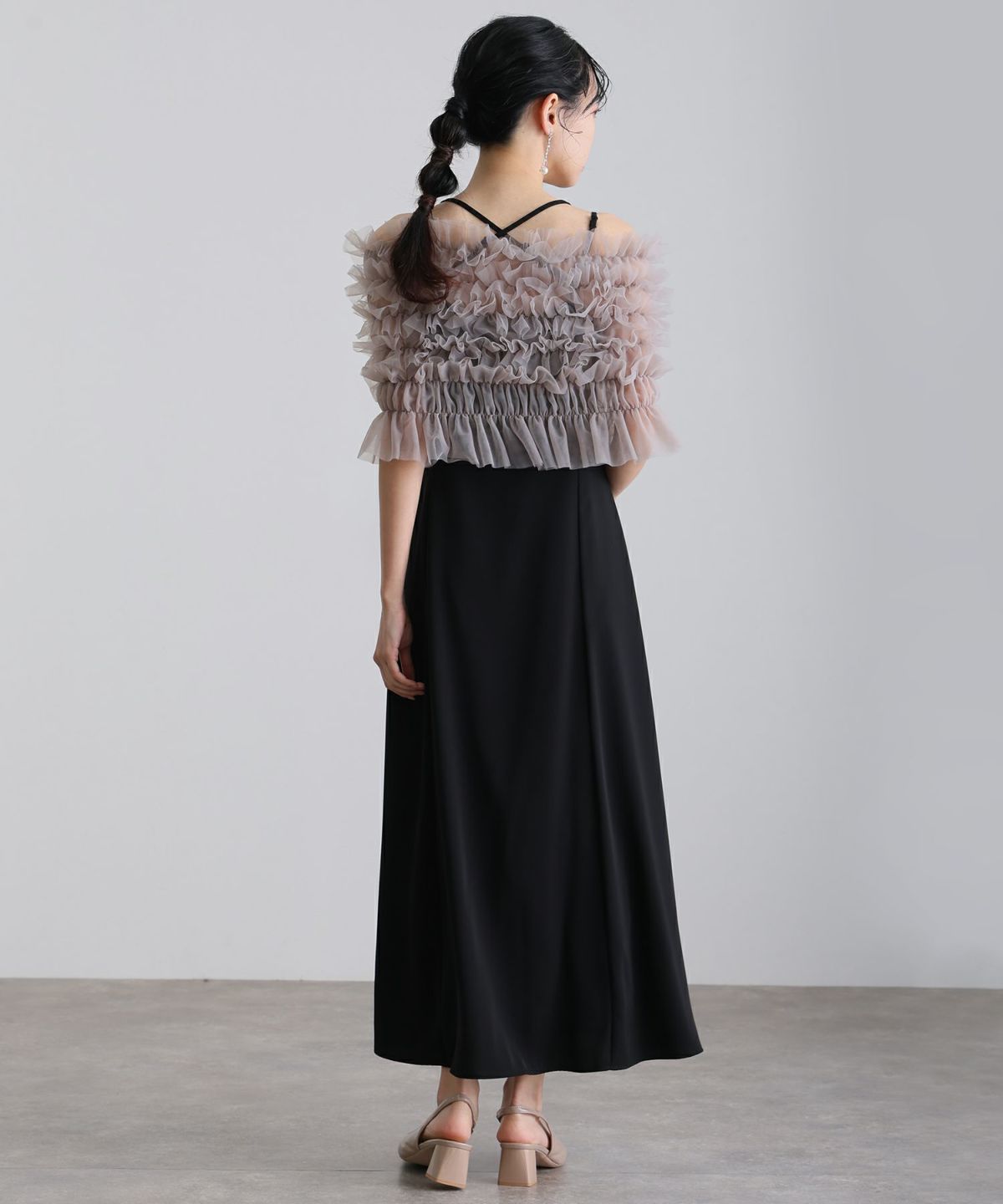 たっぷりチュールで華やかな印象に シャーリングチュールトップス2点セットドレス