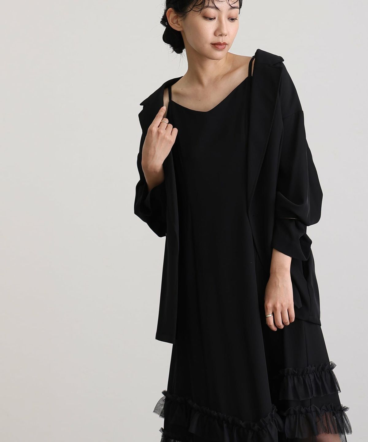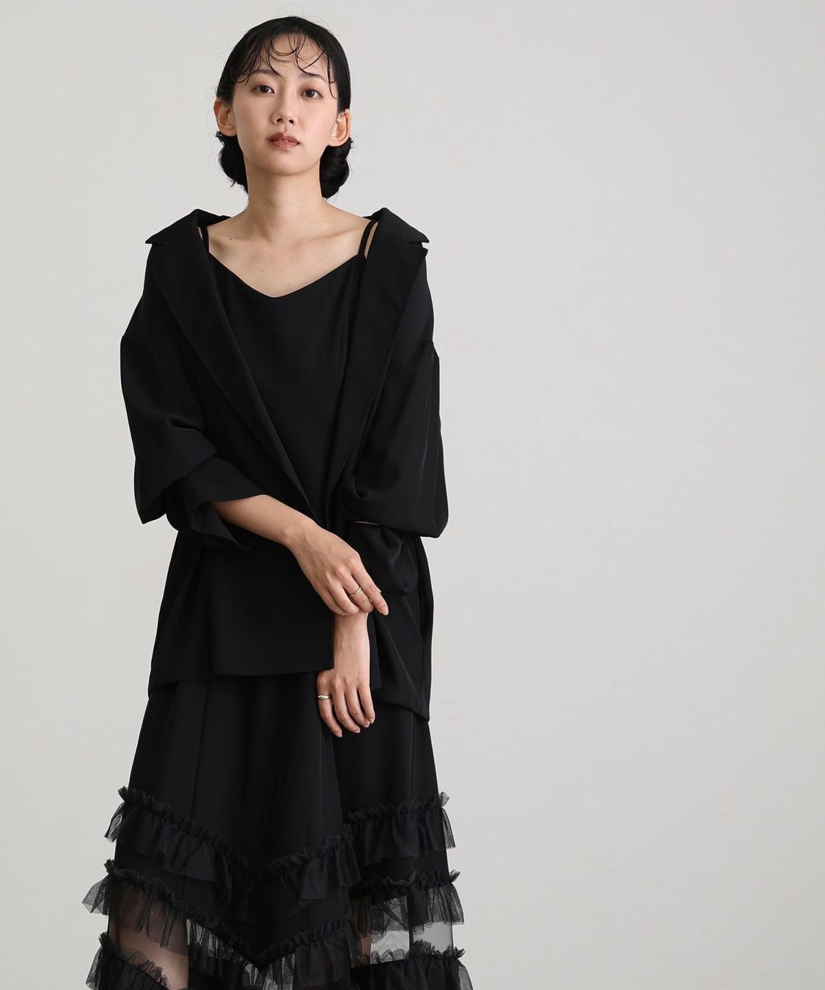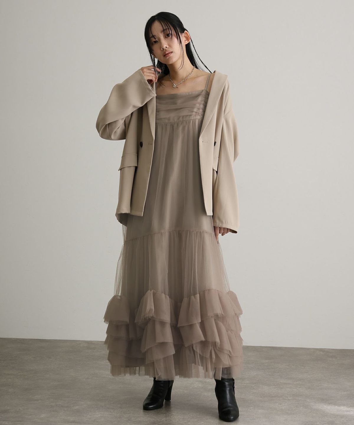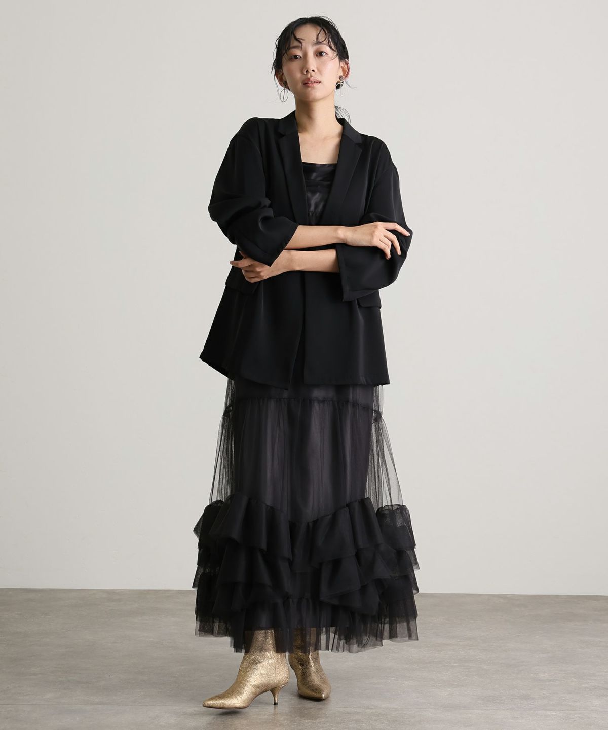 とろみ×チュールで魅せる大人の抜け感セットアップ ボリュームチュールジャケットセットドレス