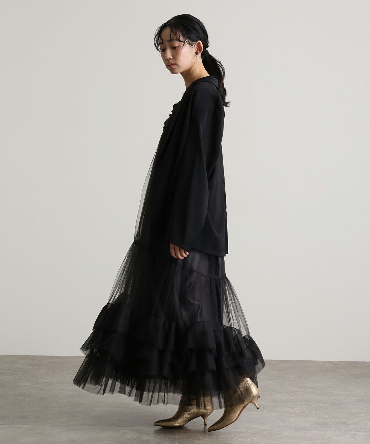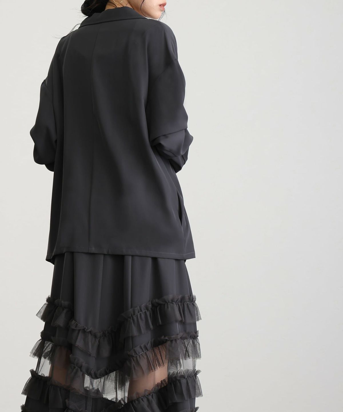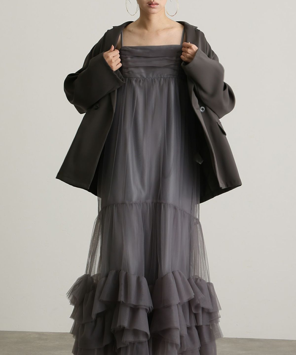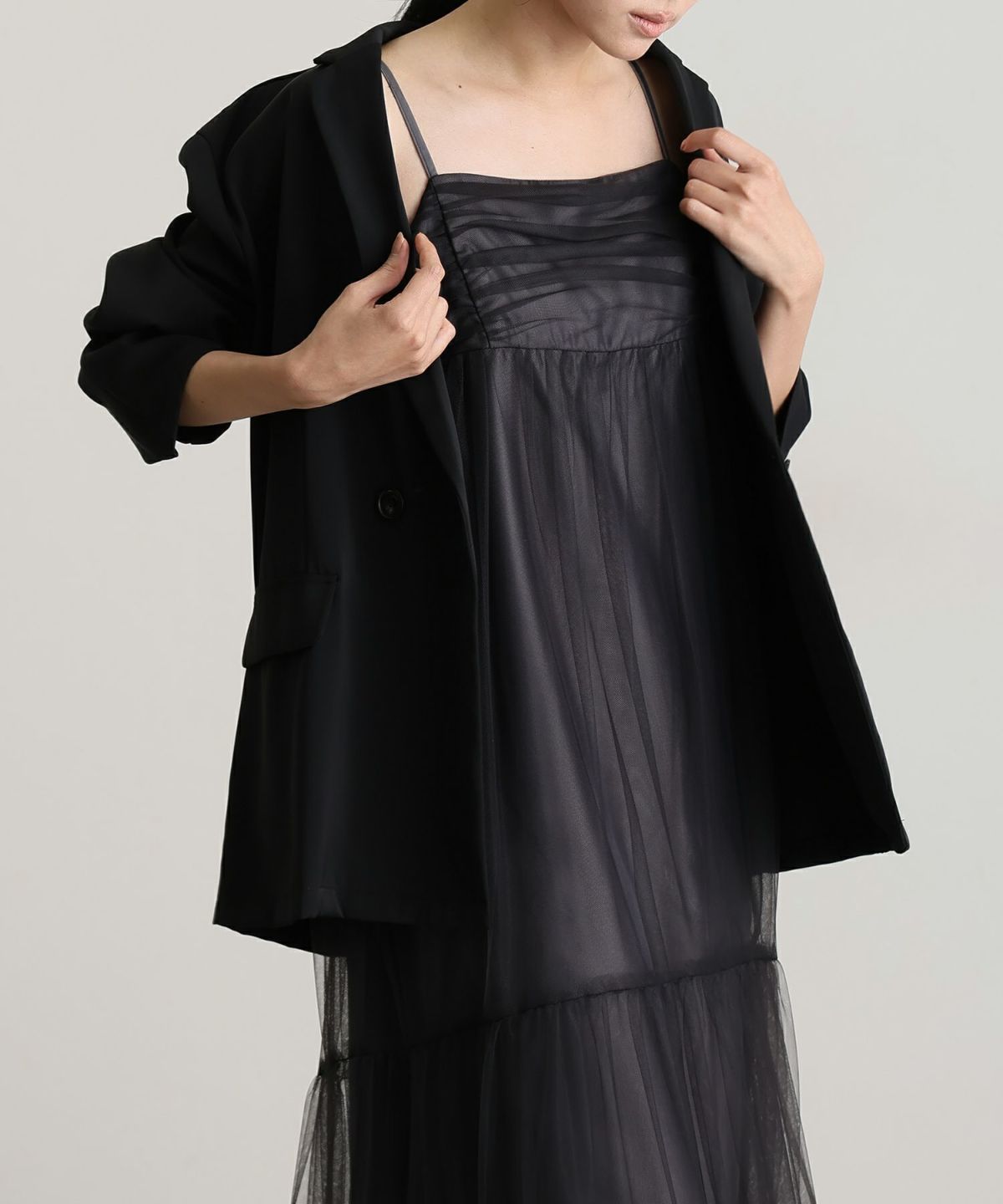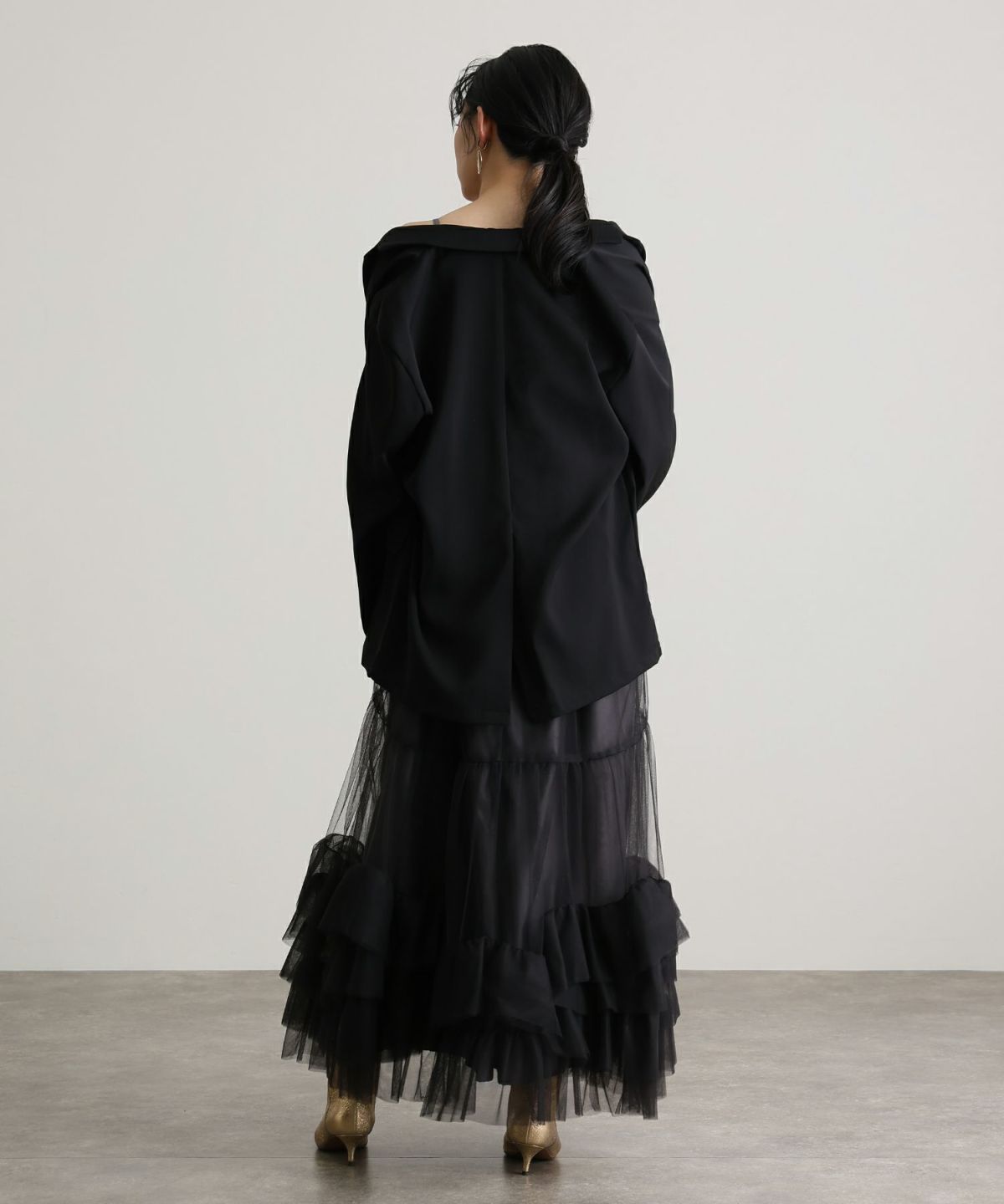 とろみ×チュールで魅せる大人の抜け感セットアップ ボリュームチュールジャケットセットドレス