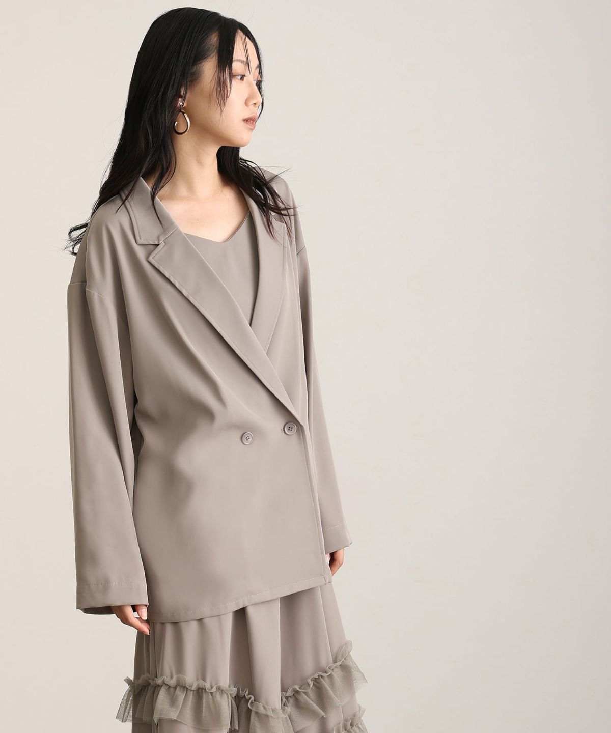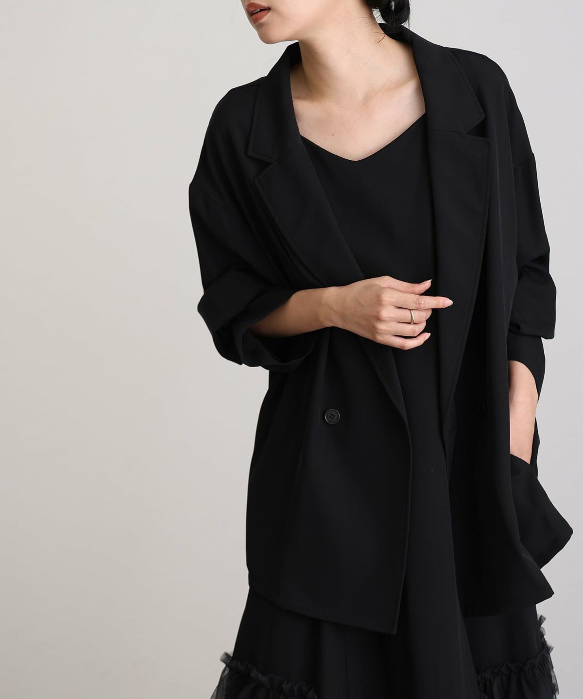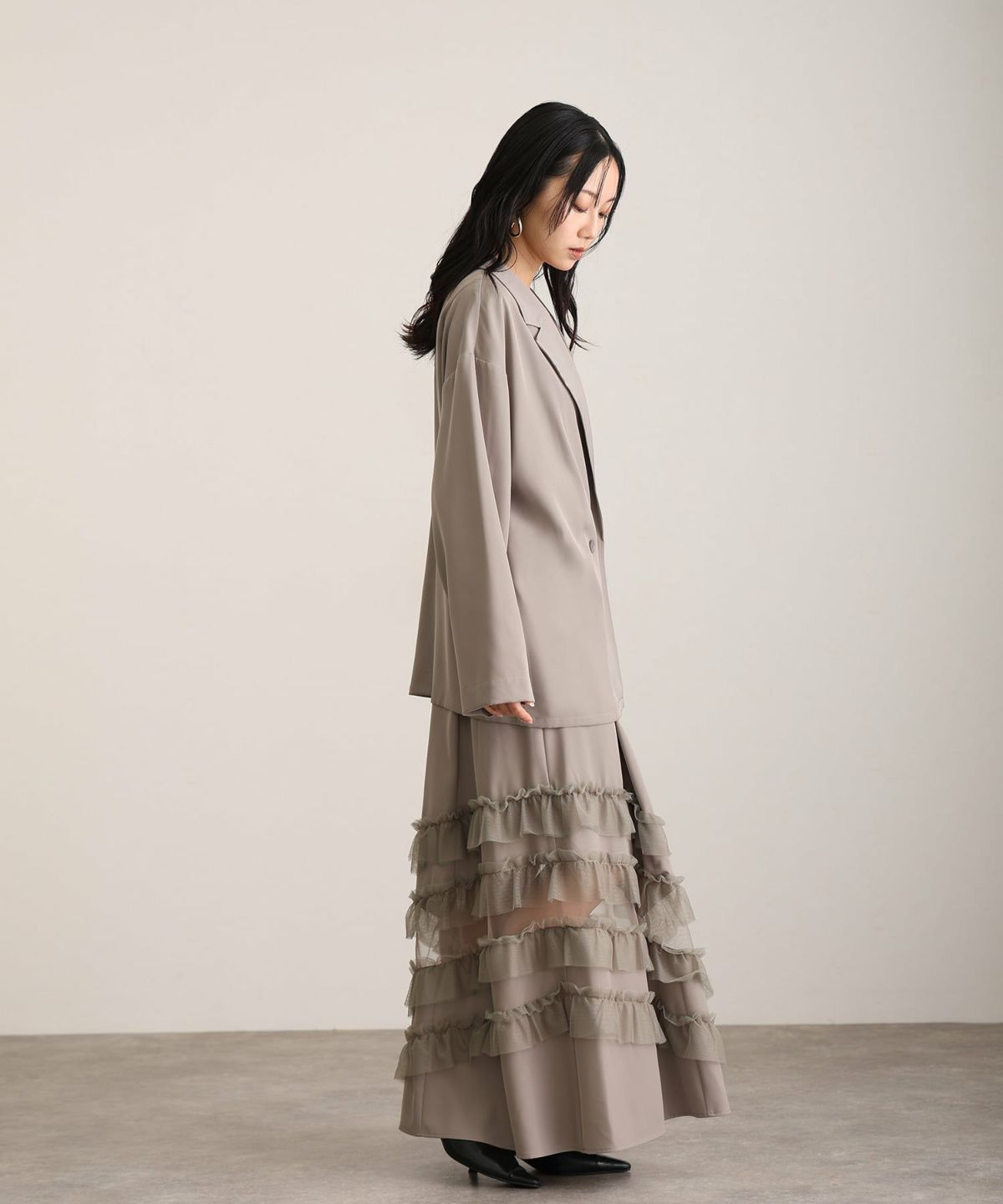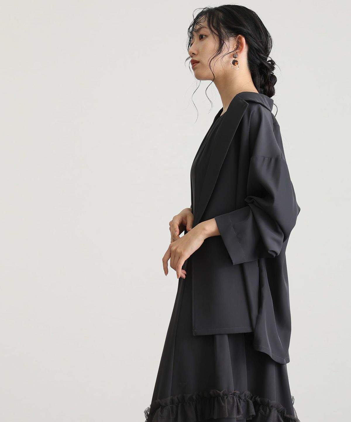 とろみ×チュールで魅せる大人の抜け感セットアップ ボリュームチュールジャケットセットドレス