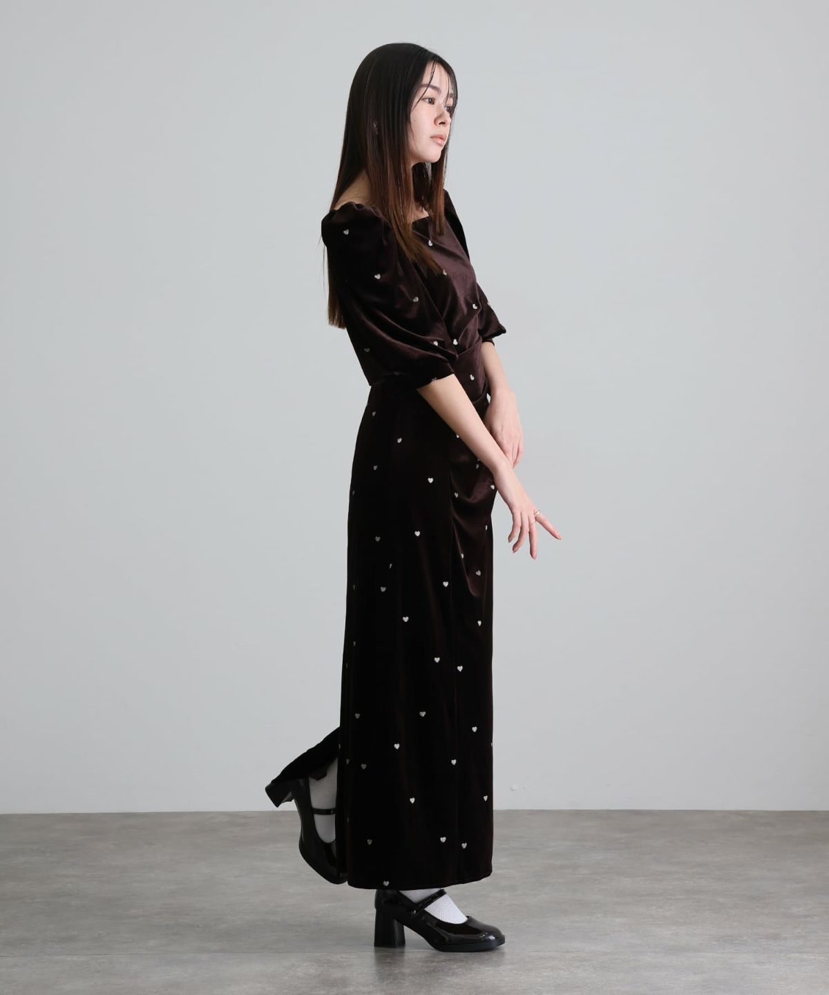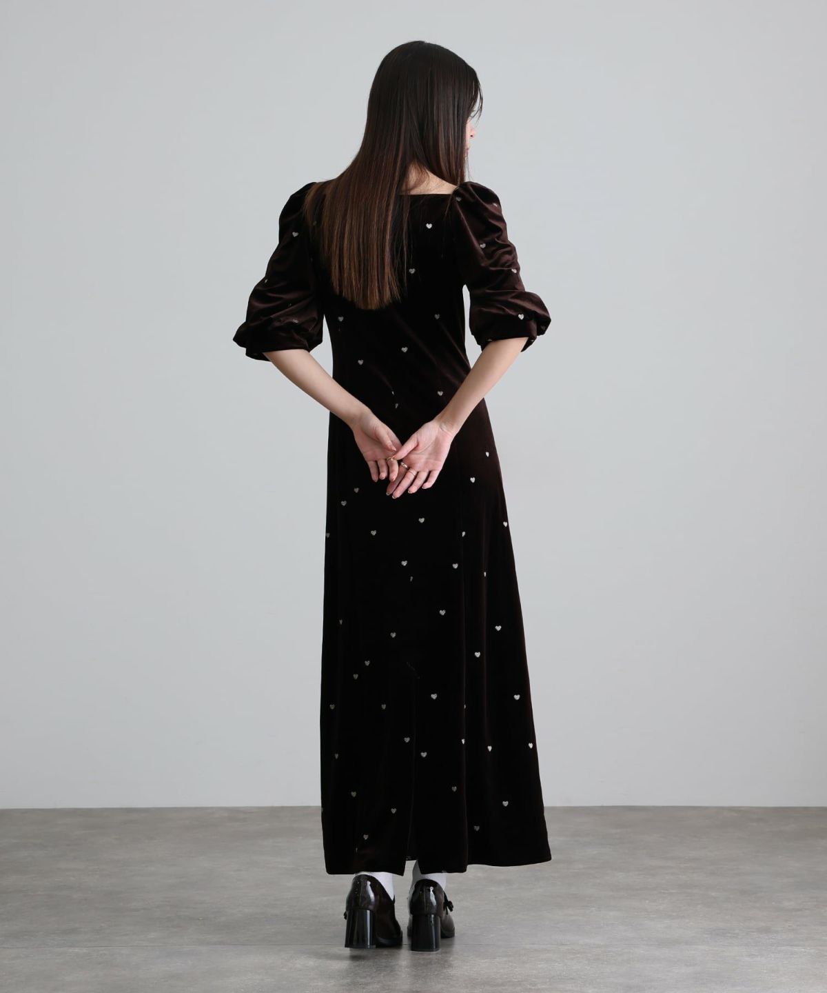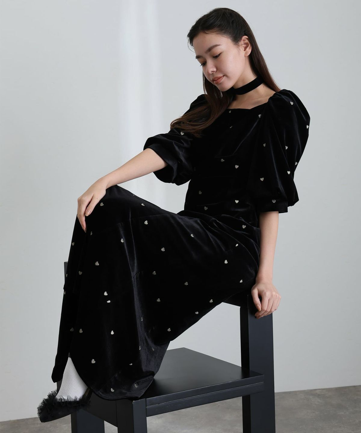 全体に施されたハートがフェミニンな雰囲気に スイートハートベロアドレス