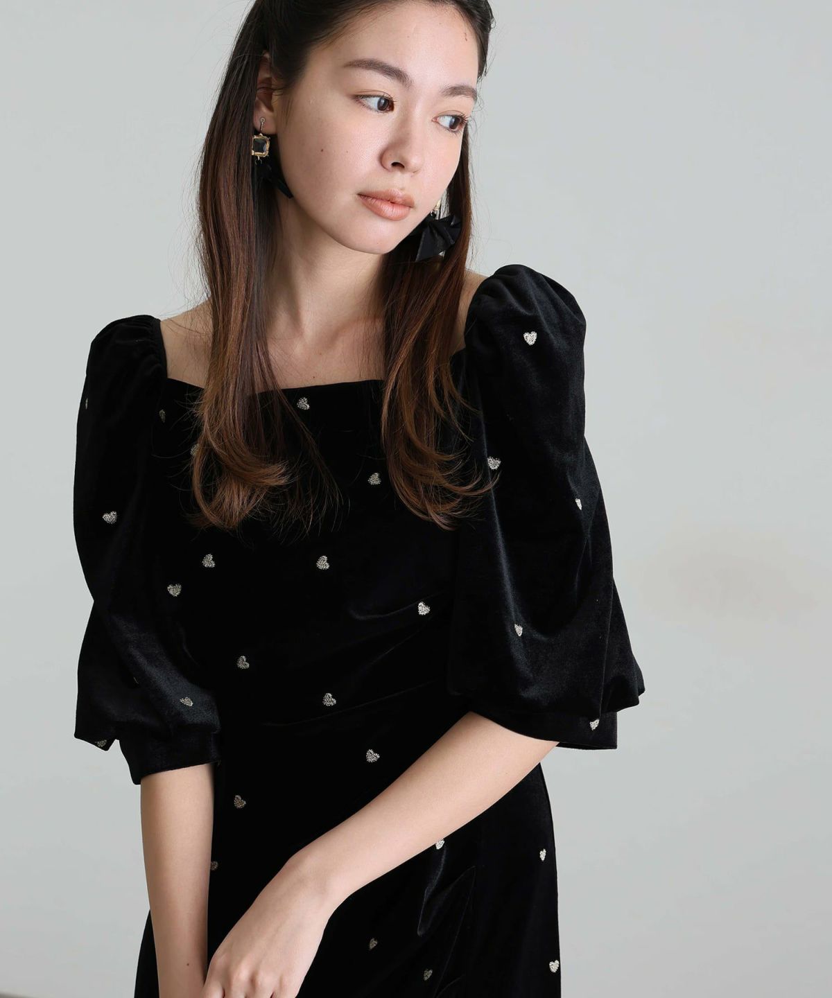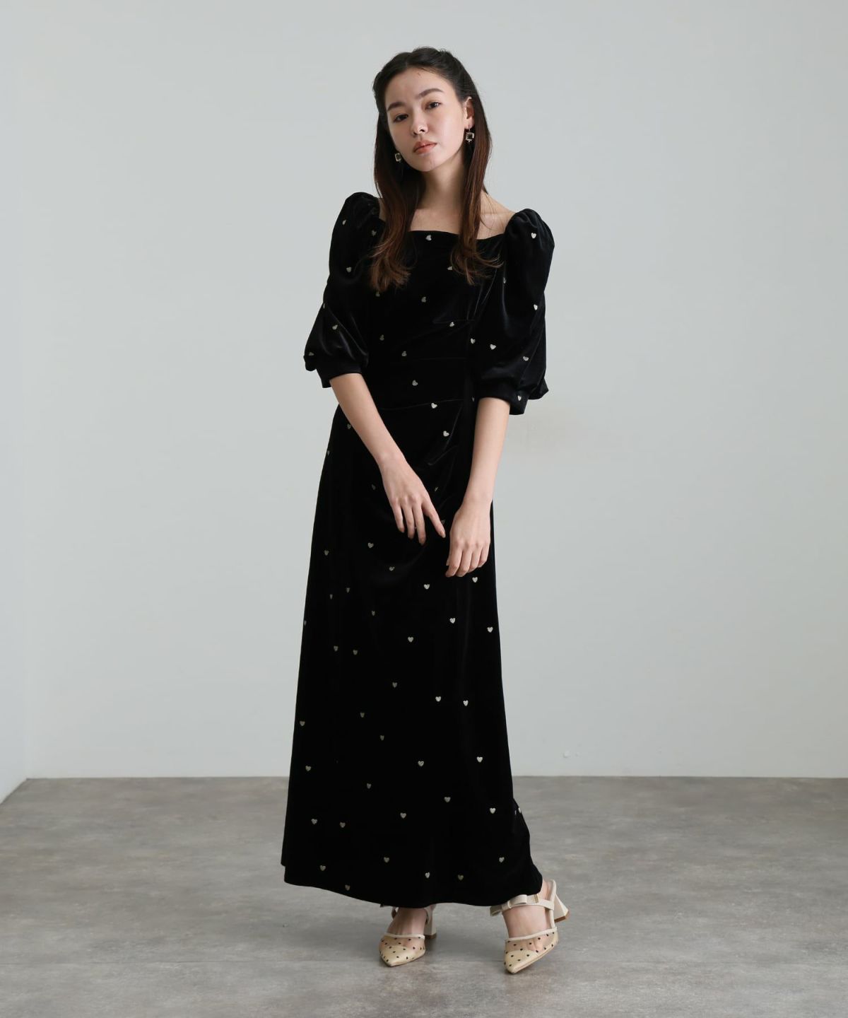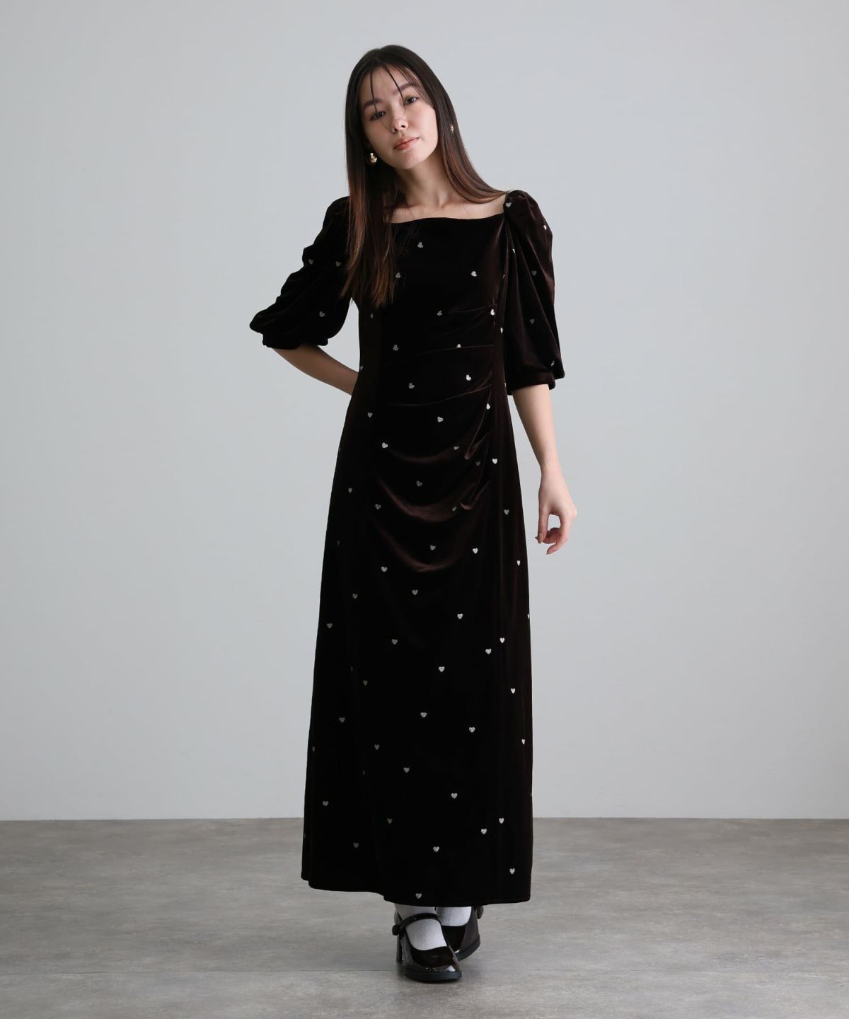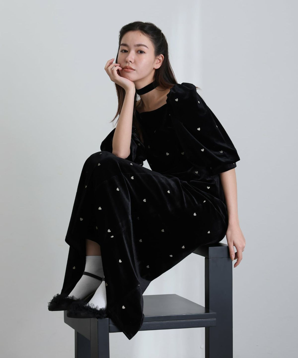 全体に施されたハートがフェミニンな雰囲気に スイートハートベロアドレス