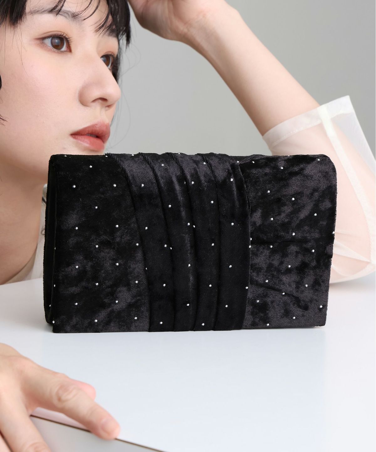人気のatloパーティーバッグ。結婚式など特別な日を華やかに彩る、上品な一点。
