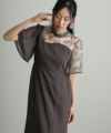 袖の光沢感ある刺繍が上品さを引き立てる スリーブエンブロイダリードレス