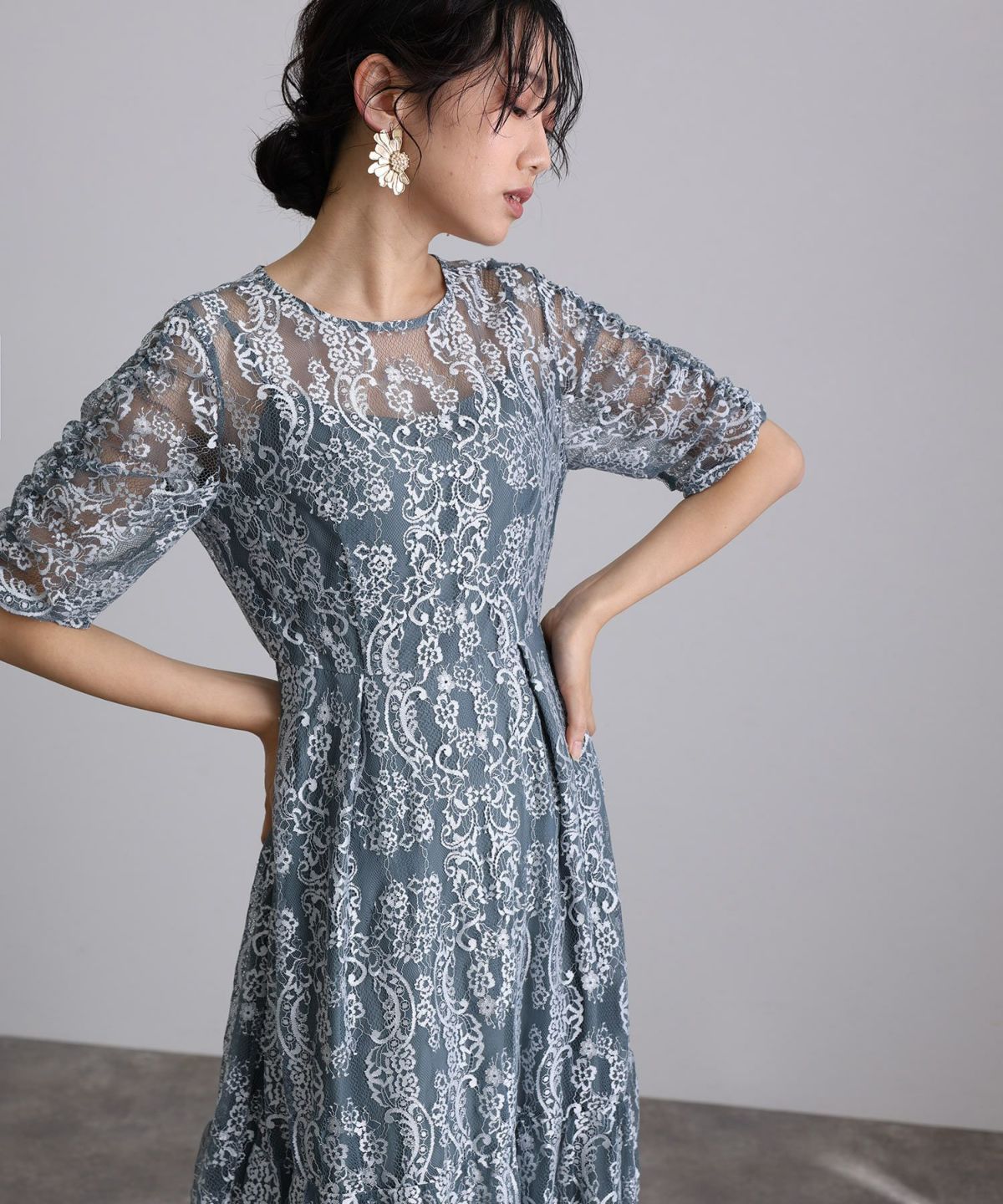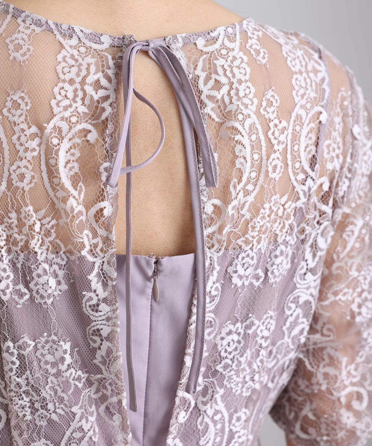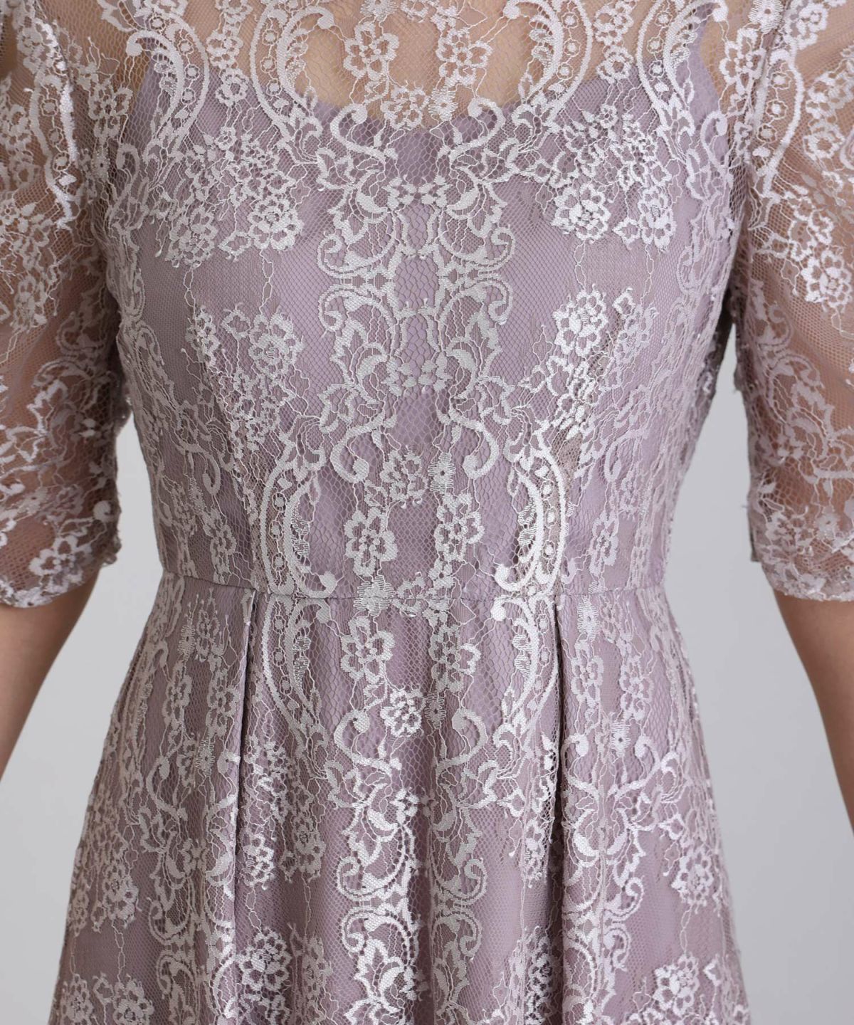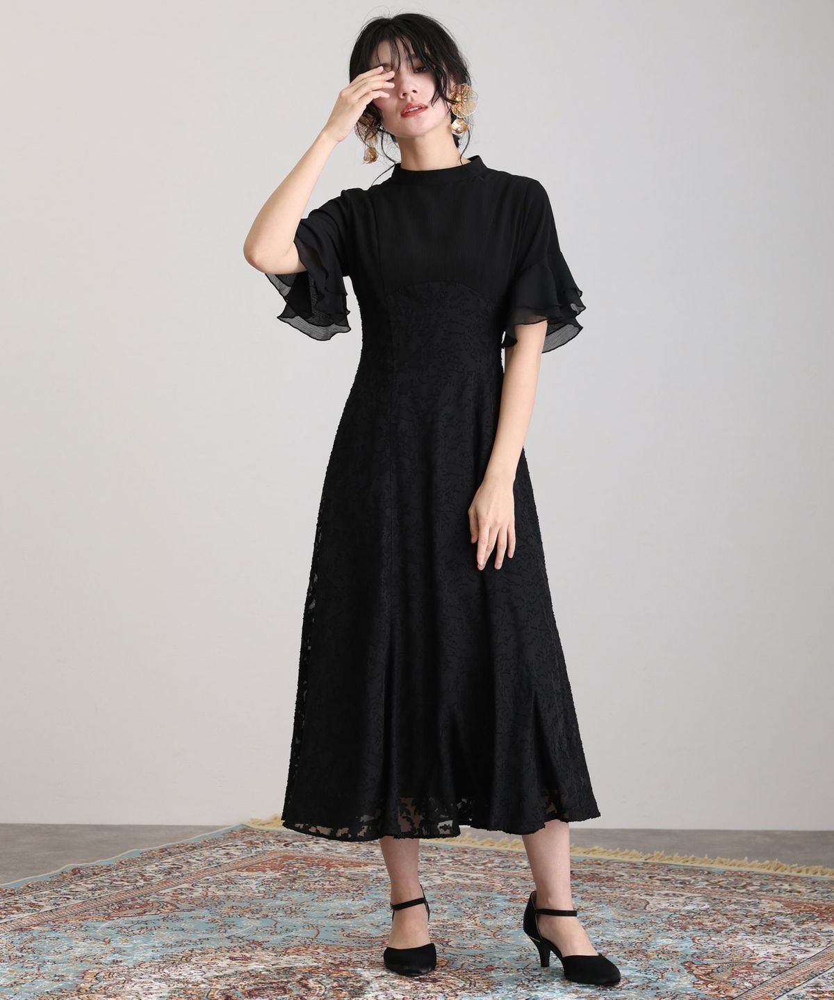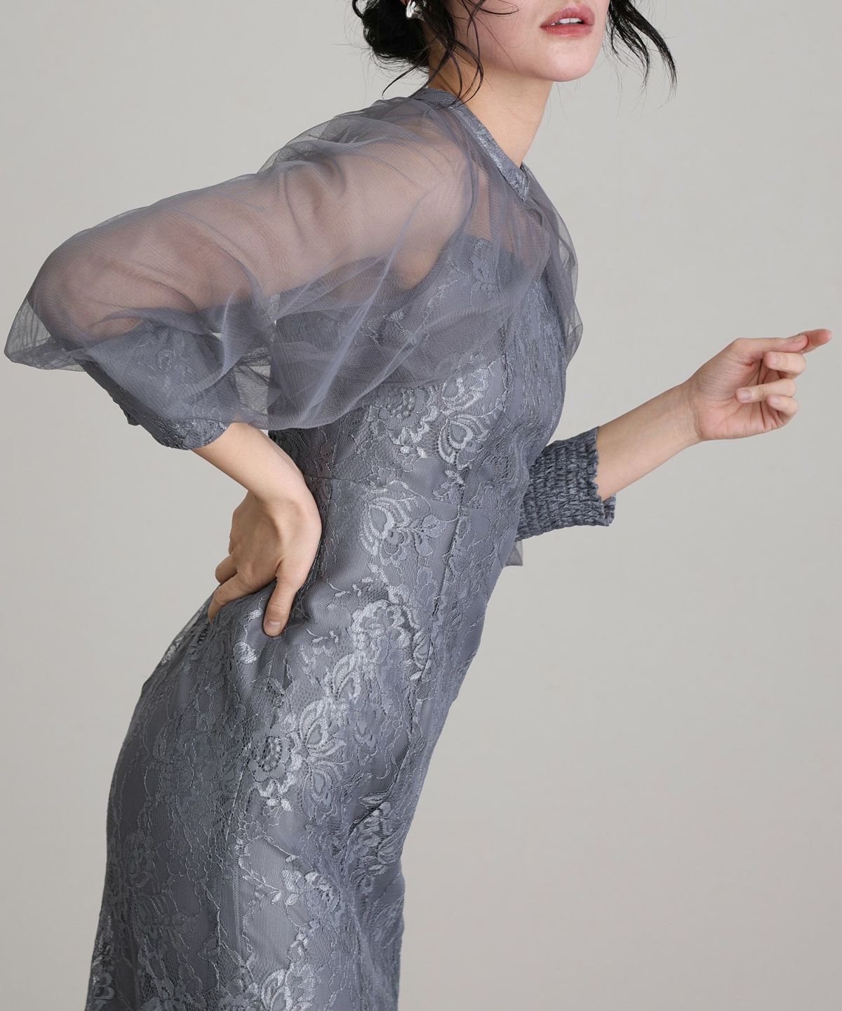 デコルテの程よい透け感が大人っぽい雰囲気に ジャガードレース切り替えドレス