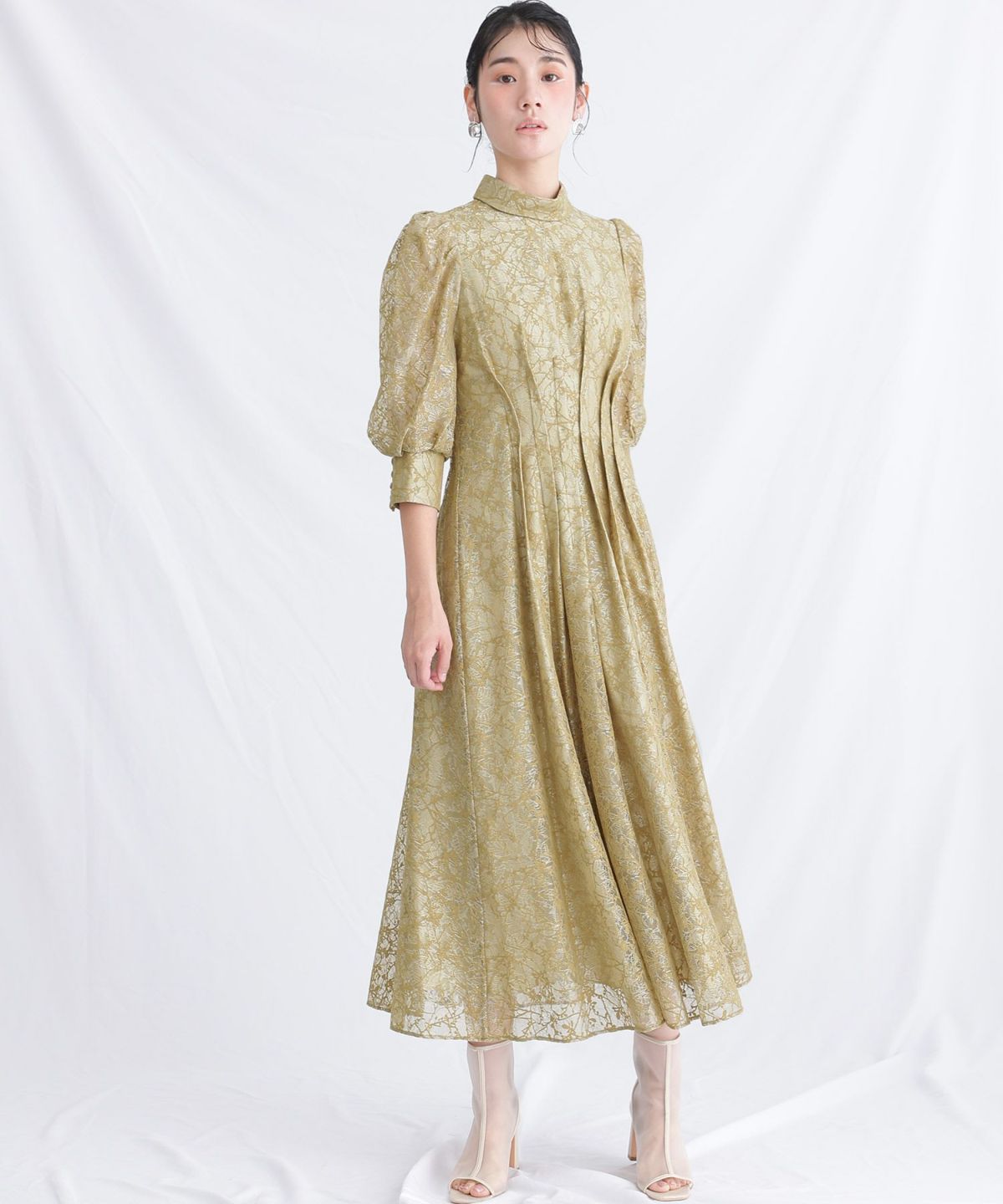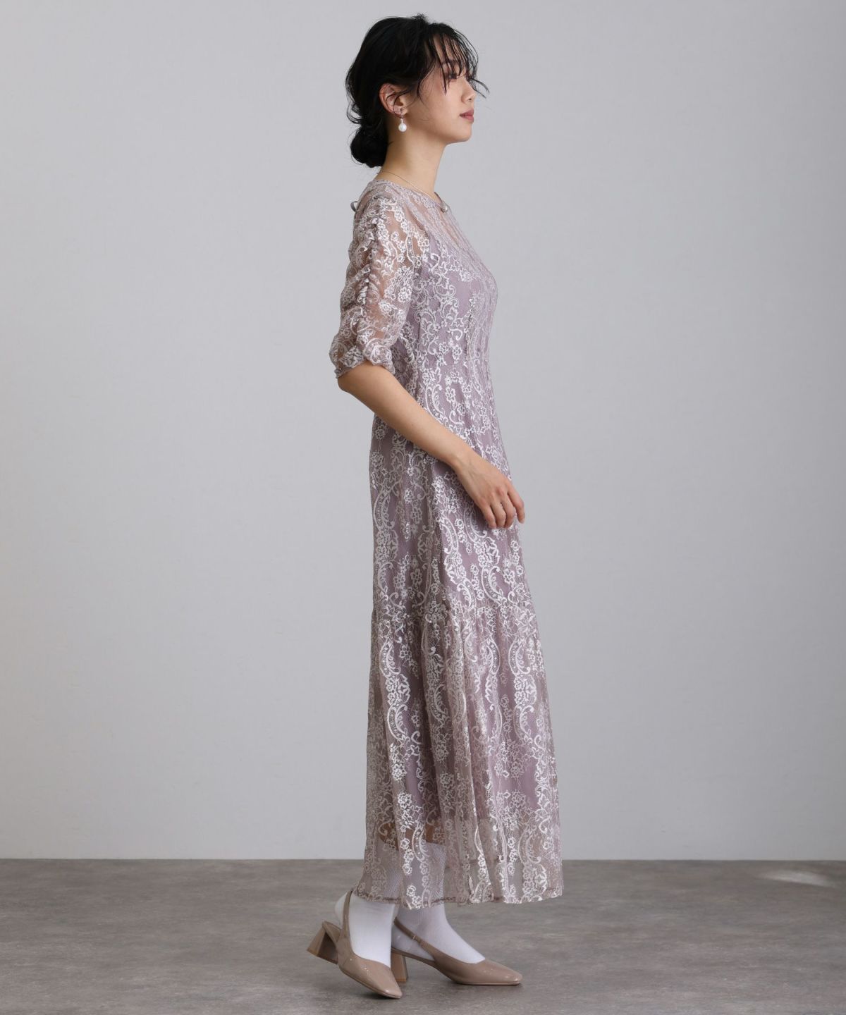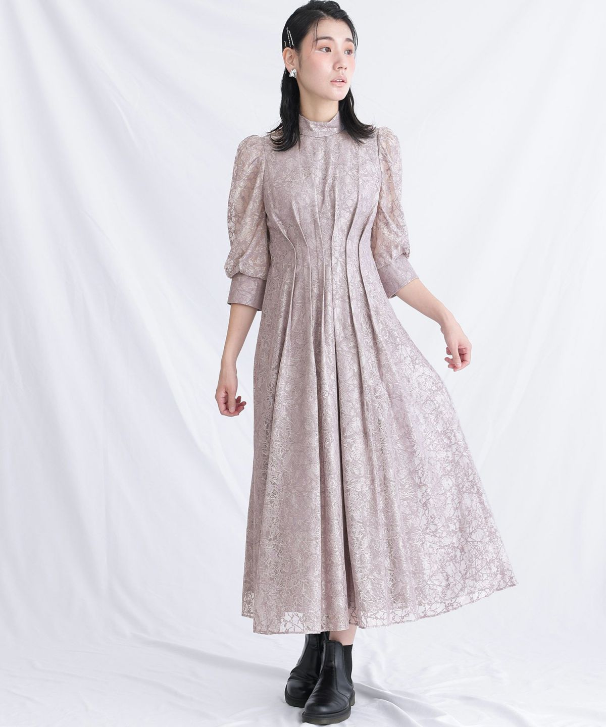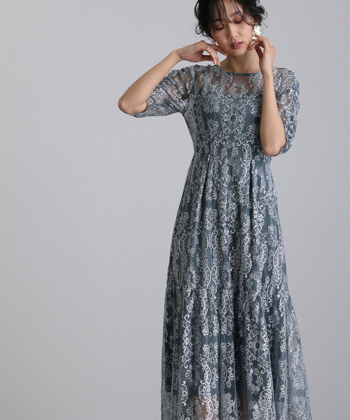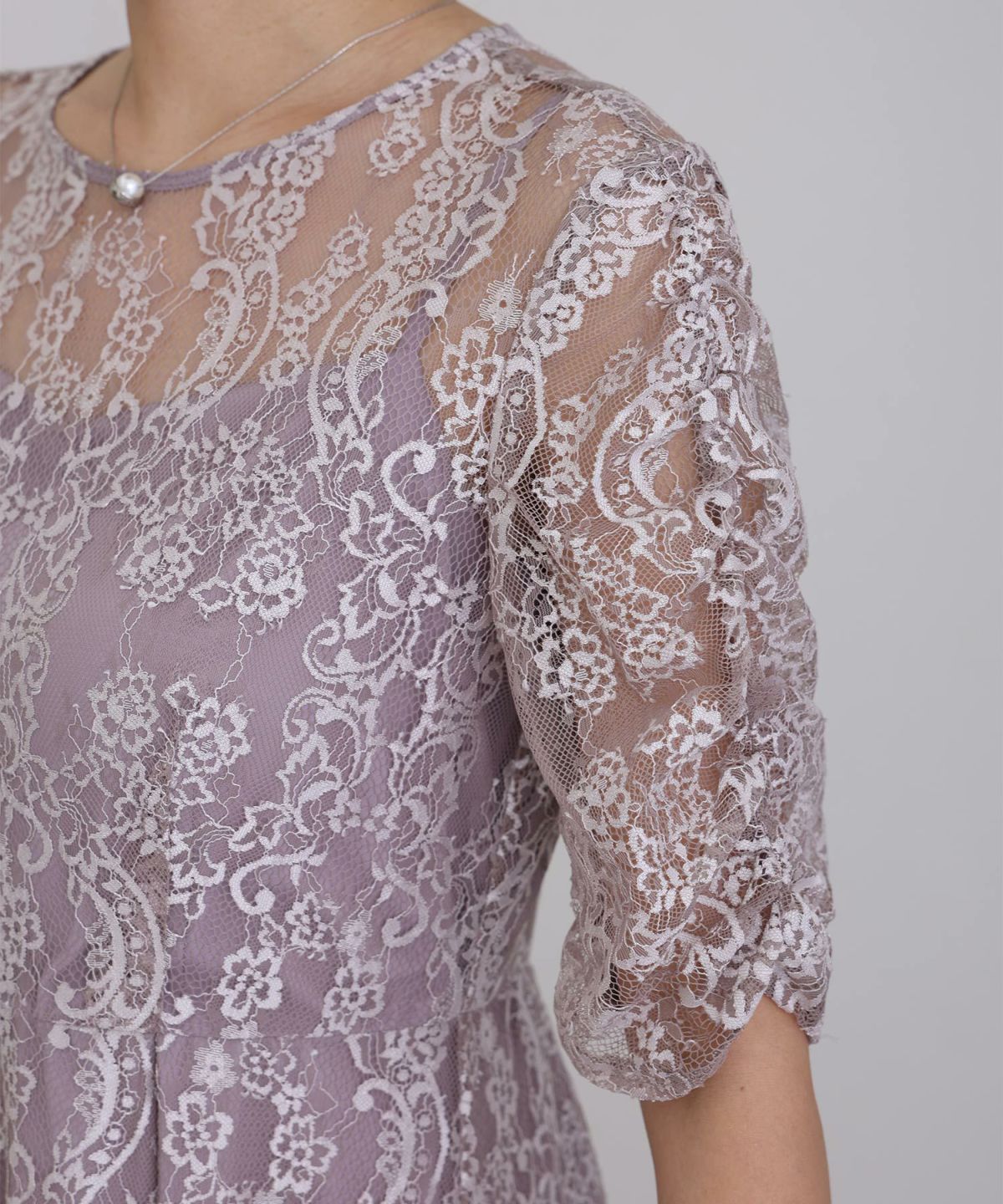 デコルテの程よい透け感が大人っぽい雰囲気に ジャガードレース切り替えドレス