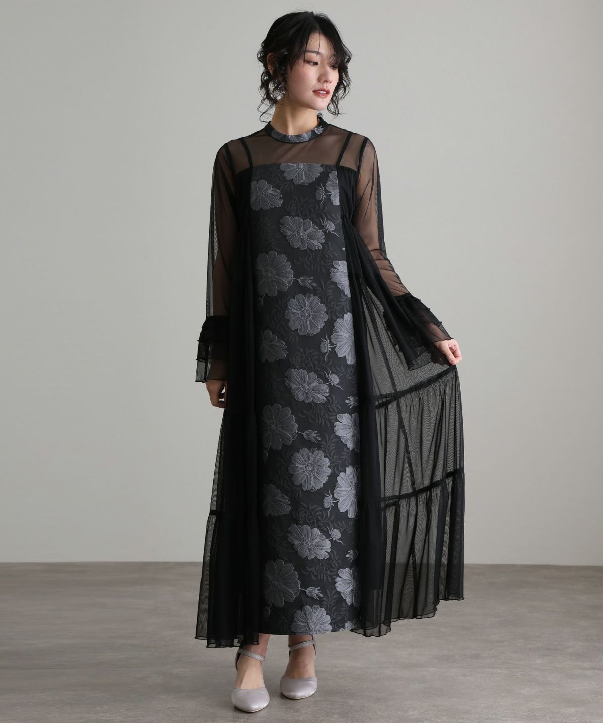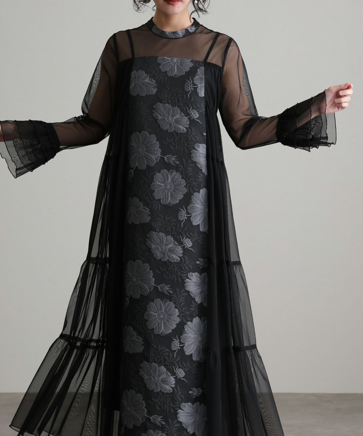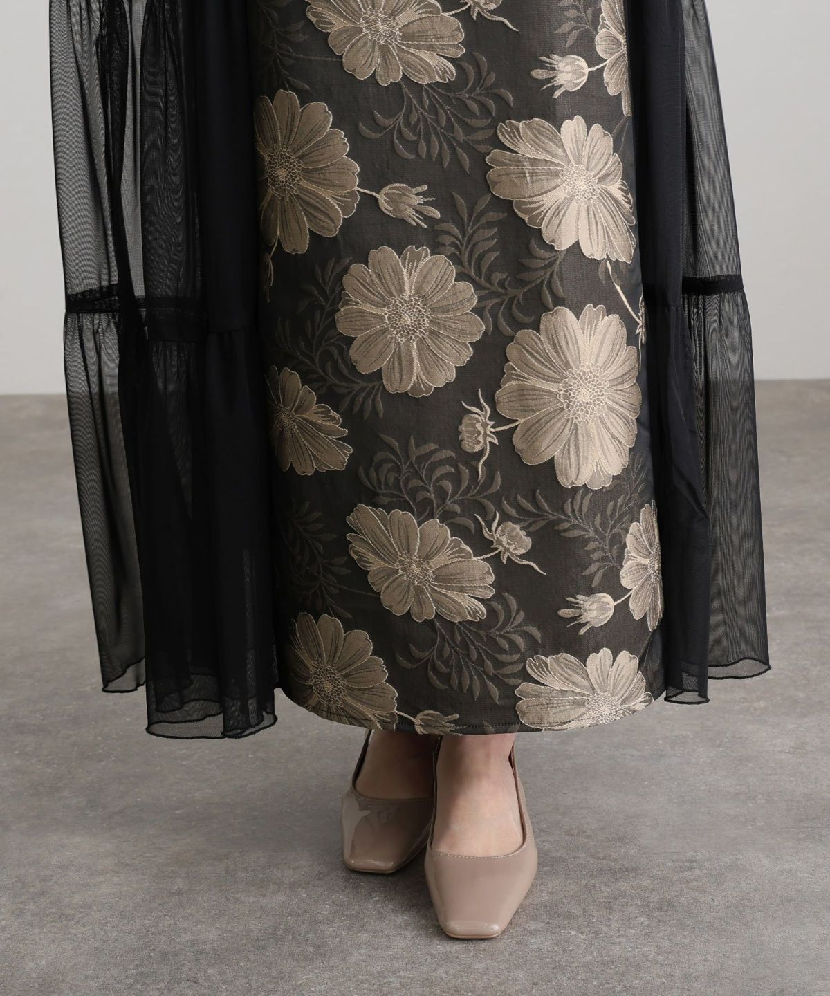 ヴィンテージ風の刺繍でフェミニンな印象に フラワー刺繍チュールドレス