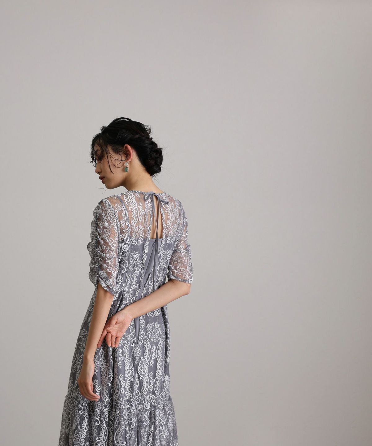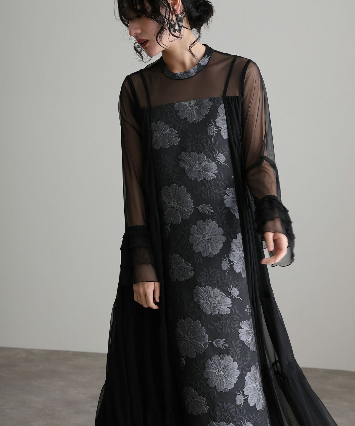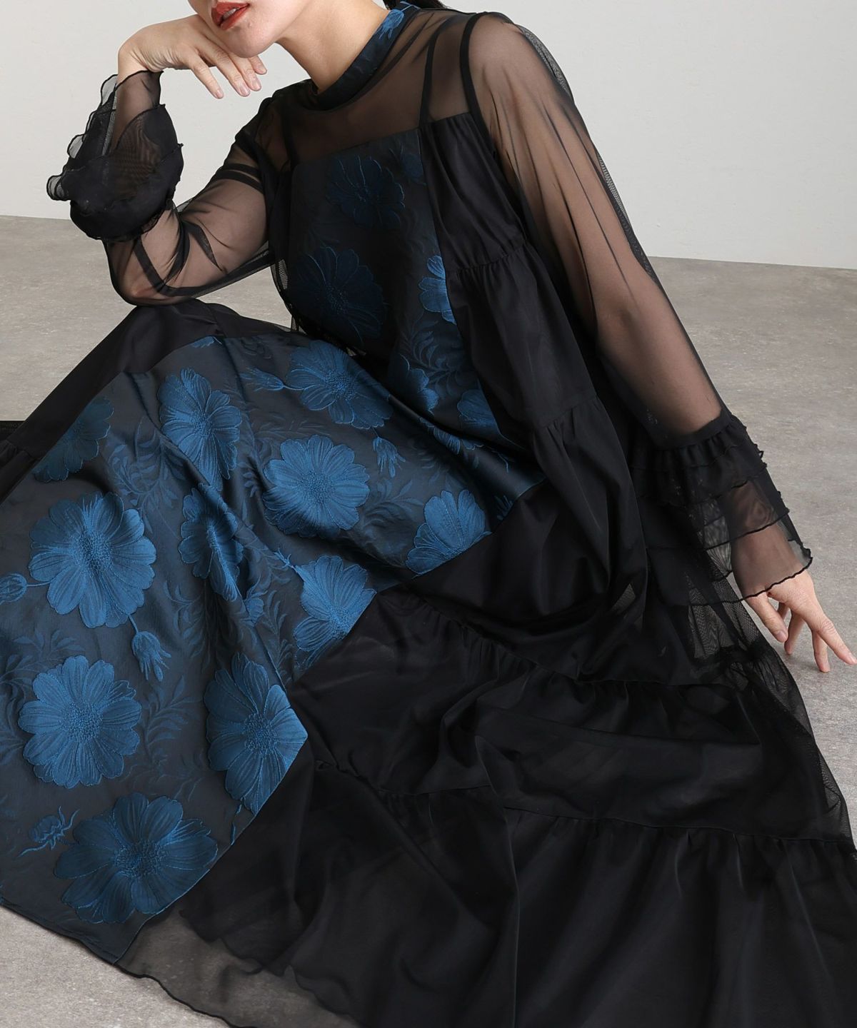 ヴィンテージ風の刺繍でフェミニンな印象に フラワー刺繍チュールドレス