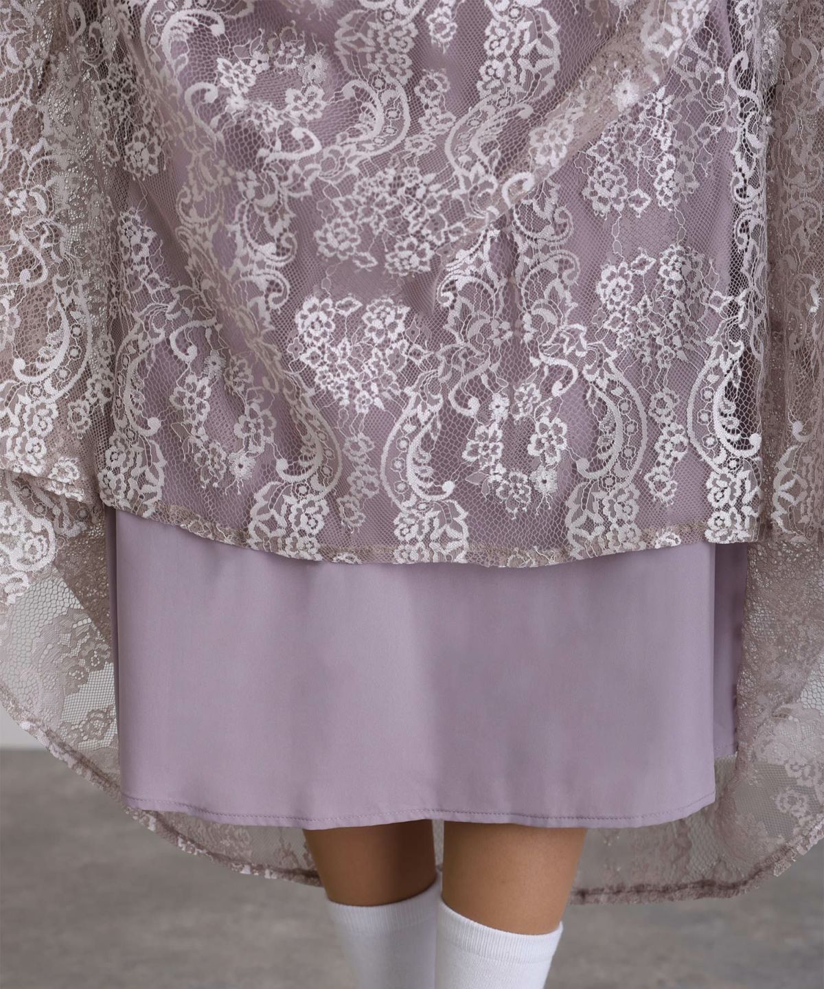 Aライン×透け感レース ジレレイヤード風レースワンピース