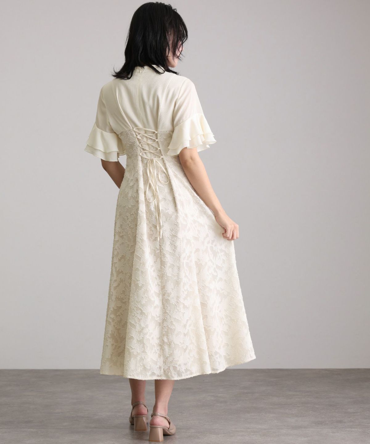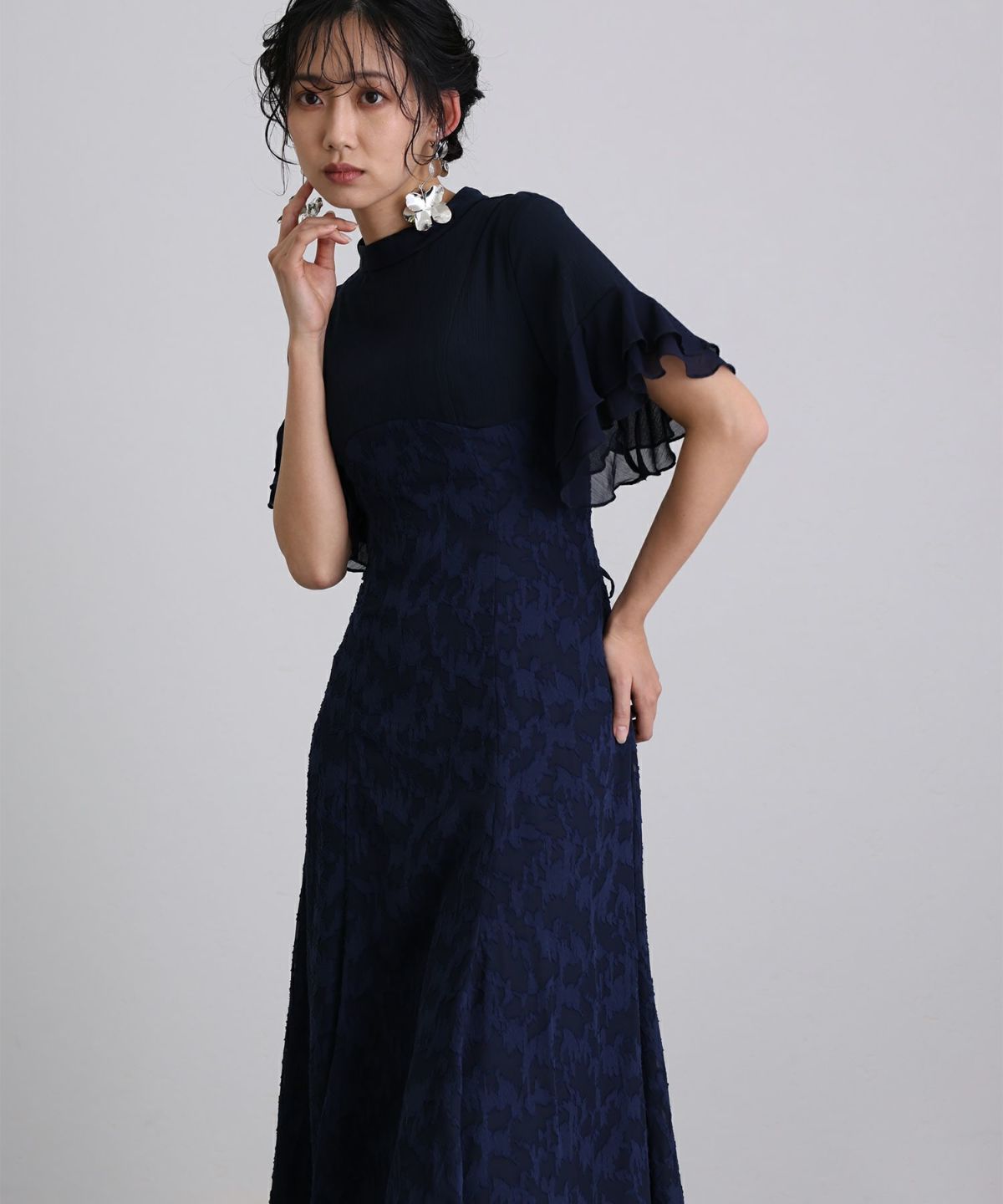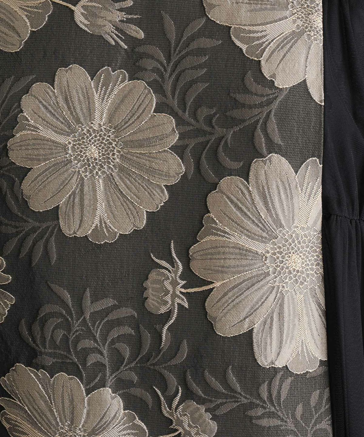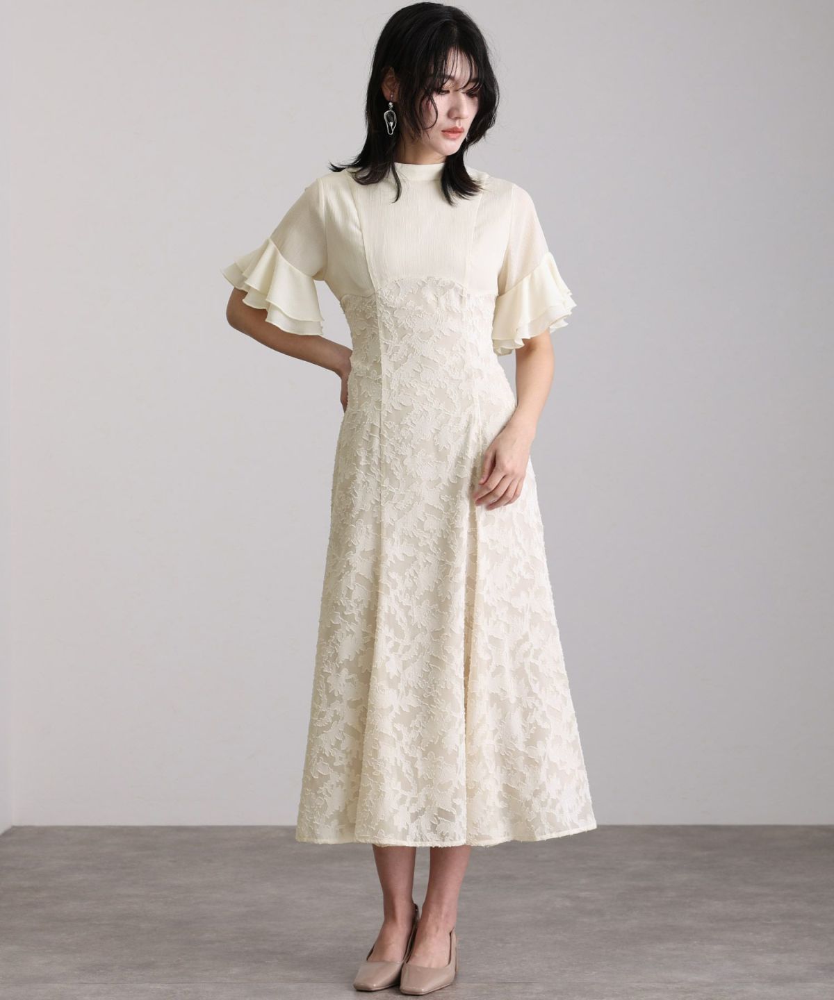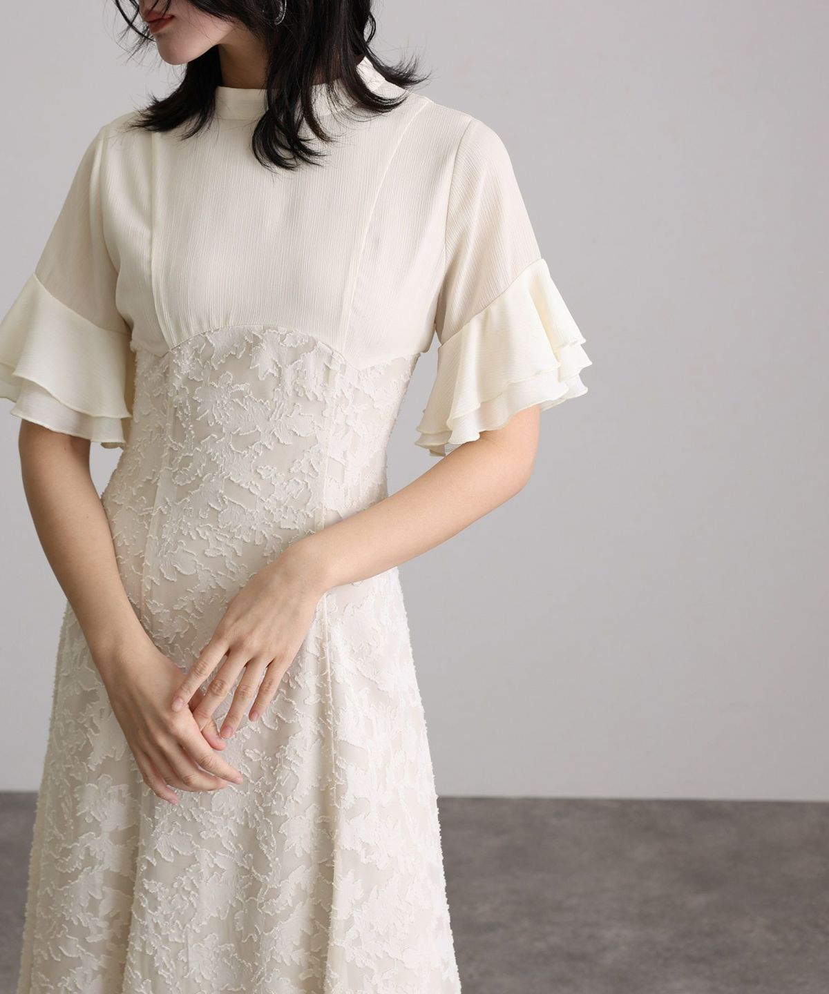 ジャガード素材×楊柳シフォンミックス ジャガードフレアドレス