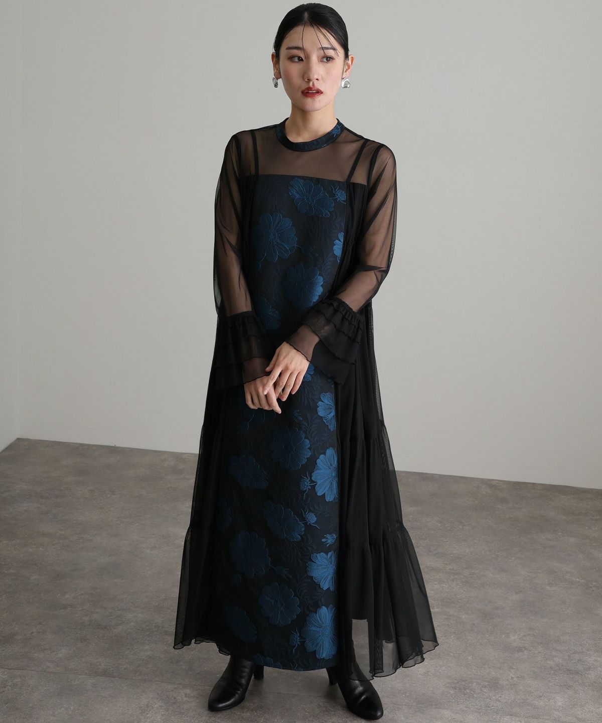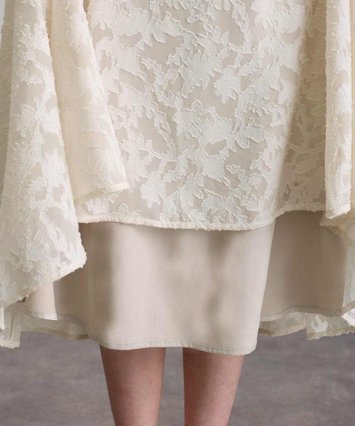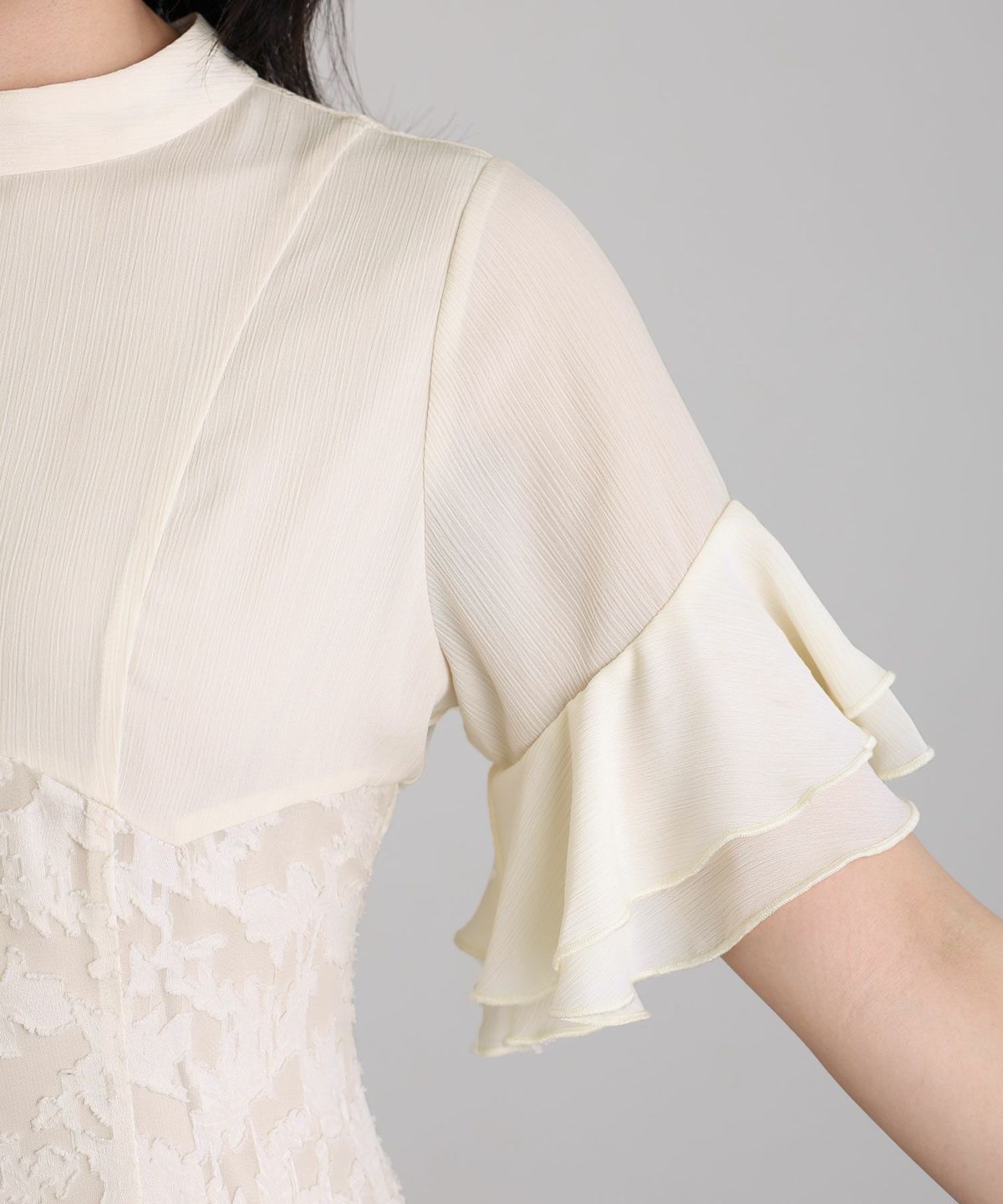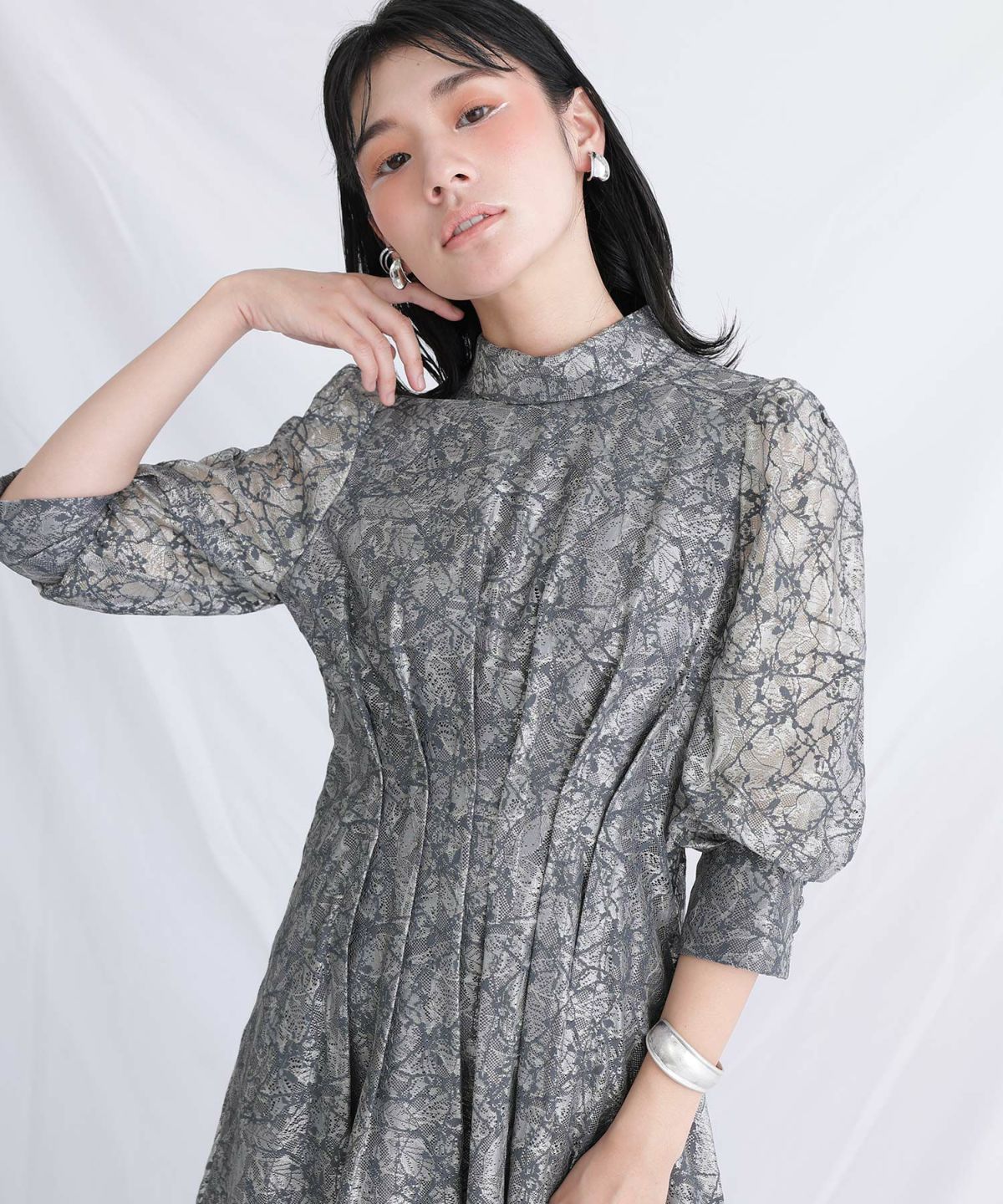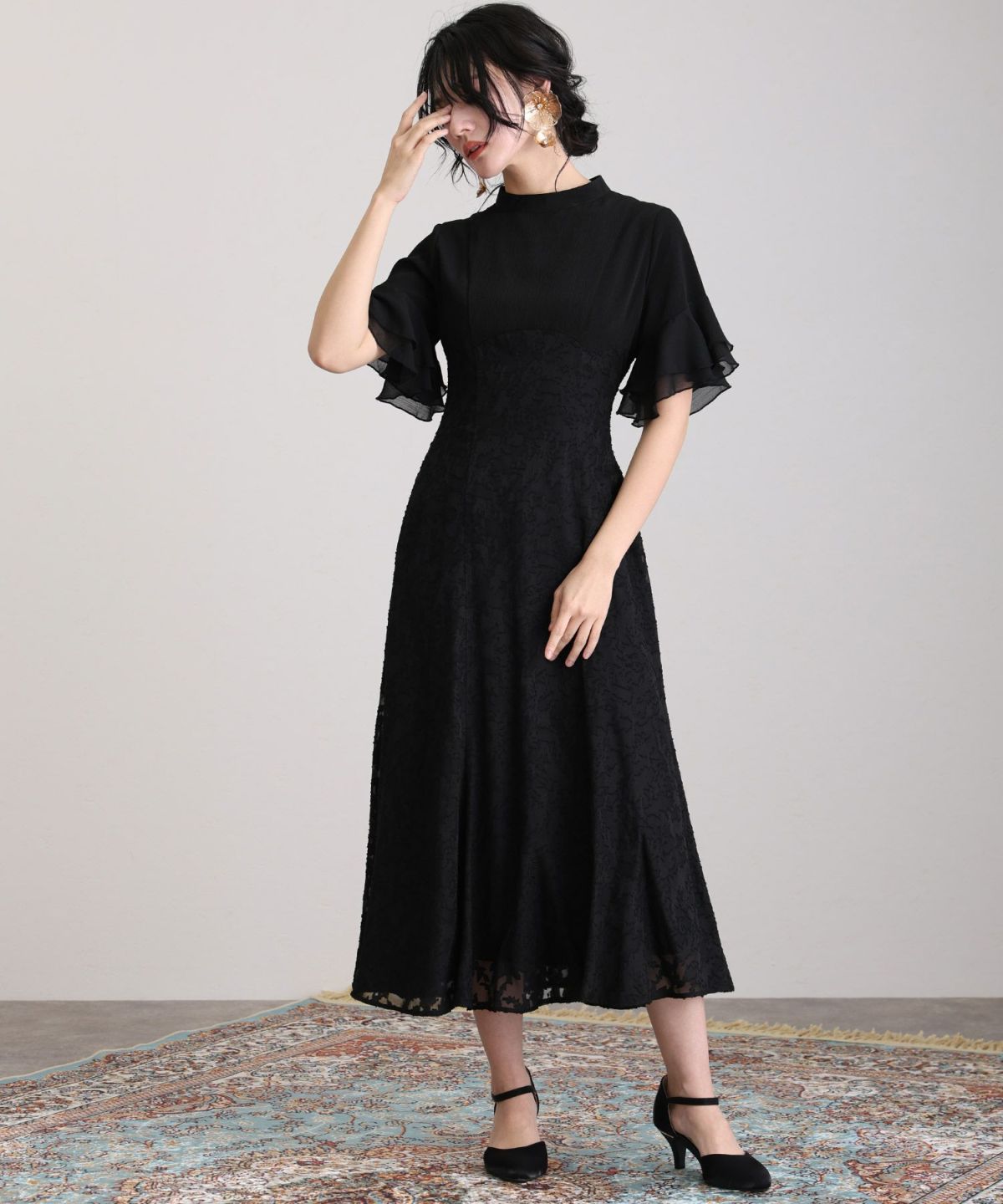 ジャガード素材×楊柳シフォンミックス ジャガードフレアドレス