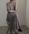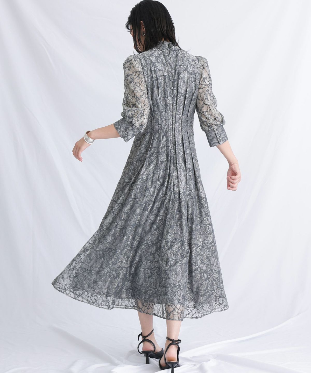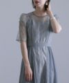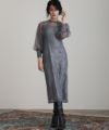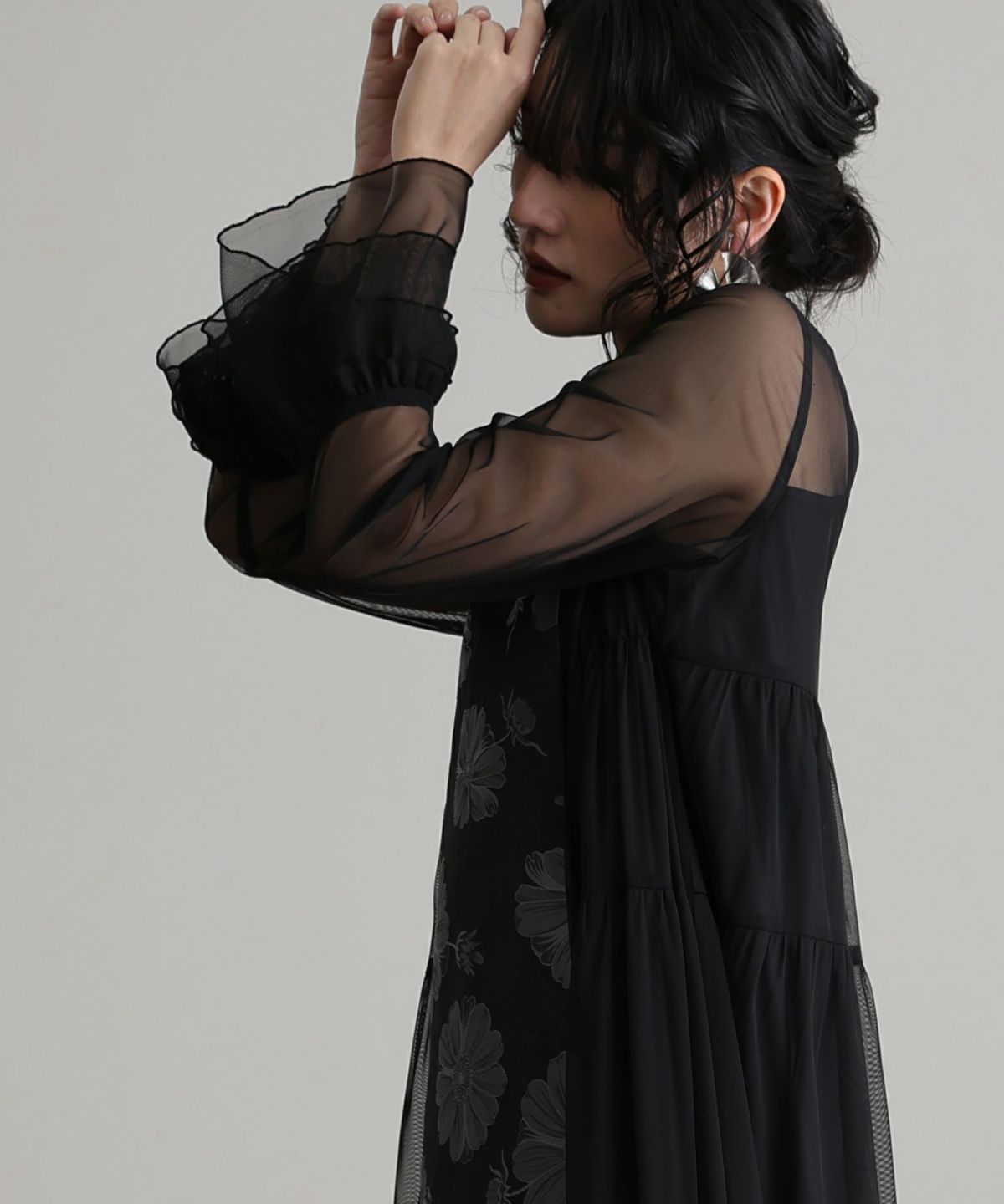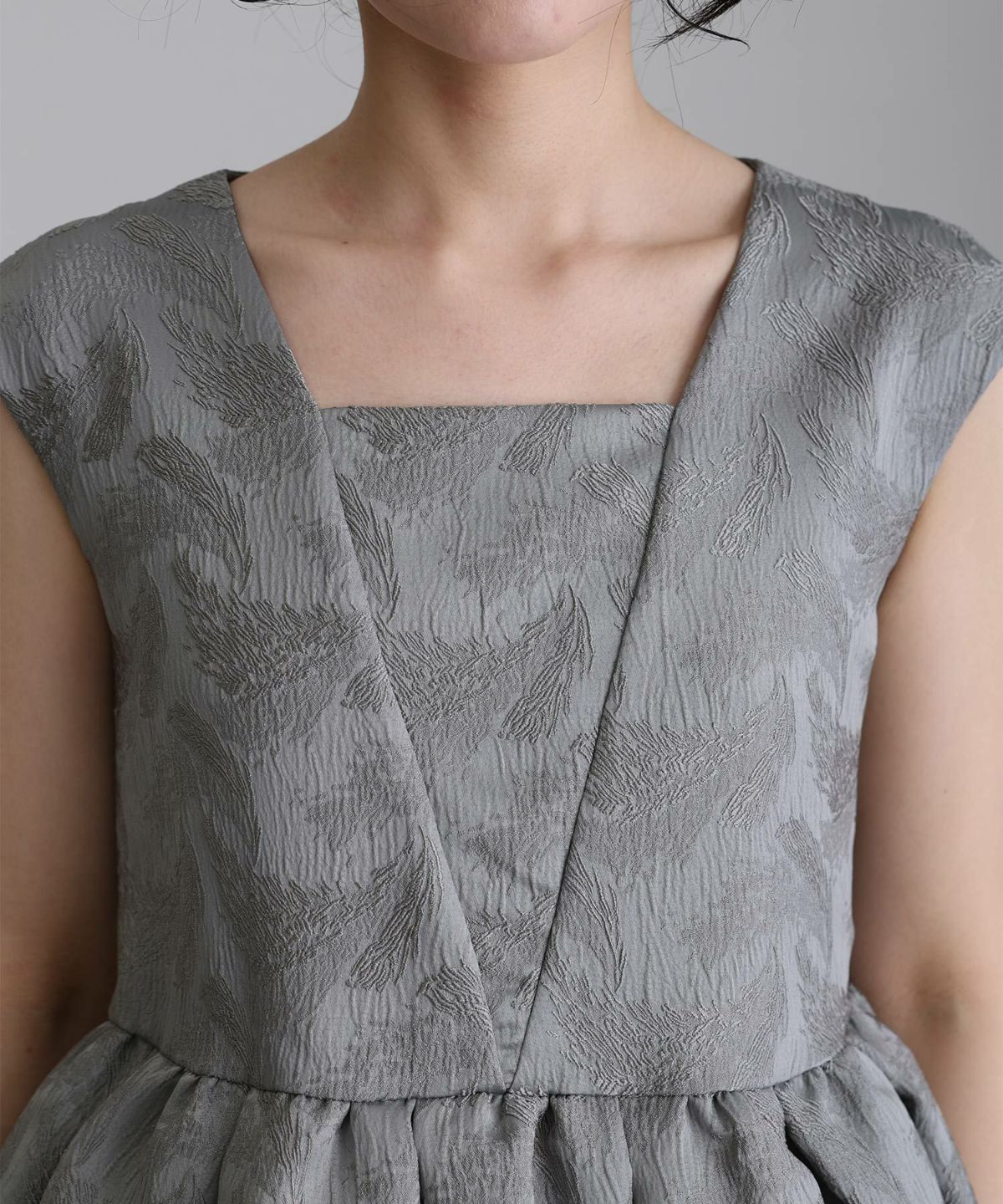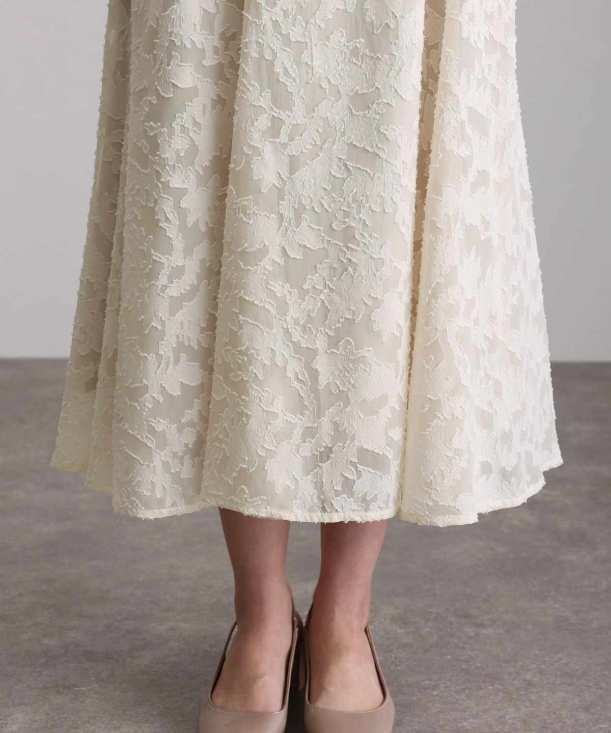 ジャガード素材×楊柳シフォンミックス ジャガードフレアドレス