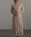 ニュアンスカラーがおしゃれでこなれた雰囲気に フラワーレース×チュールベロアリボンワンピース