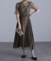 光沢感レースがシックな個性派ドレス バックリボンギャザースリーブワンピース