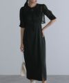 ギャザースリーブが上品 ギャザースリーブウエスト切替バックリボンワンピース