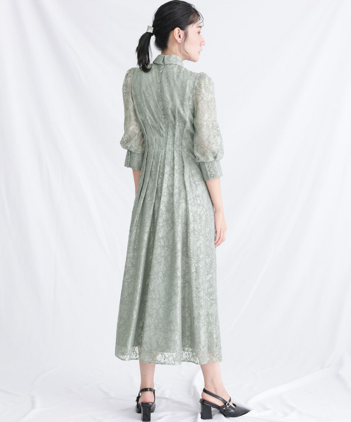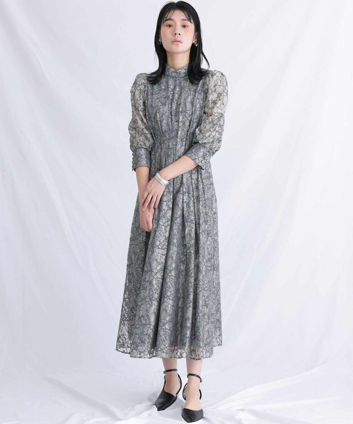 花柄チュール×マーメイドが大人可愛いワンピース レトロマーメイドレーススタンドカラーワンピース