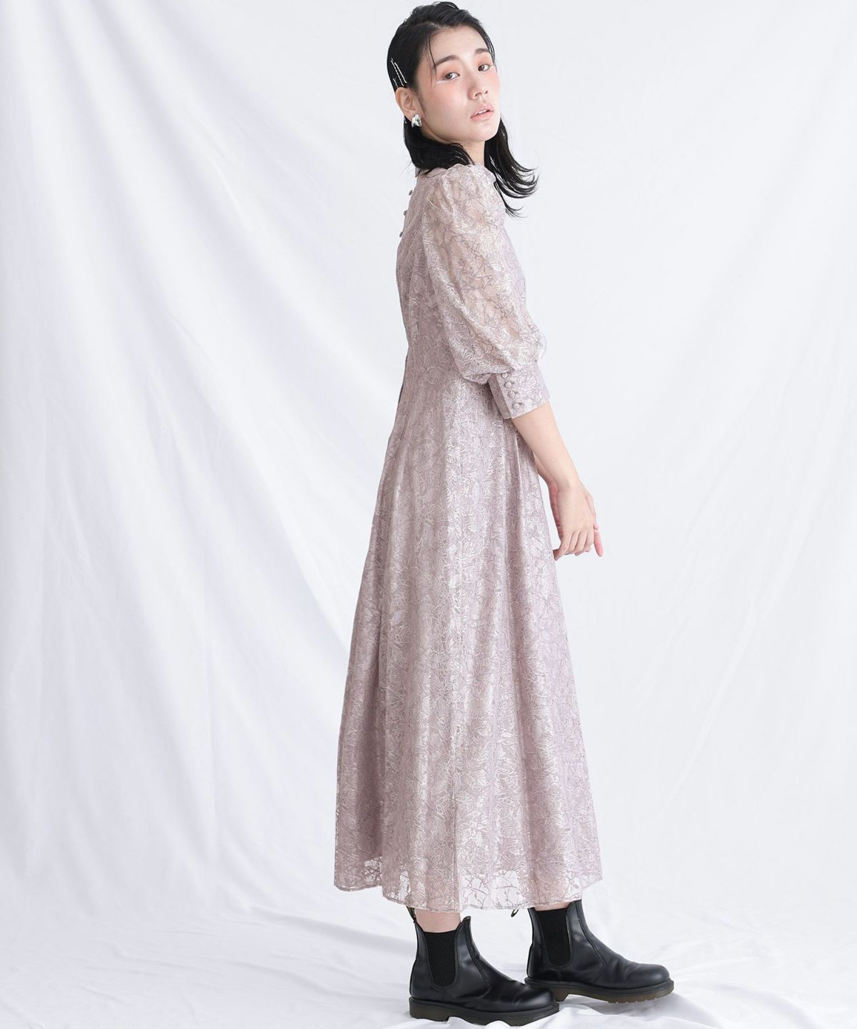繊細な総レースが華やか ボリュームスリーブ総レースワンピース
