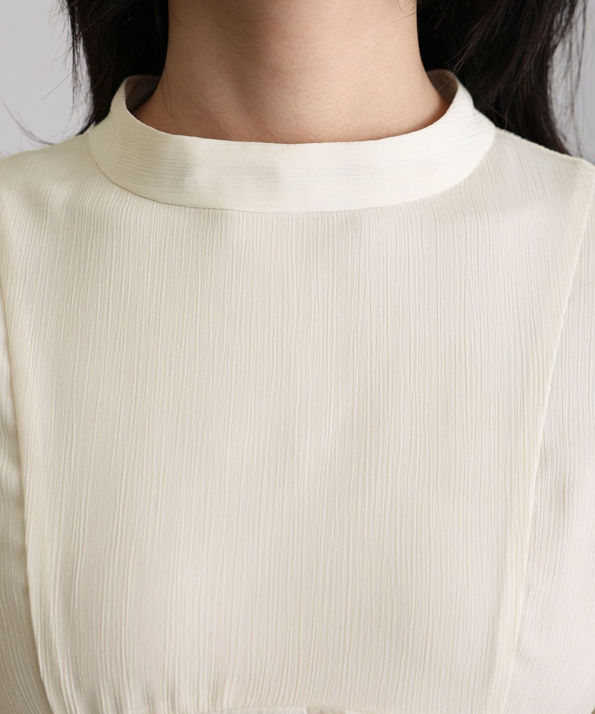 縦のラインを強調するタックデザインがオシャレ タックデザインハイネックワンピース