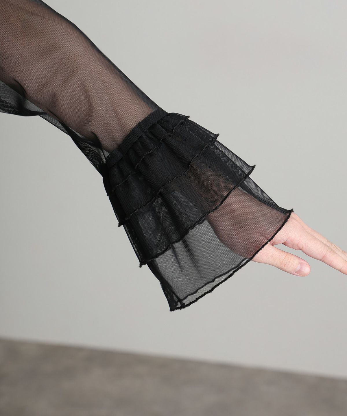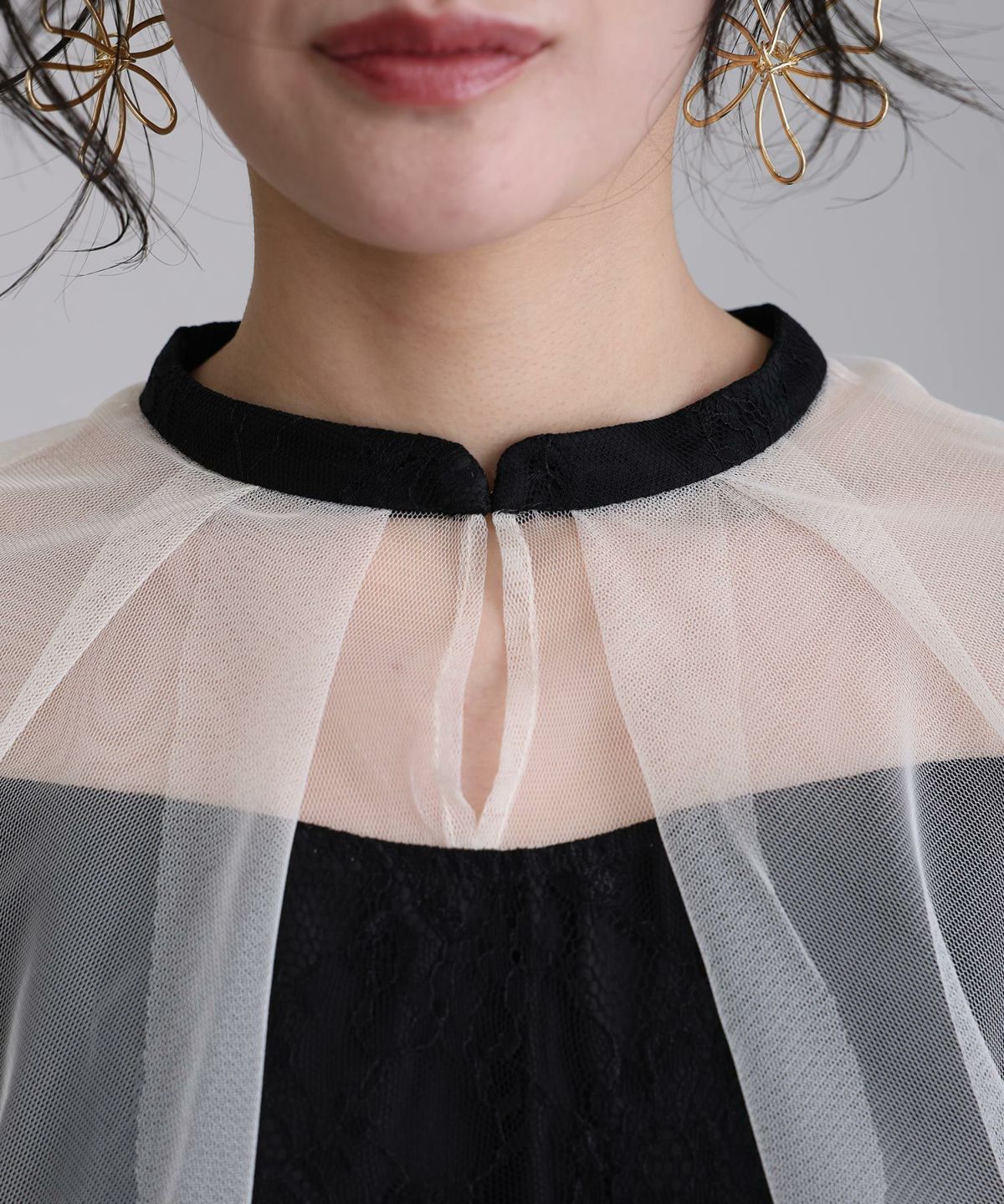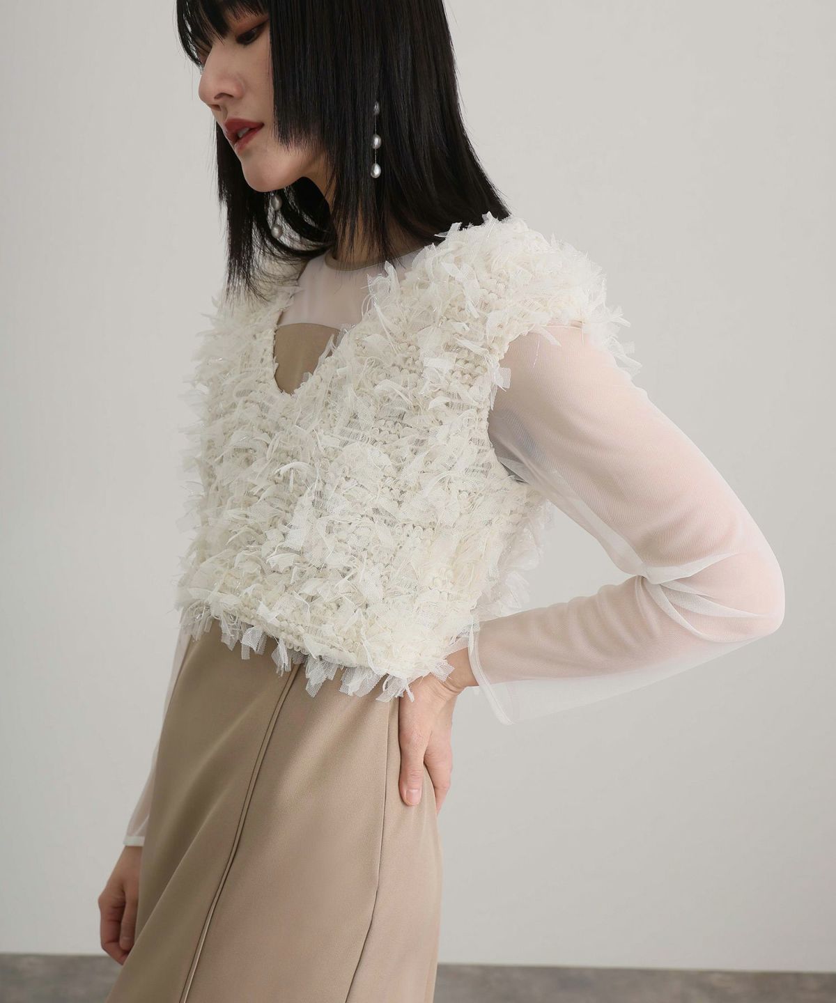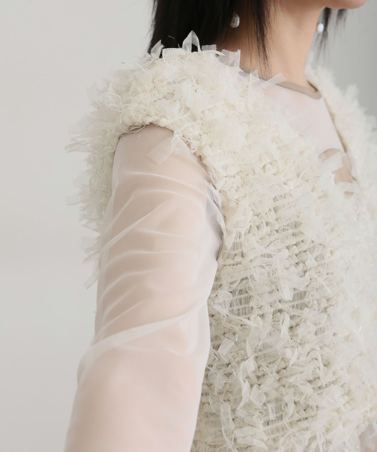デザイン性のあるチュールジャケット ボクシーレイヤードチュールジャケット