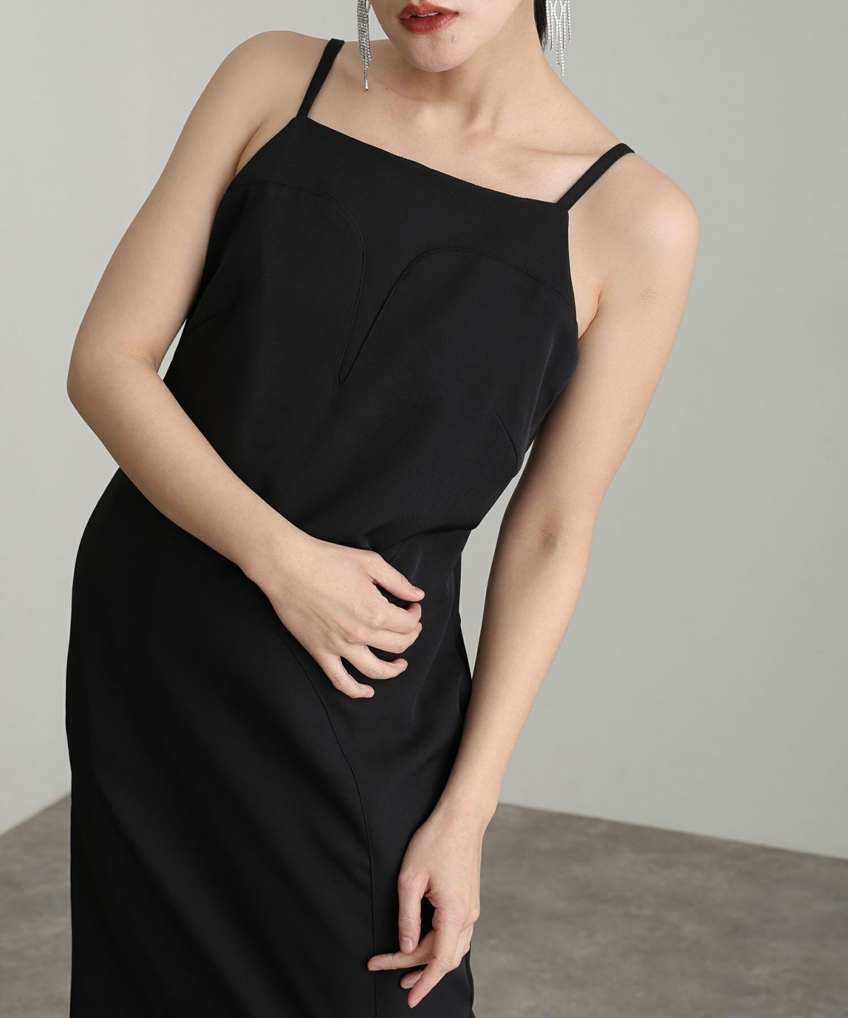 マーメイドシルエットが女性らしい ネックラインパイピングマーメイドワンピース