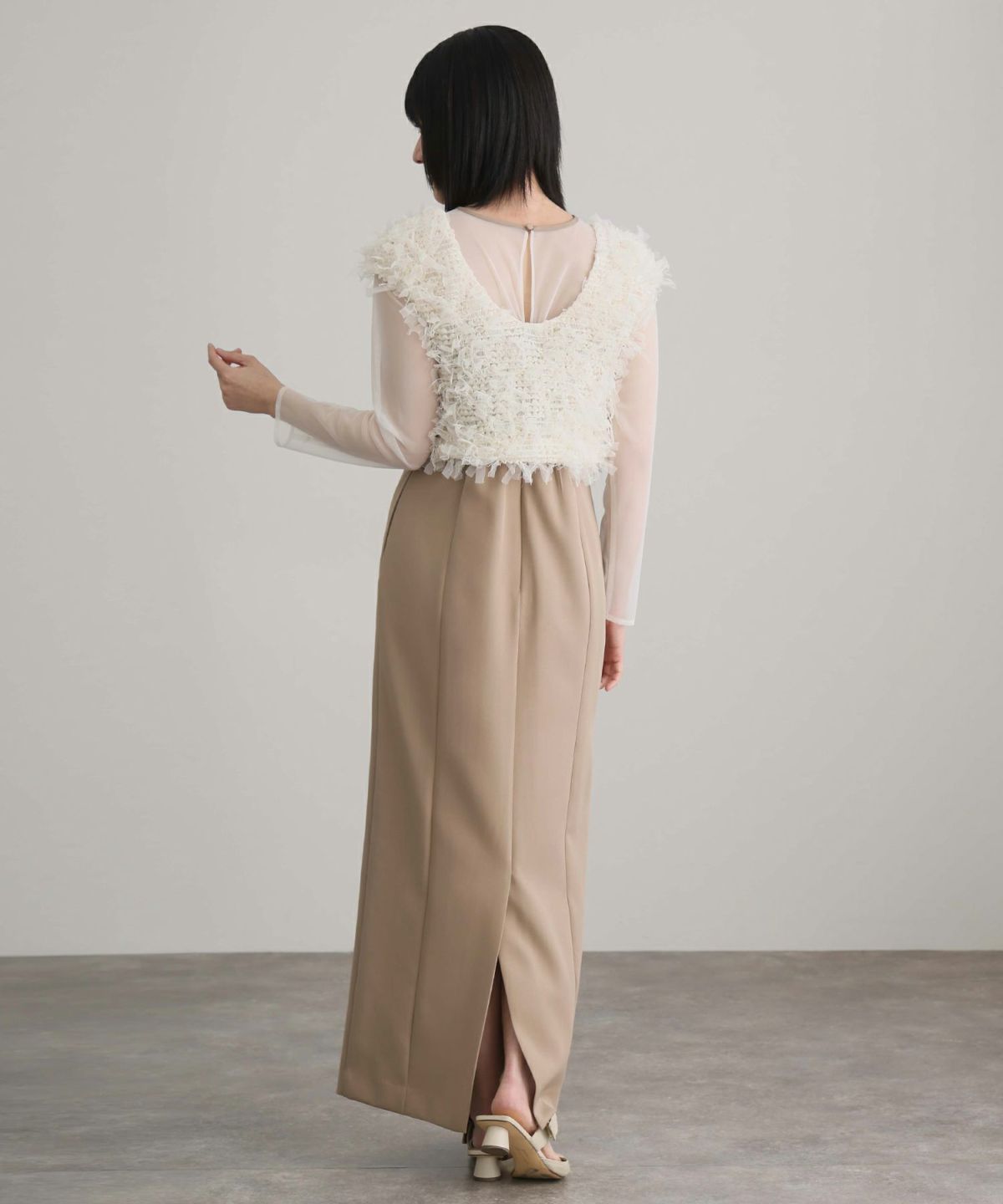 ソフトマーメイドのワンピースで女性らしい印象に シアージャケットワンピースセットアップ