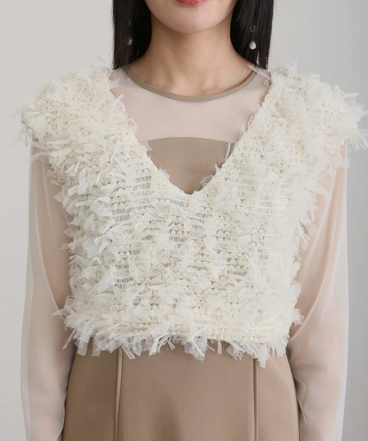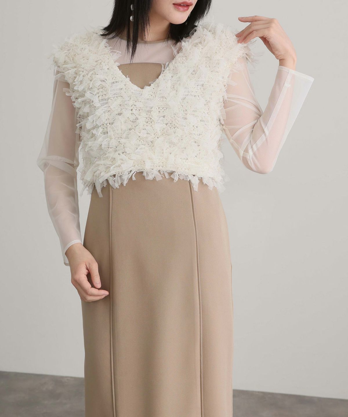 華やかなチュールベストがポイント ワンピース&前開きチュールベスト