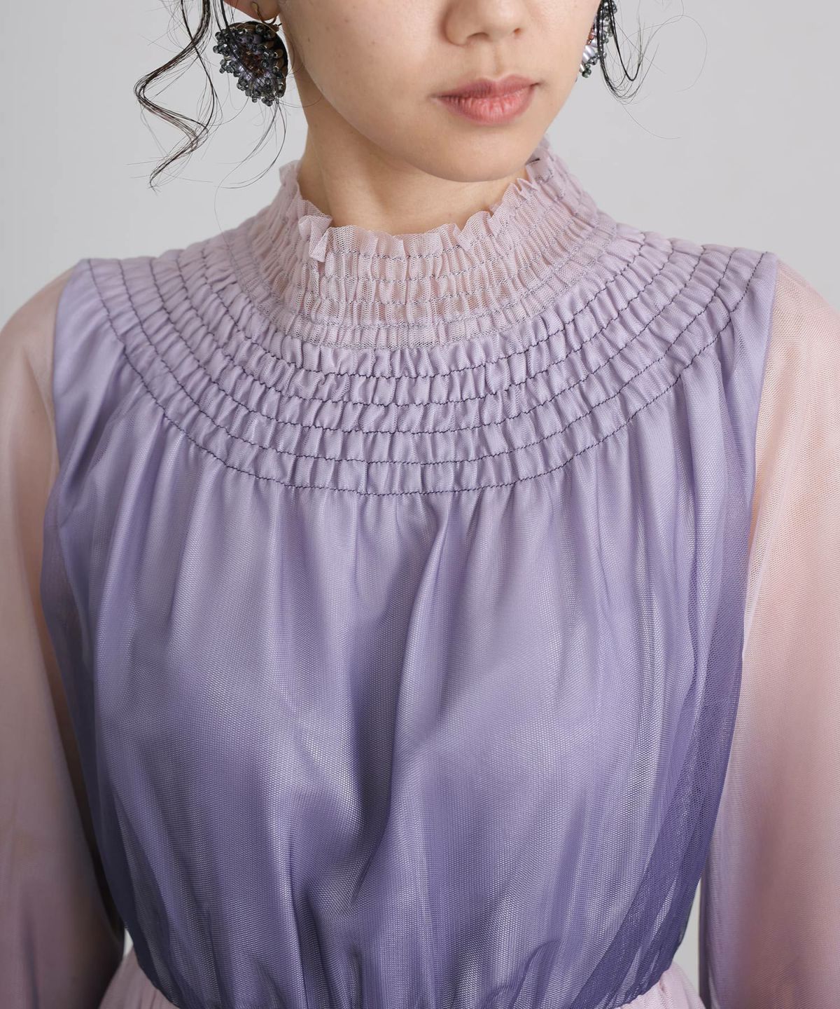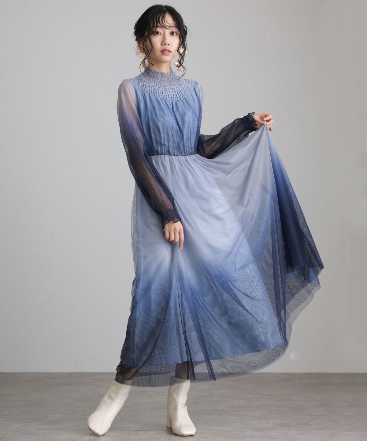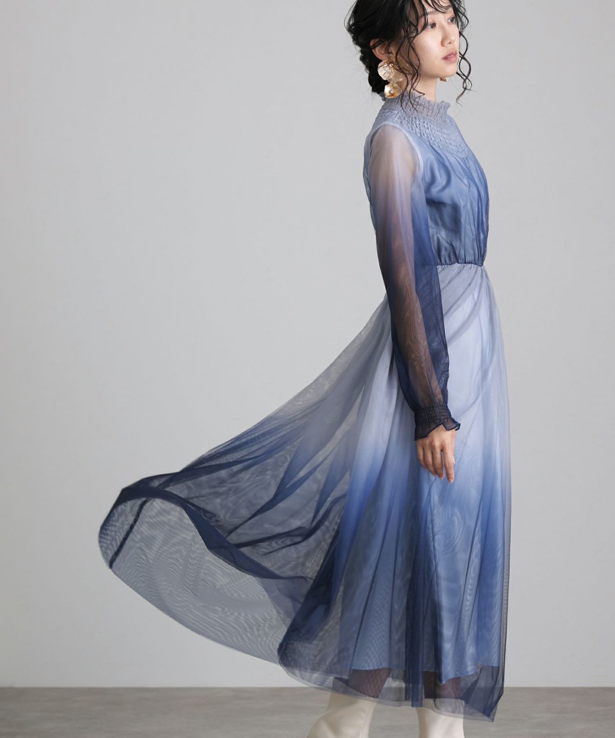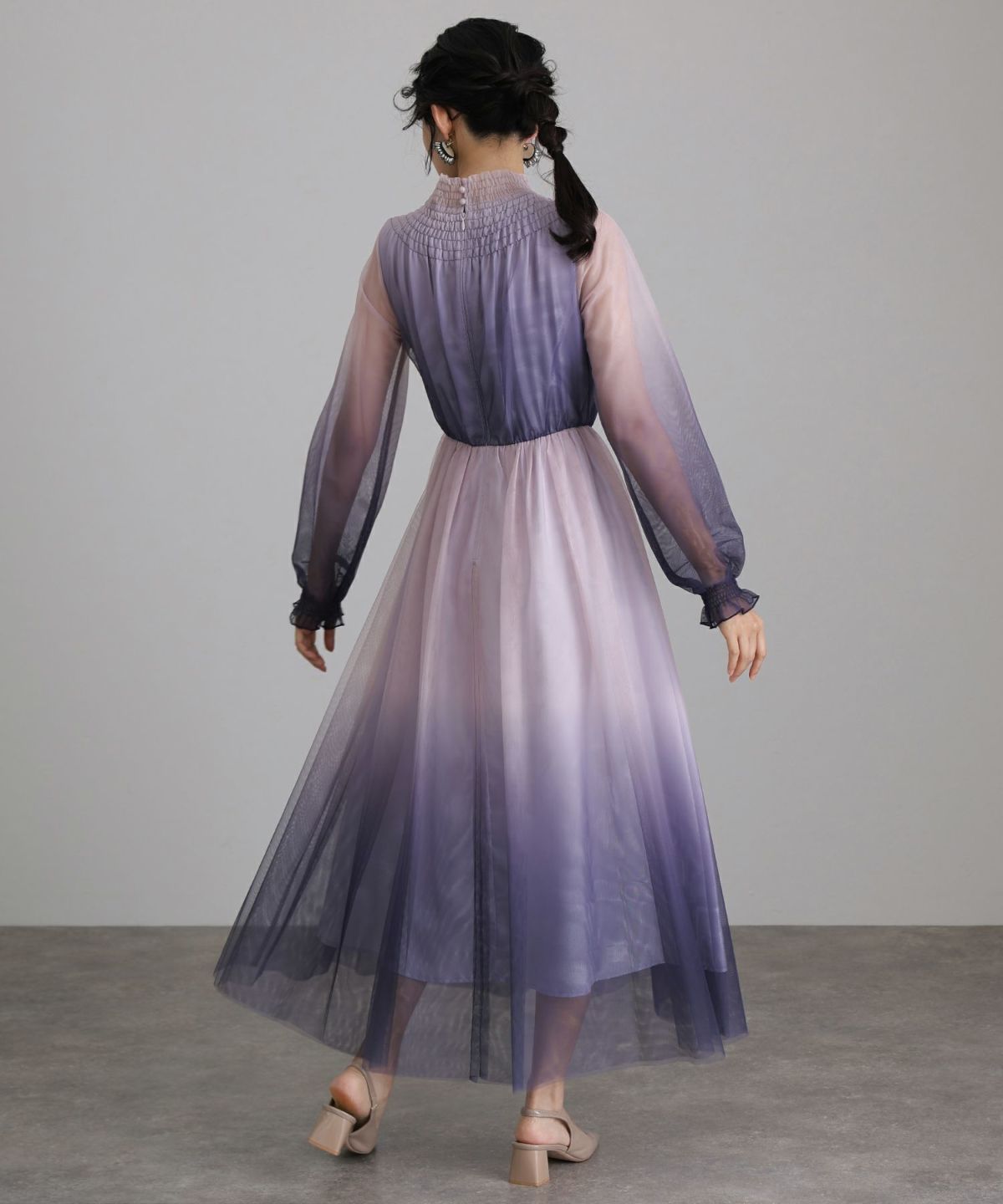 繊細グラデーション×エアリーシルエット グラデーションチュールワンピース