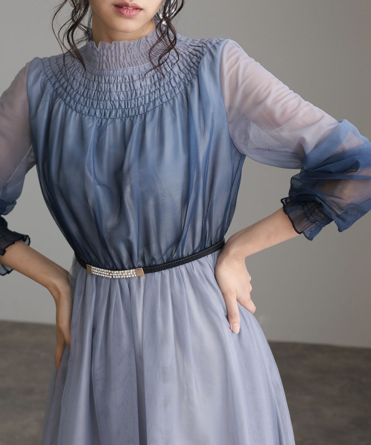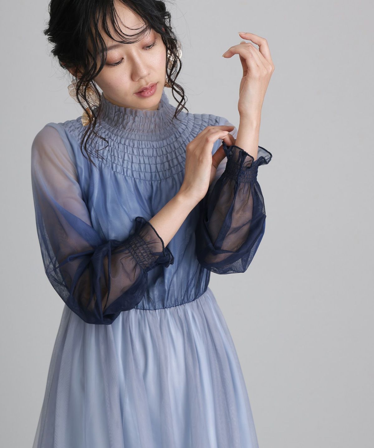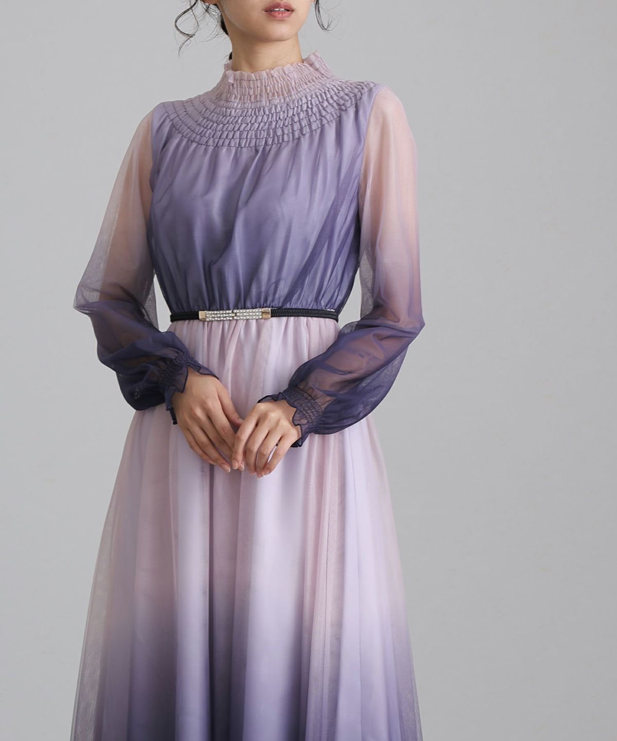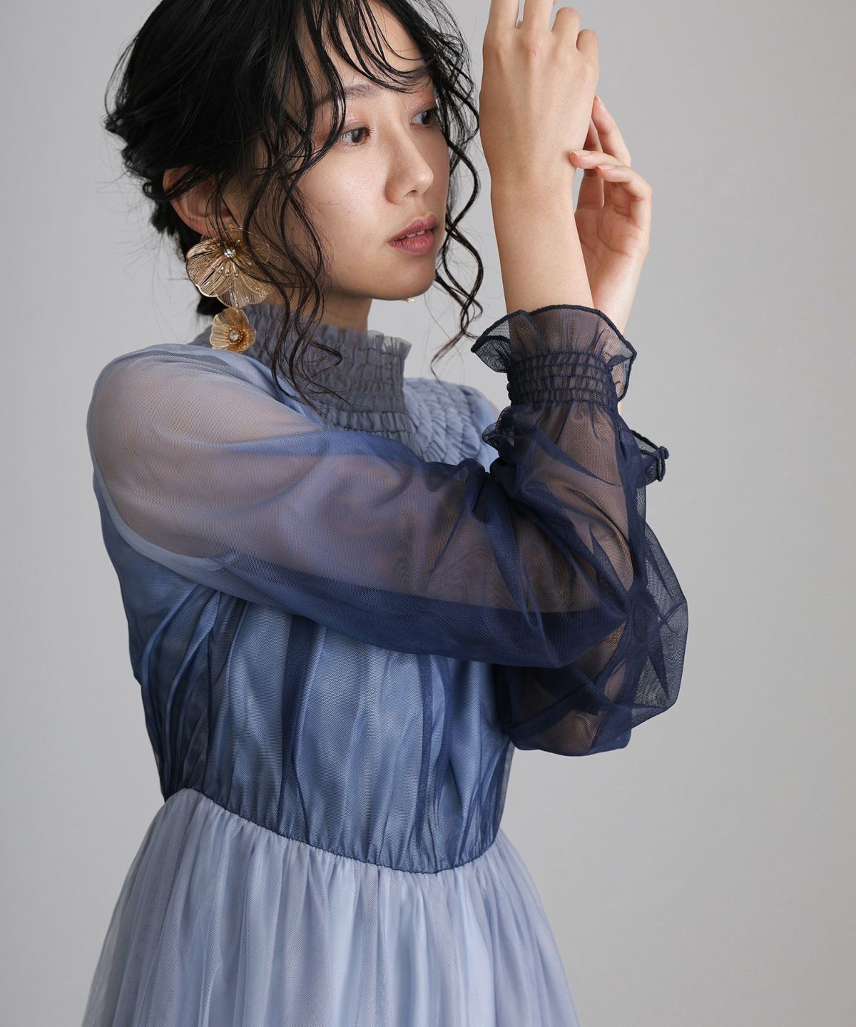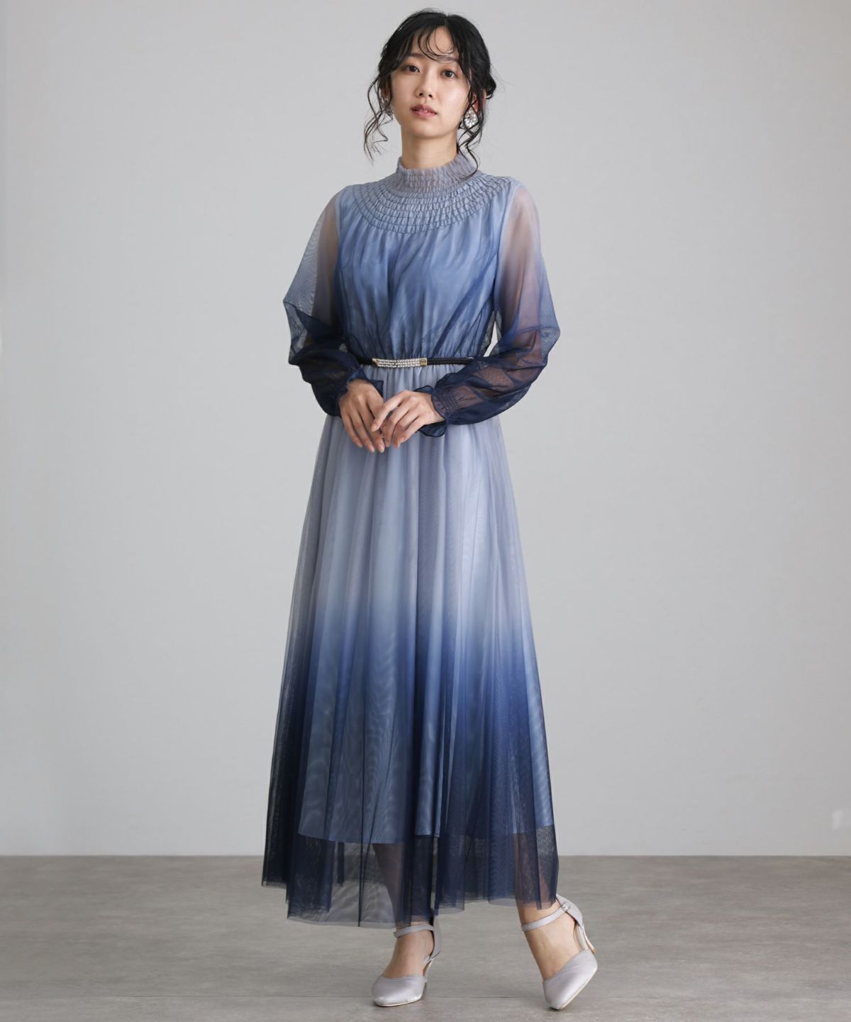 繊細グラデーション×エアリーシルエット グラデーションチュールワンピース