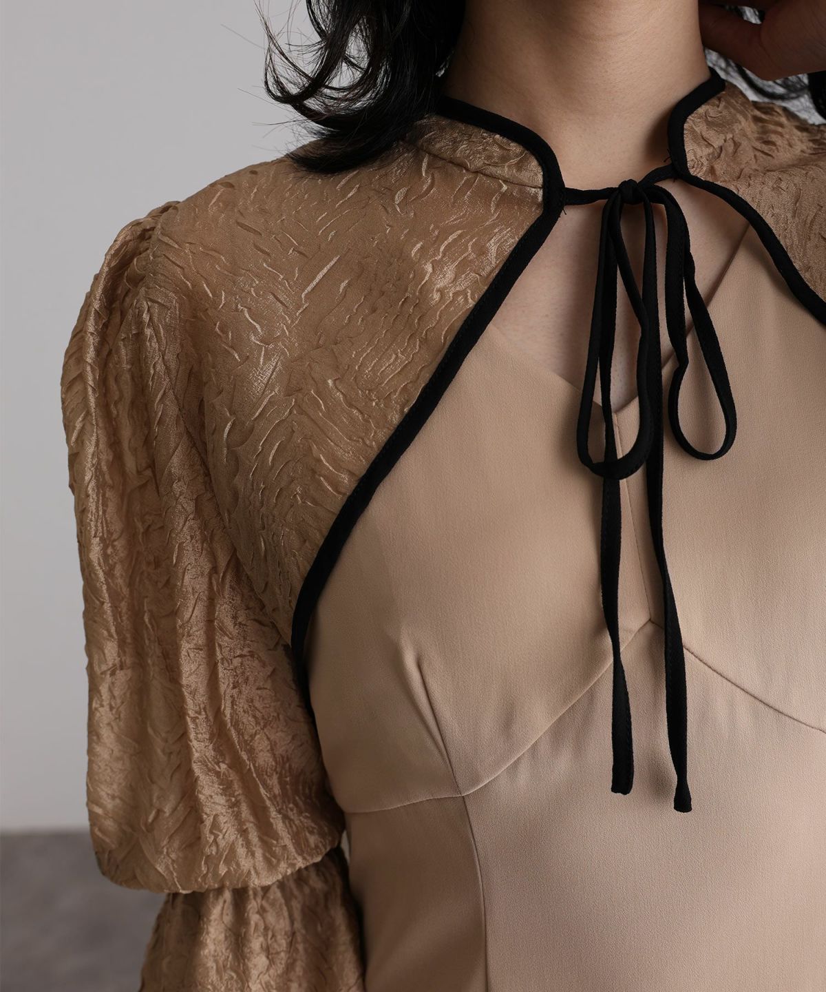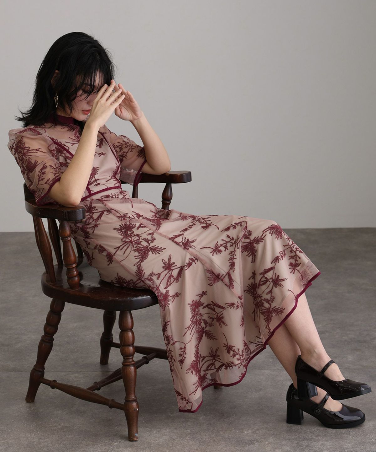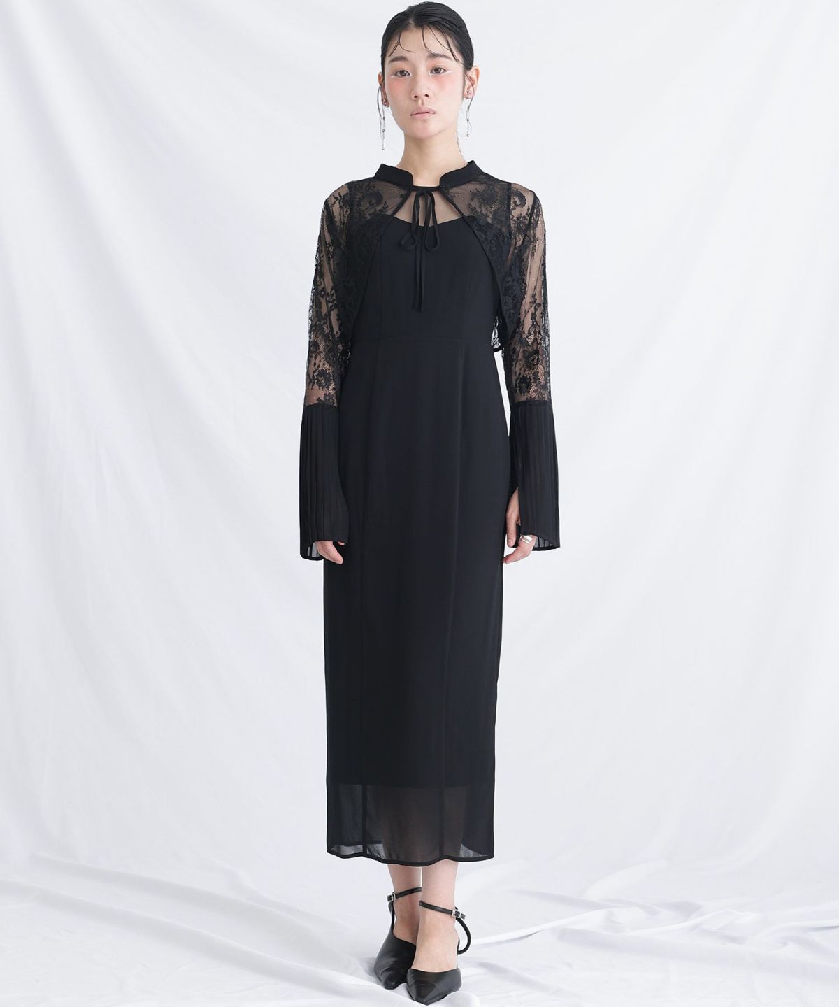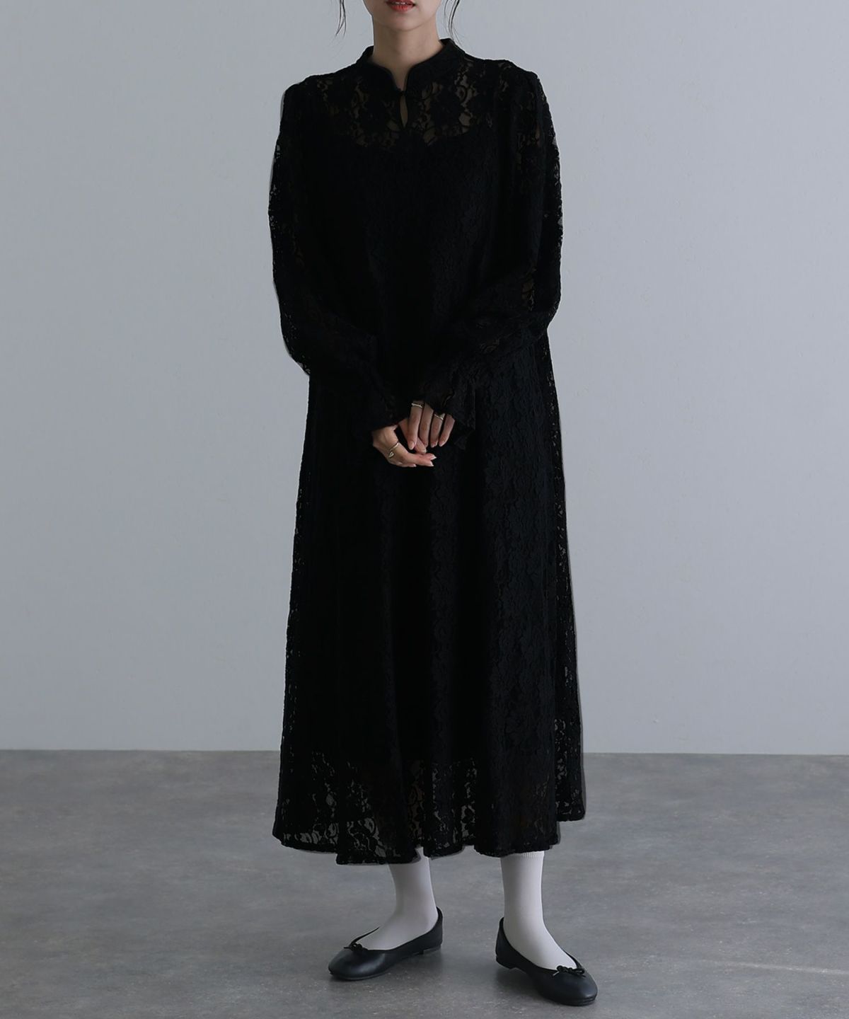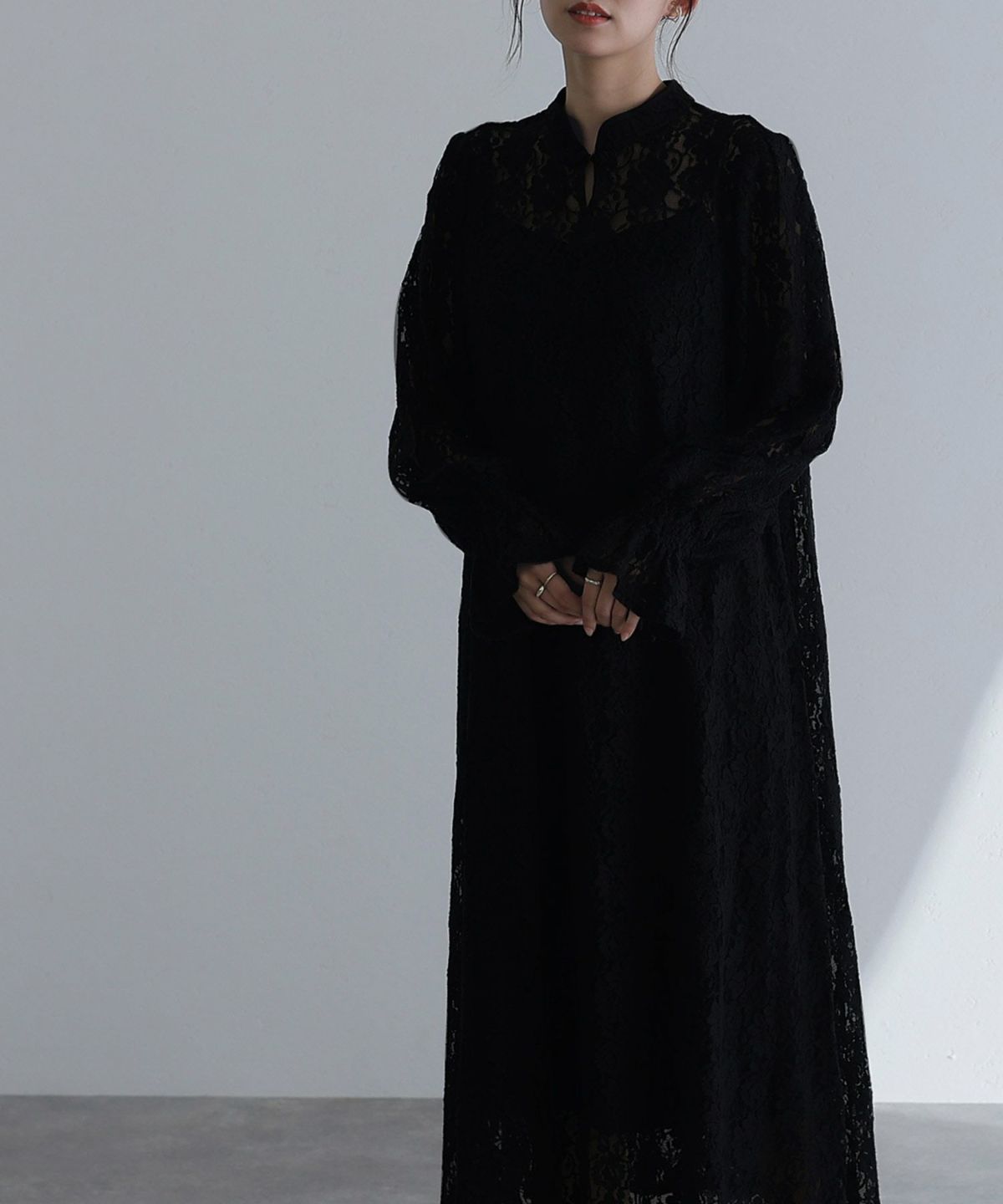 甘くなり過ぎないエレガントなデザイン チャイナ風レース切替ワンピース