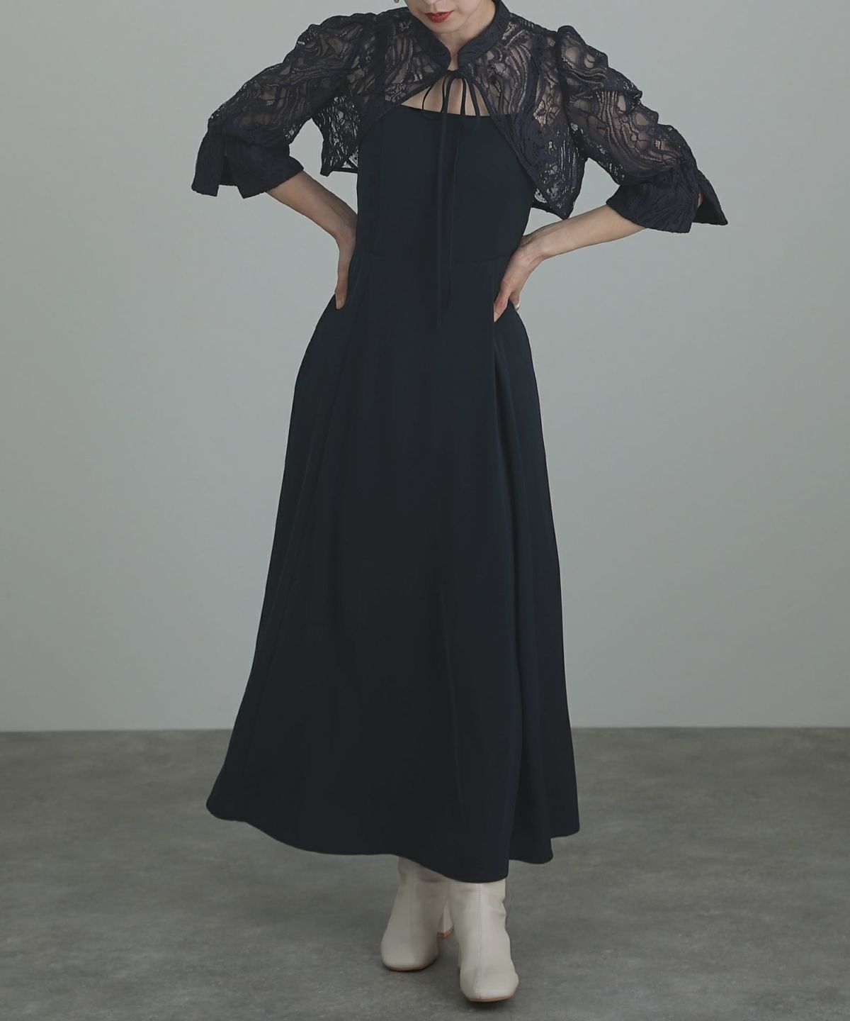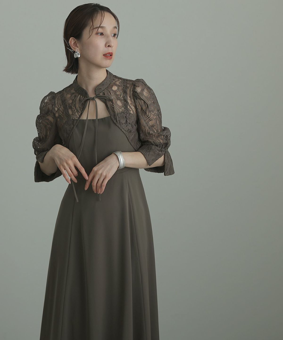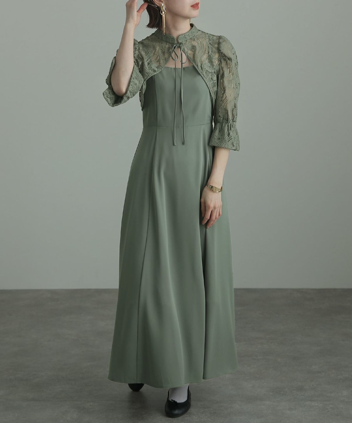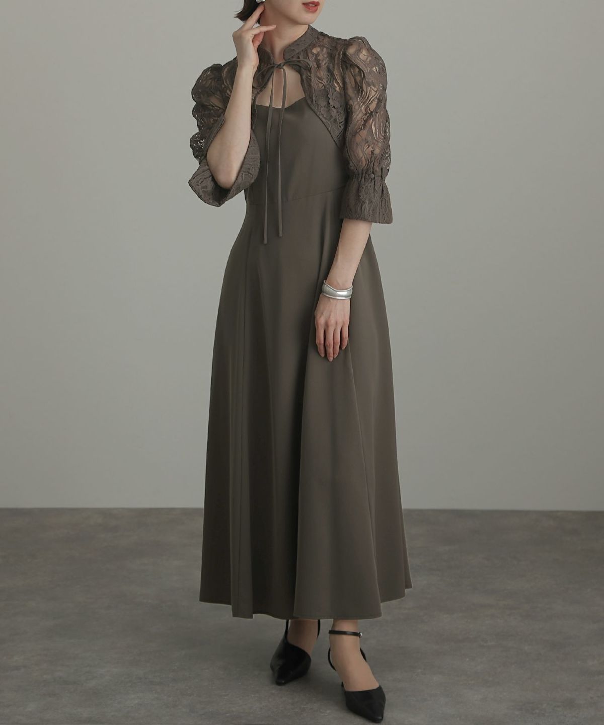 上品にゆったりと着れる 刺繍オーガンジージャケット付き2WAYワンピース