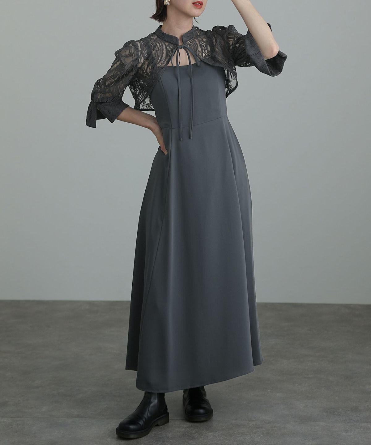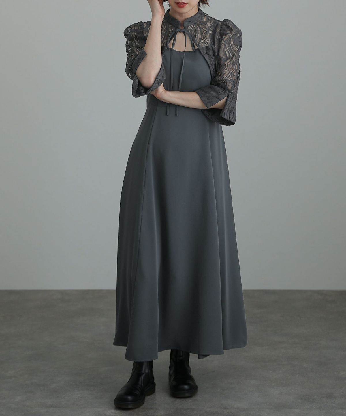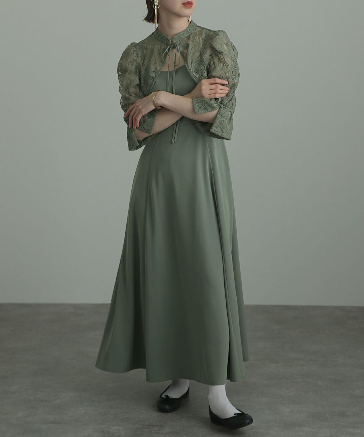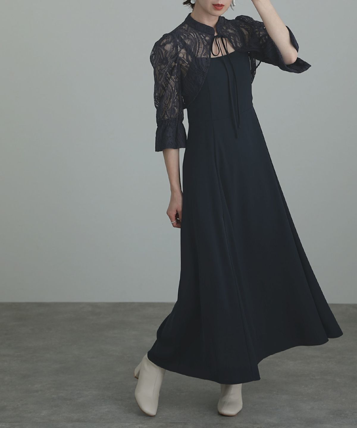 上品にゆったりと着れる 刺繍オーガンジージャケット付き2WAYワンピース