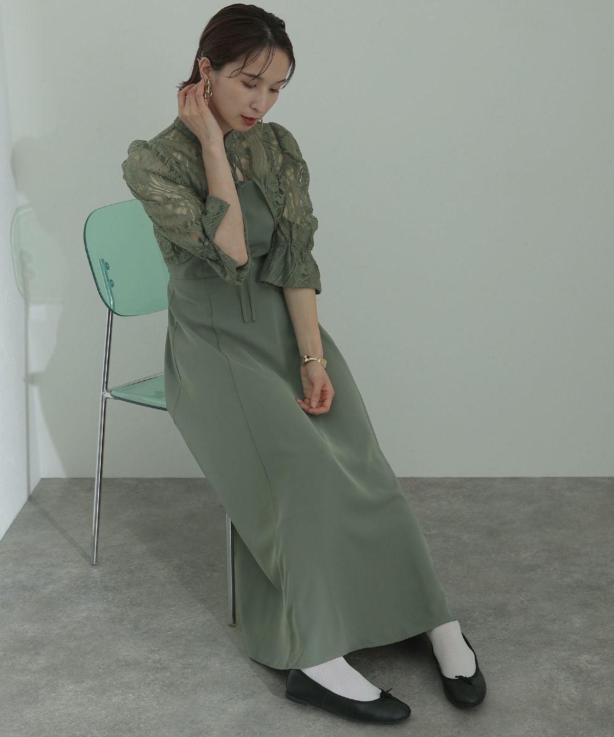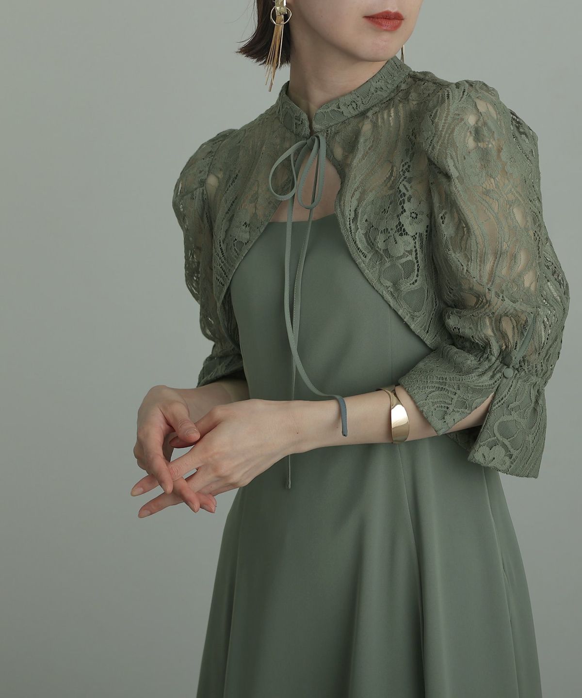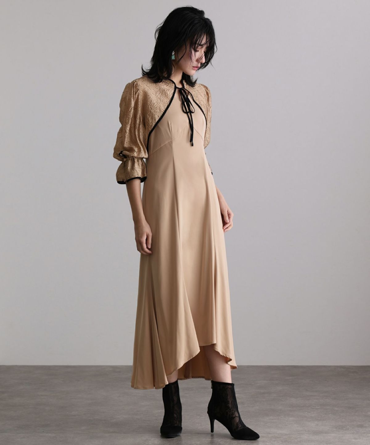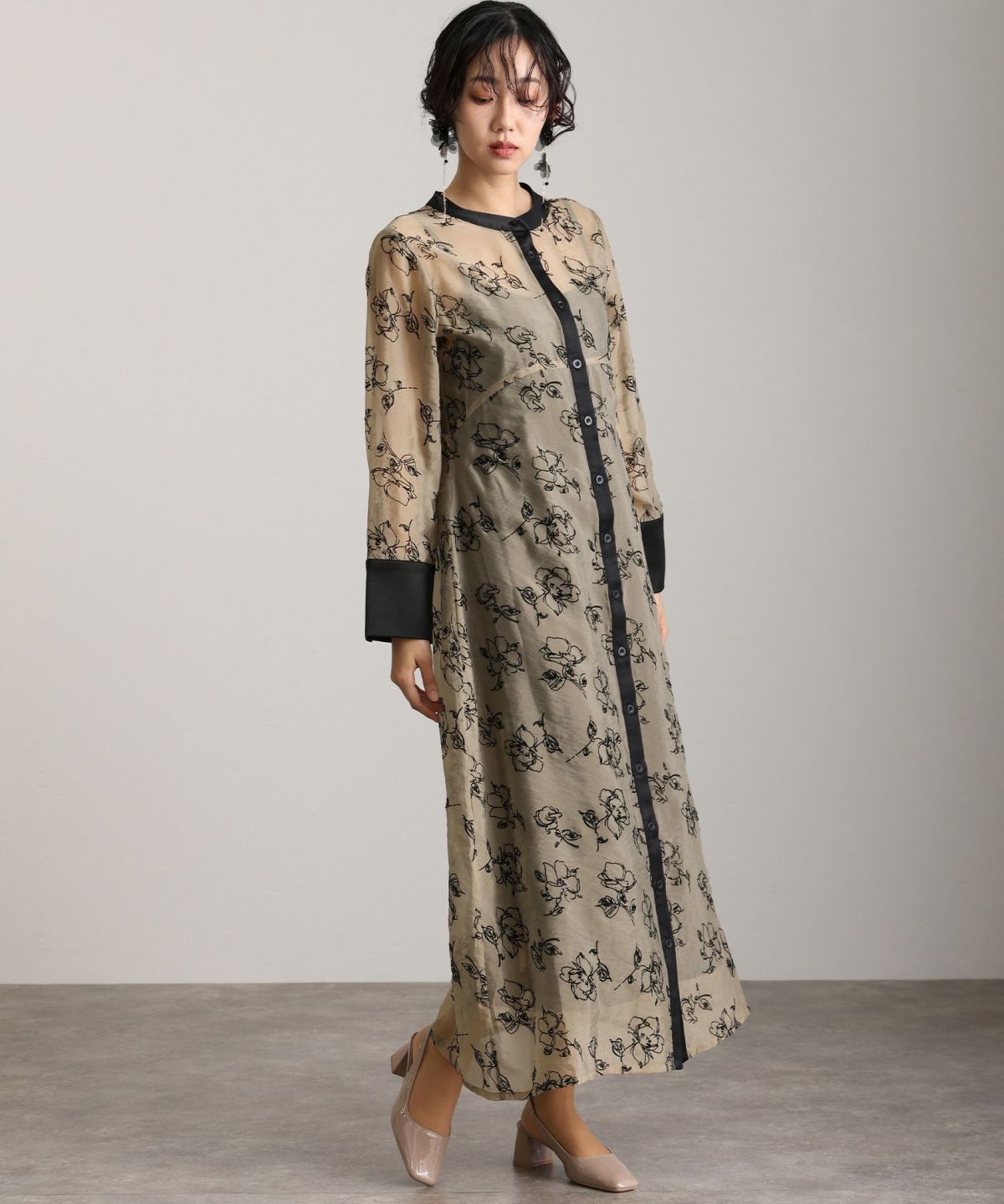 上品にゆったりと着れる 刺繍オーガンジージャケット付き2WAYワンピース