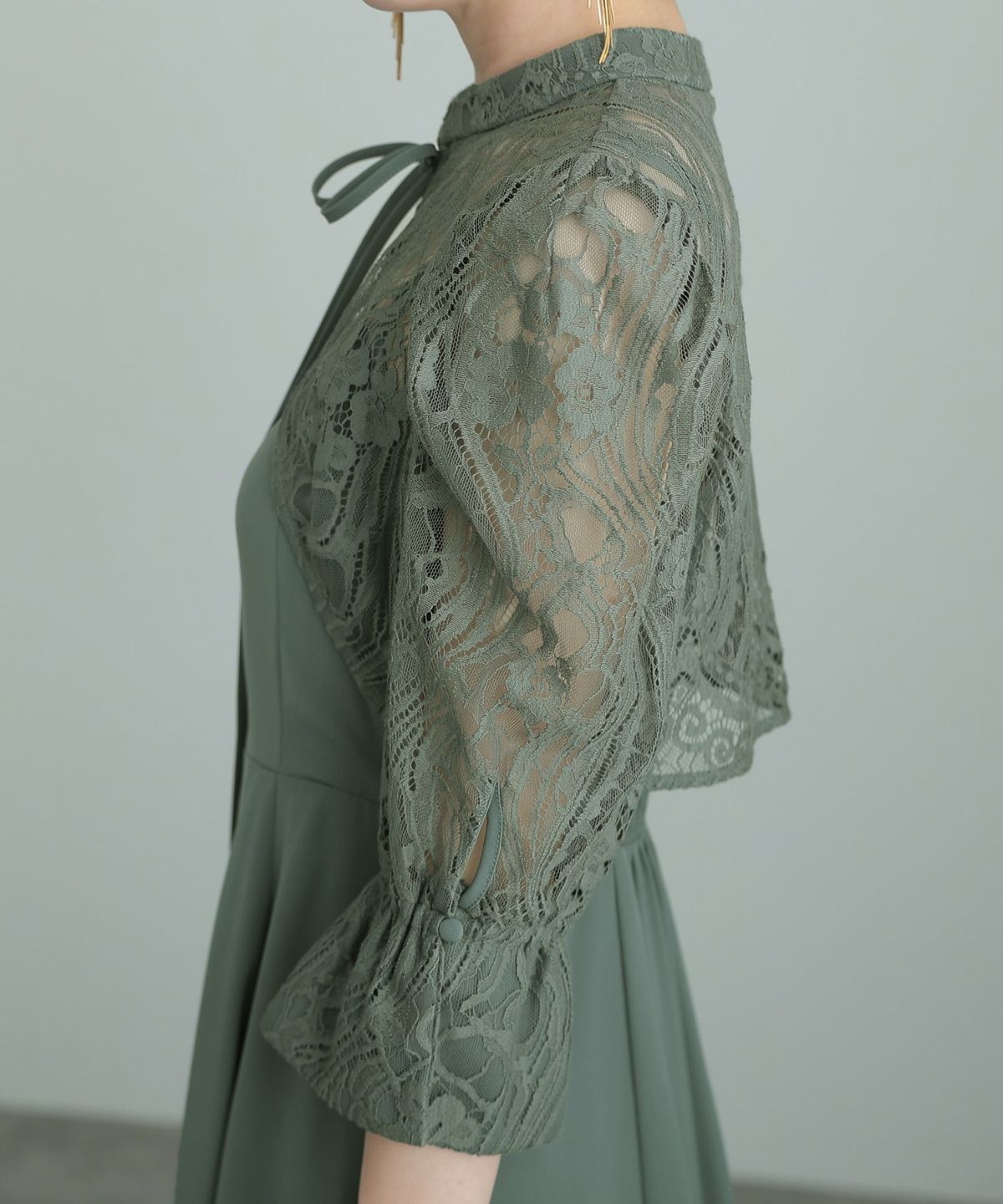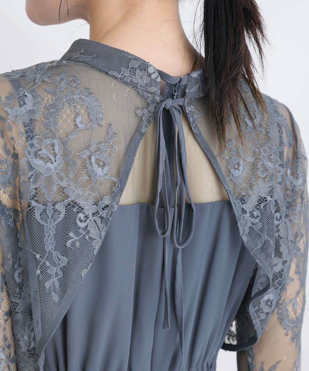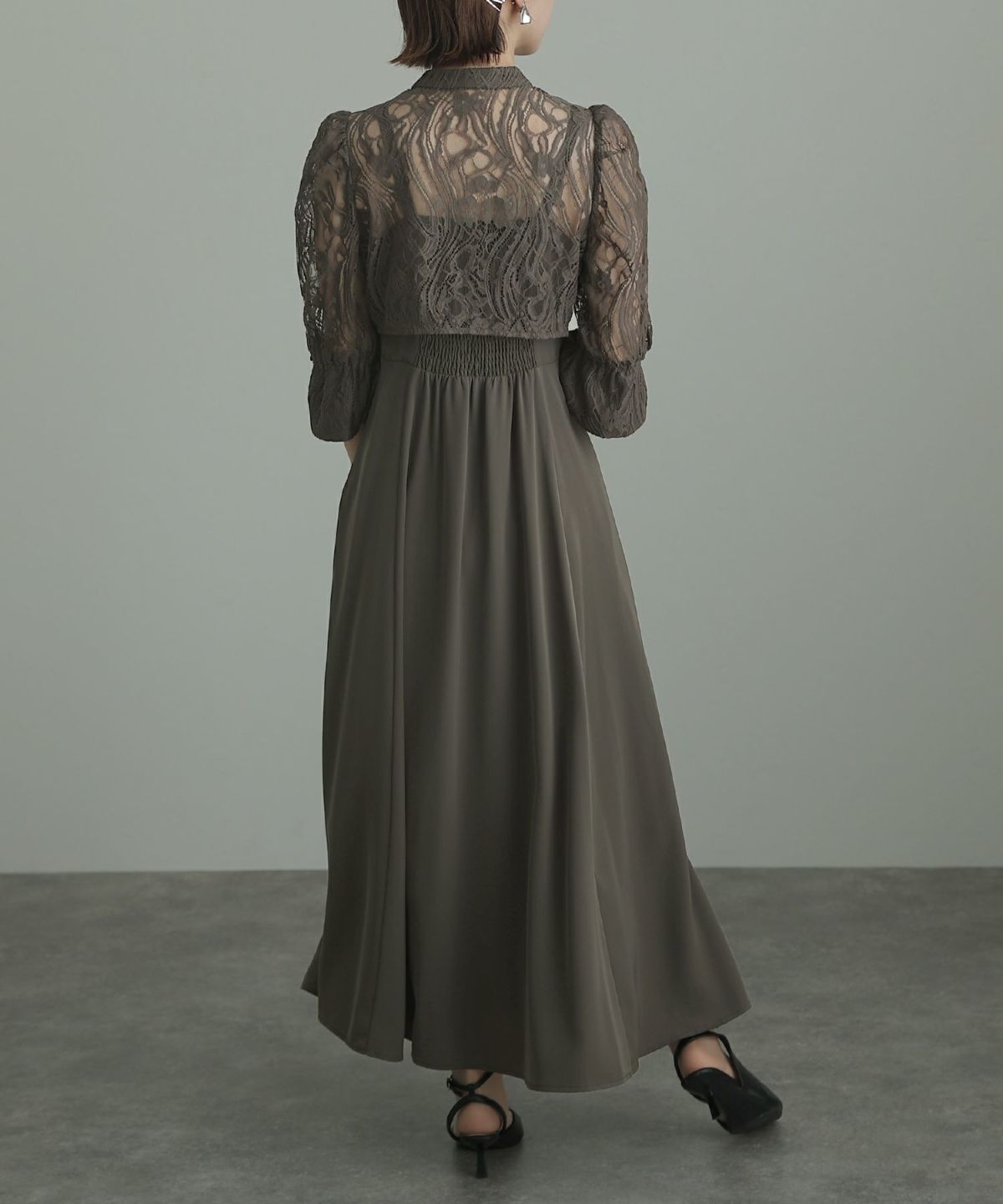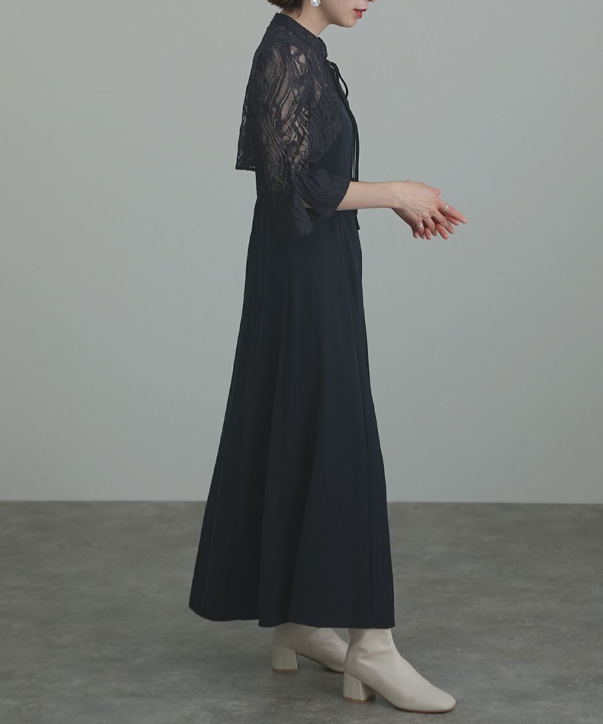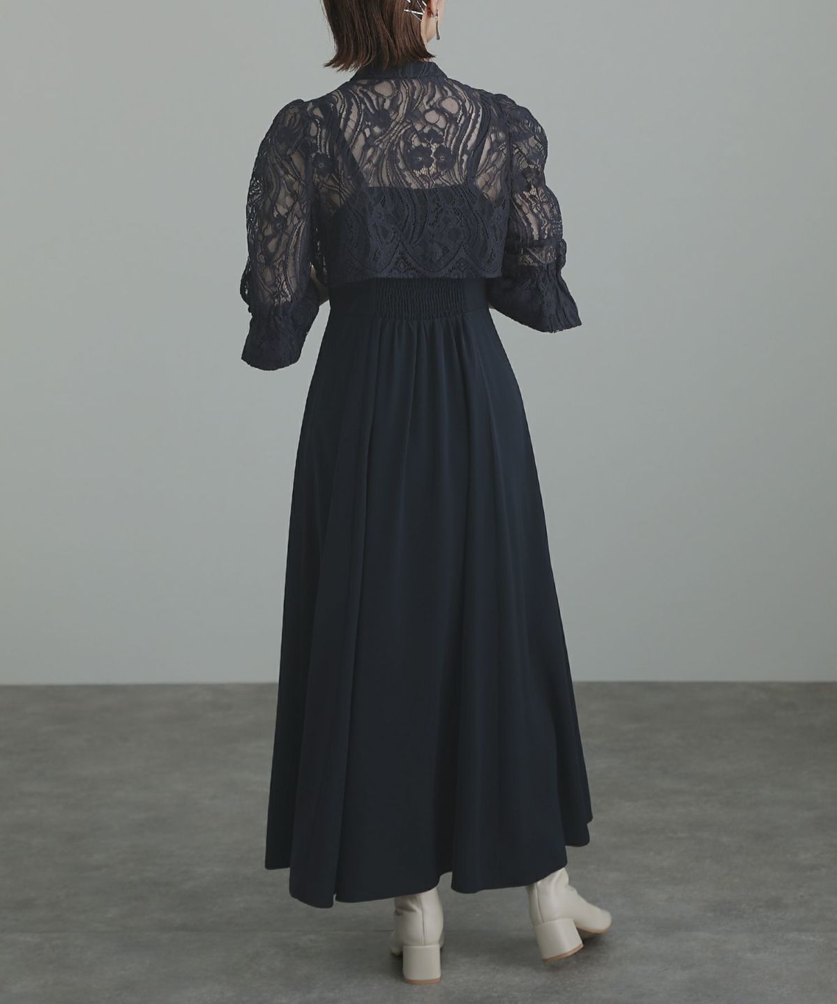 2種類のレースを贅沢に使用したエレガントなドレス 異素材レース切り替えバックレースアップワンピース