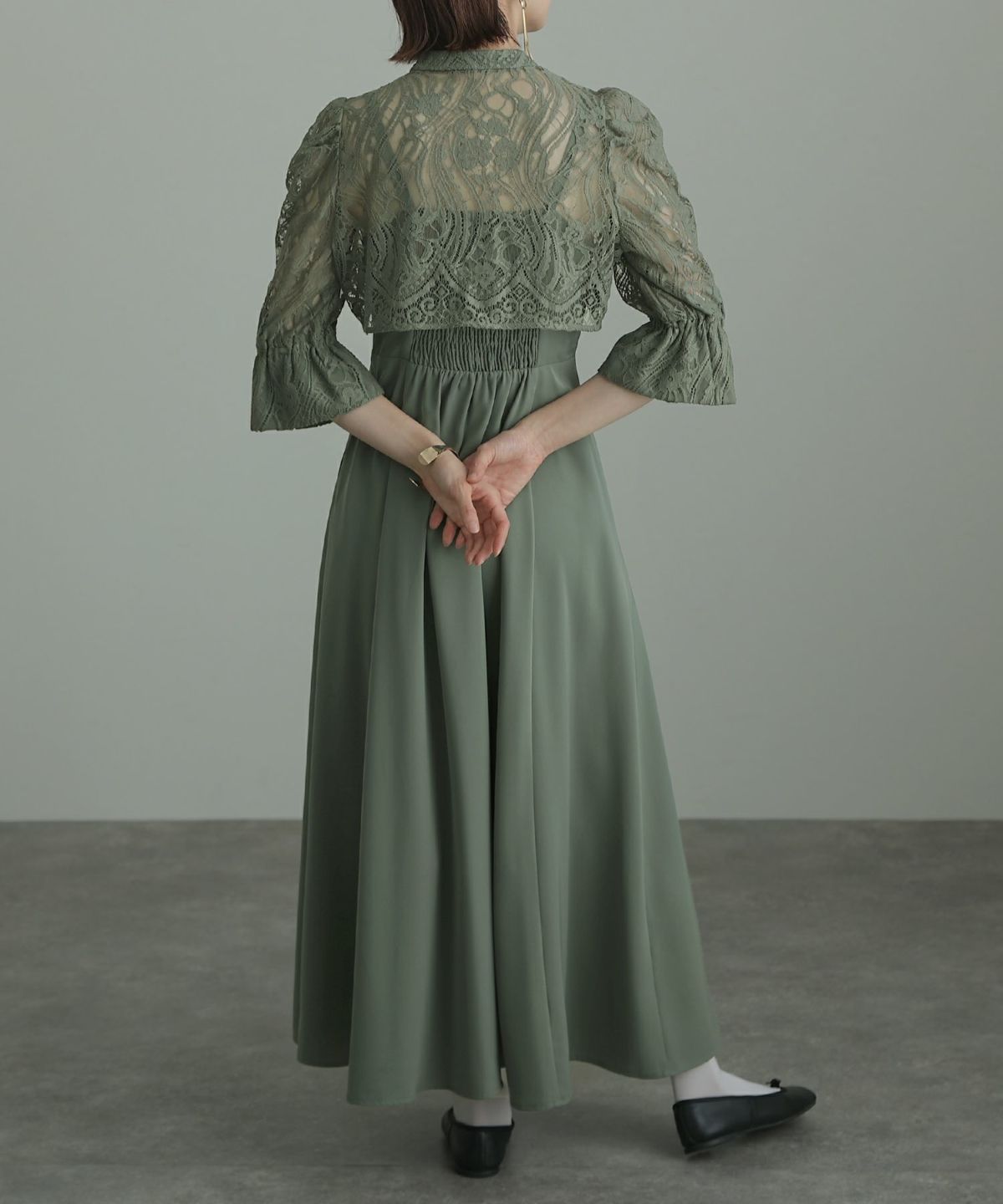 後ろ姿にもこだわった1着 バックリボン総レース2WAYワンピース