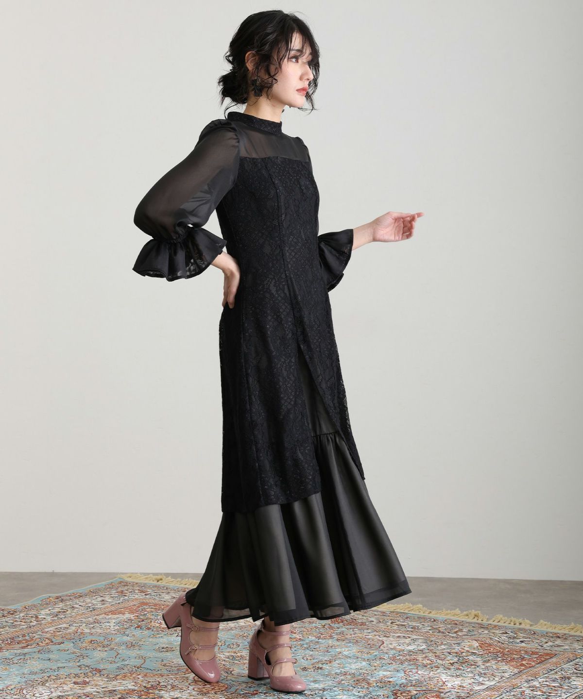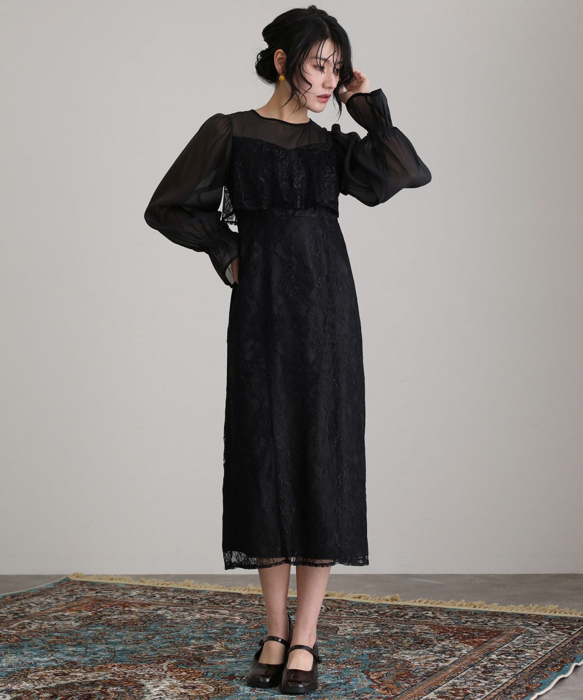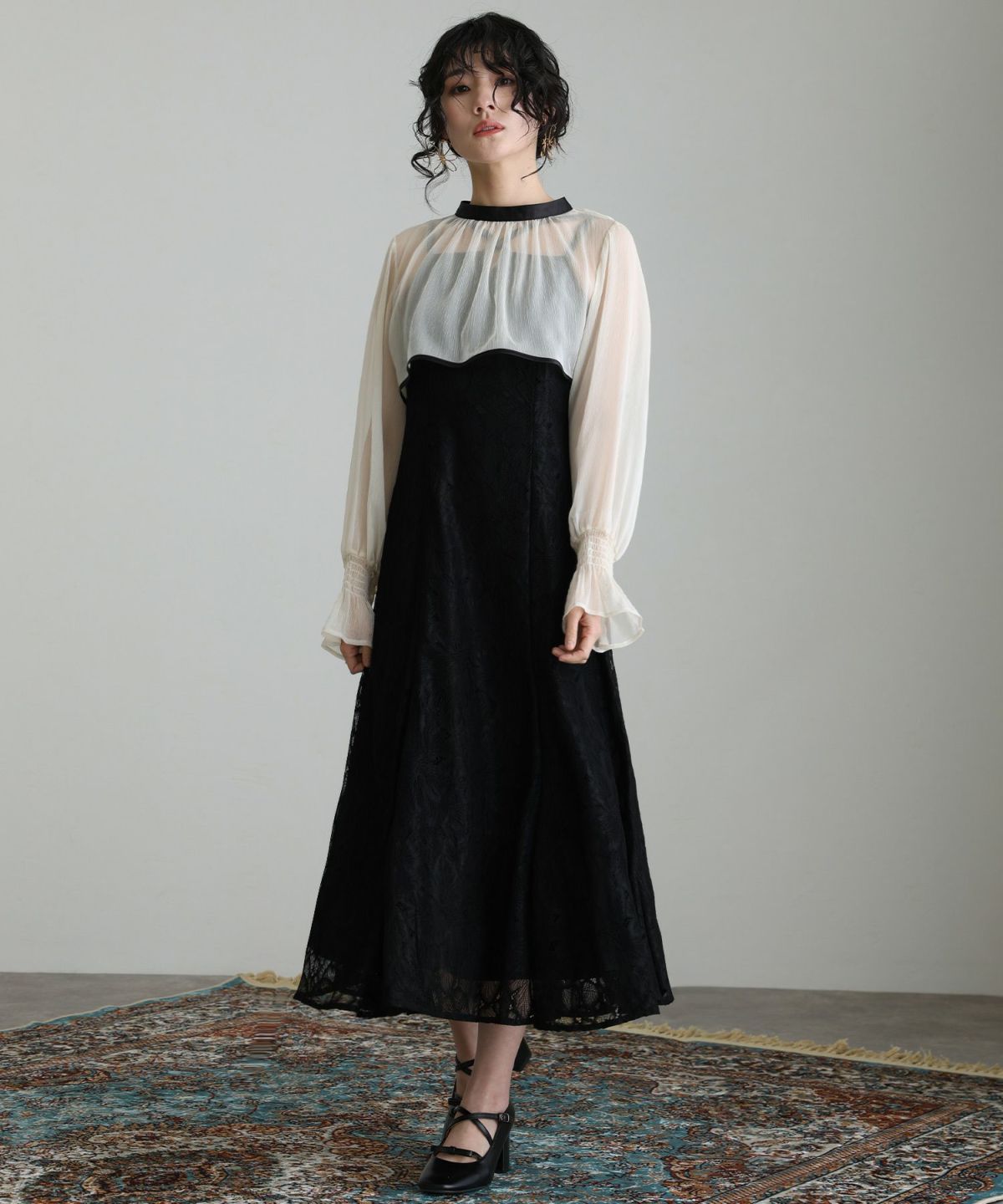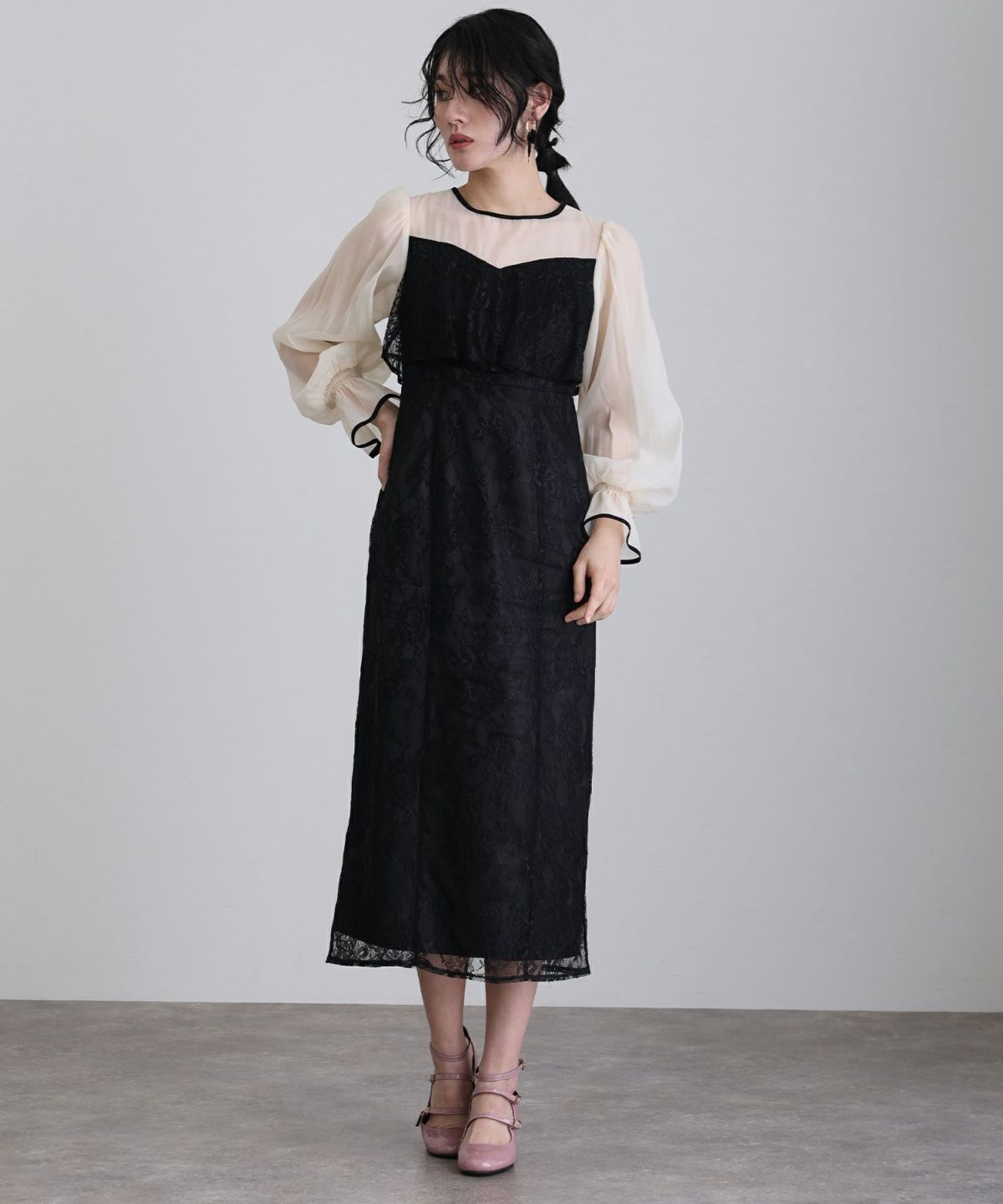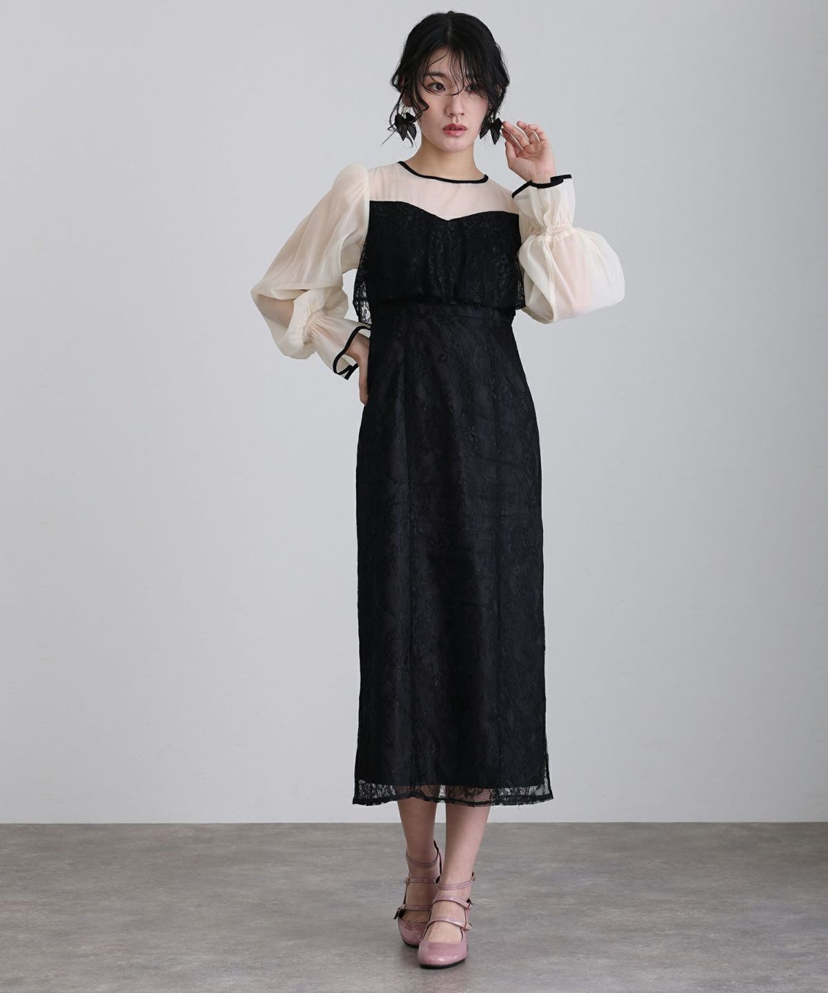 レースとオーガンジー素材の組み合わせが華やか レースレイヤードワンピ―ス